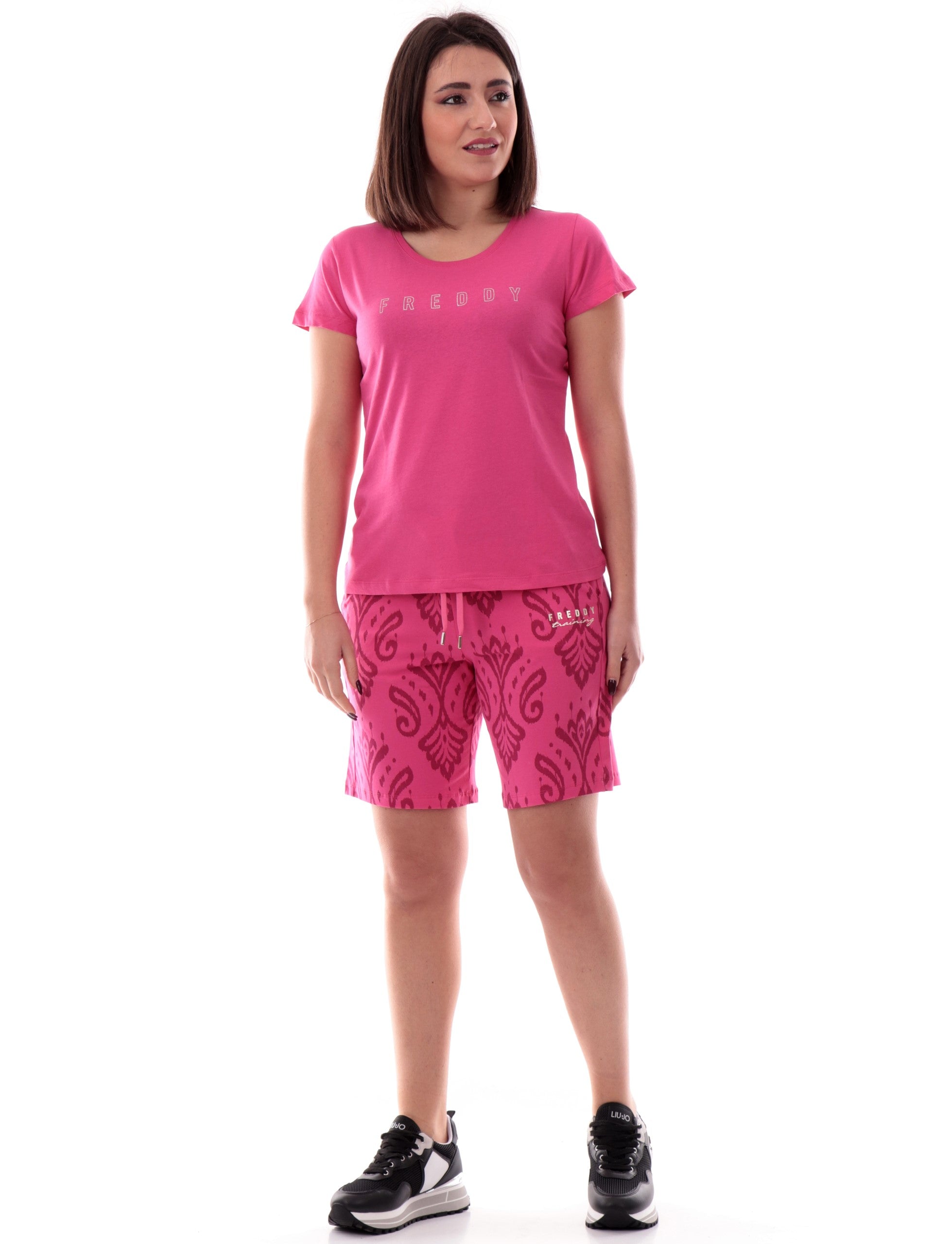 T-shirt Freddy fucsia da donna logo Freddy con glitter S25WCYLT1