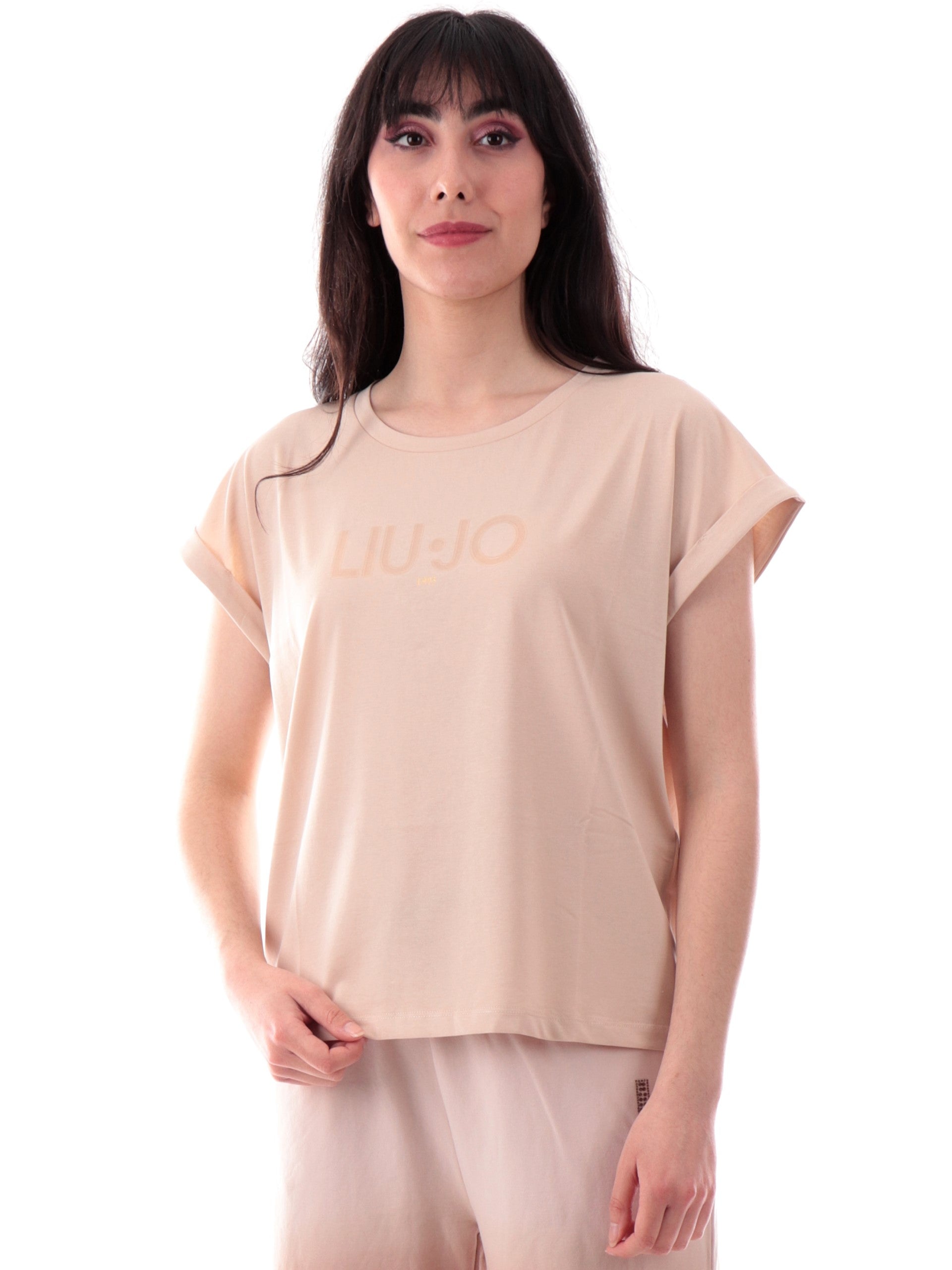 Maglia Liu Jo Beige maniche corte logo gommato TA5181JS003-M918
