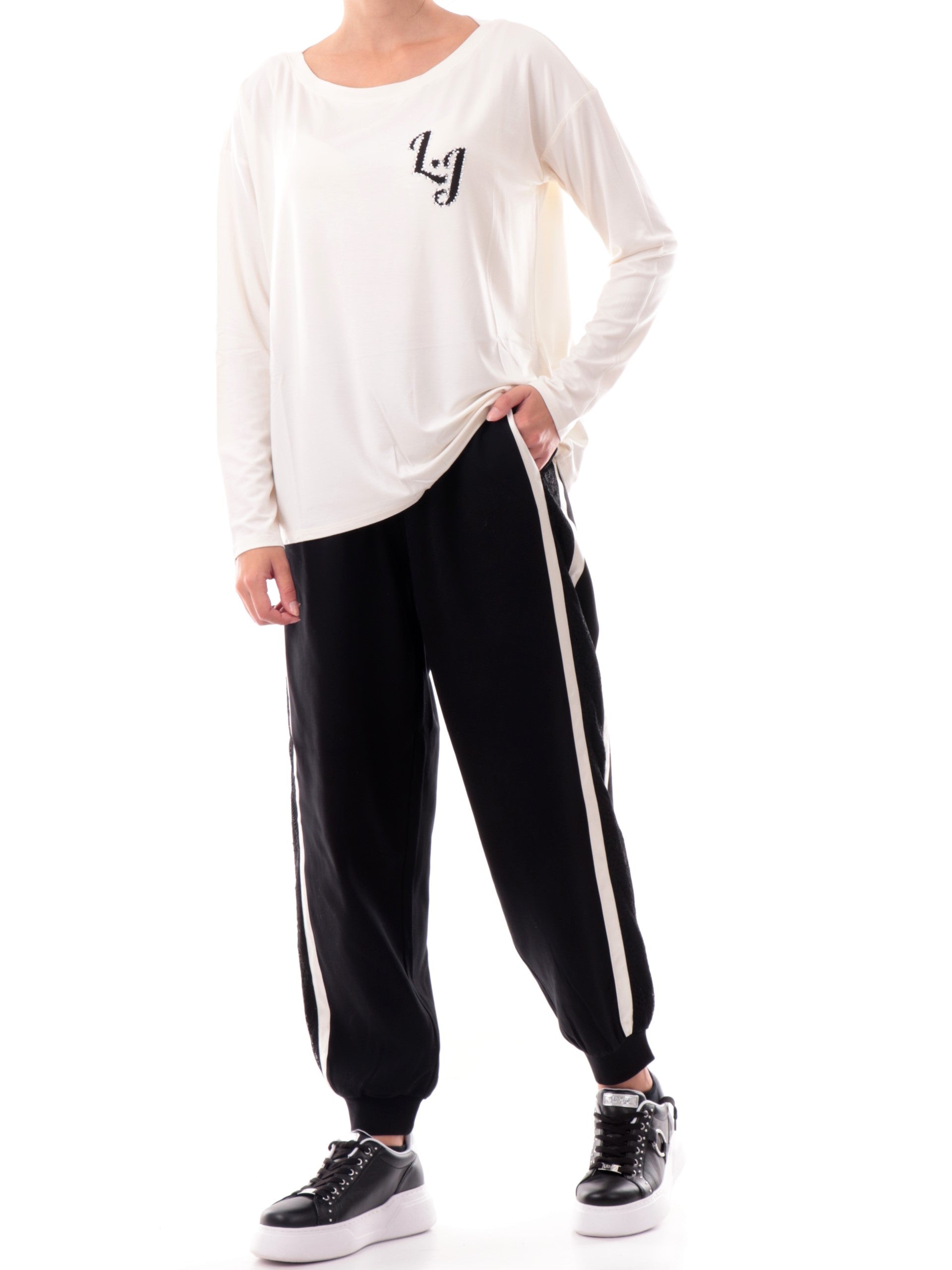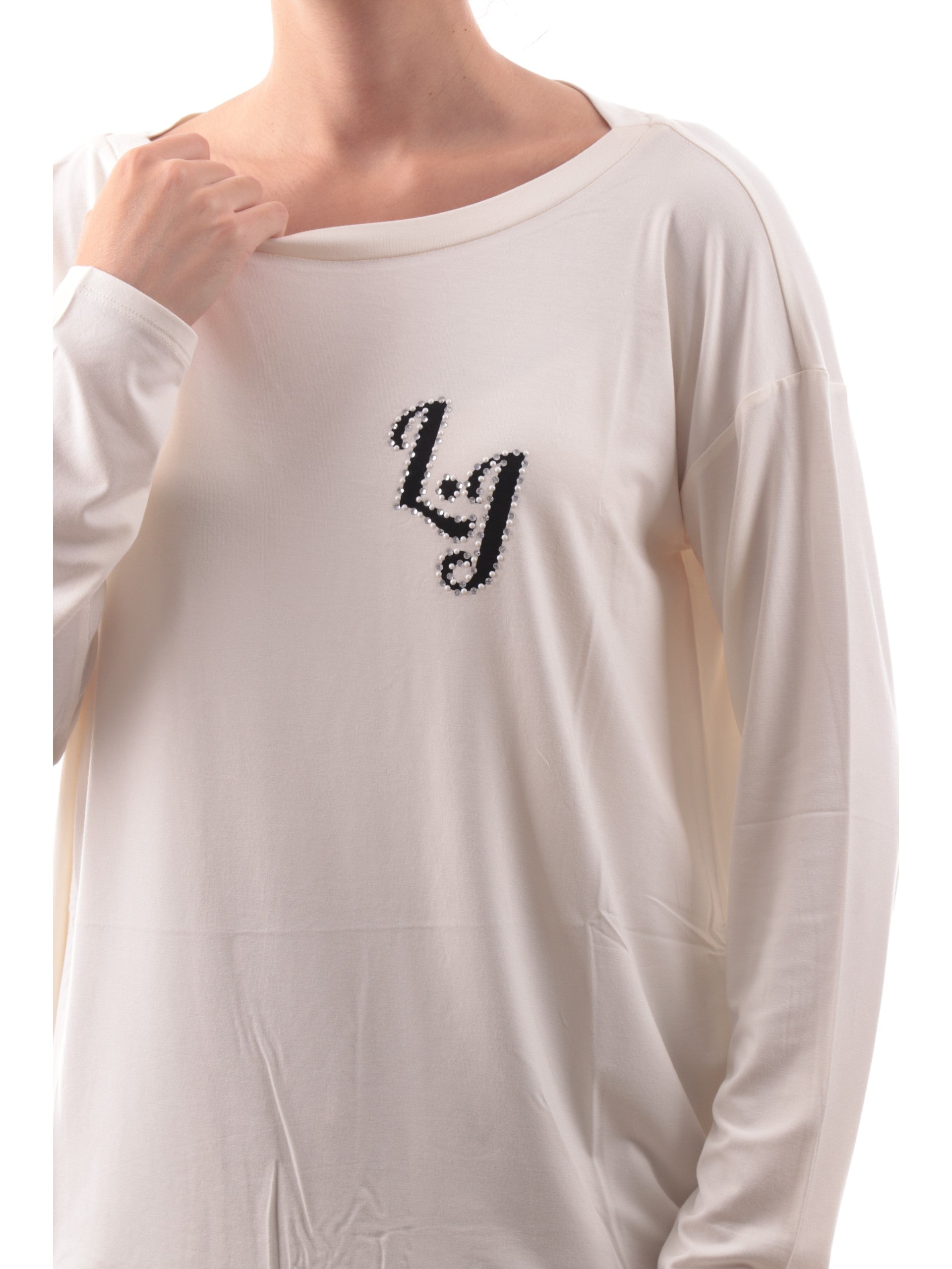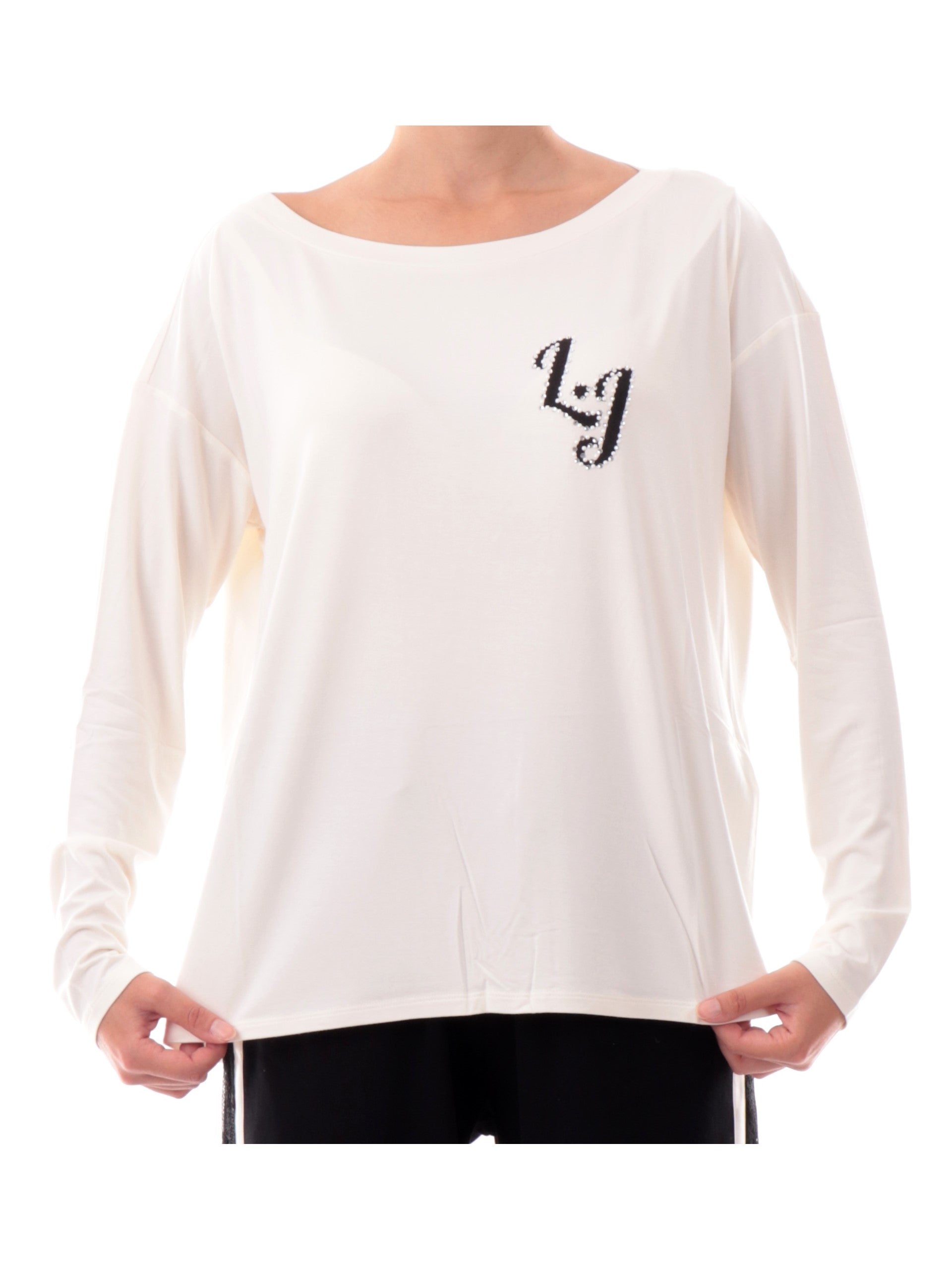 T-shirt Liu Jo bianca da donna maniche lunghe logo strass TF5282JS360