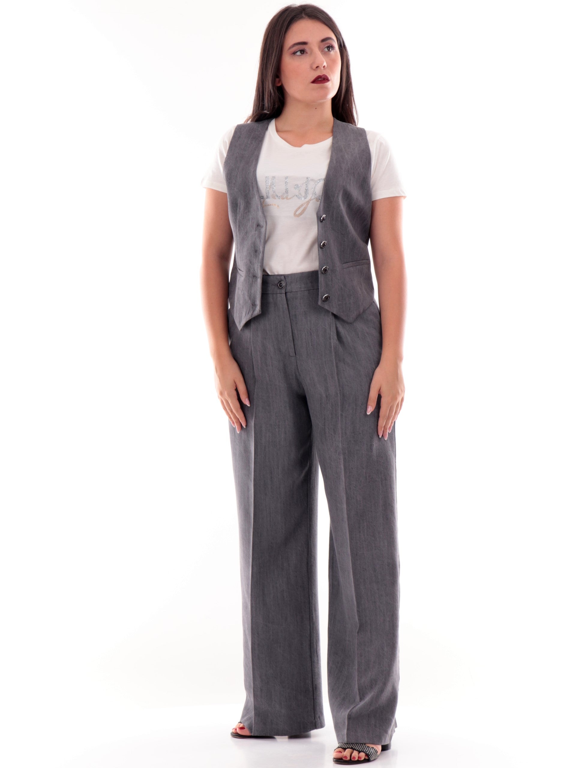 La nostra modella è alta 1,74 mt e indossa maglie taglia S e pantaloni taglia 42.