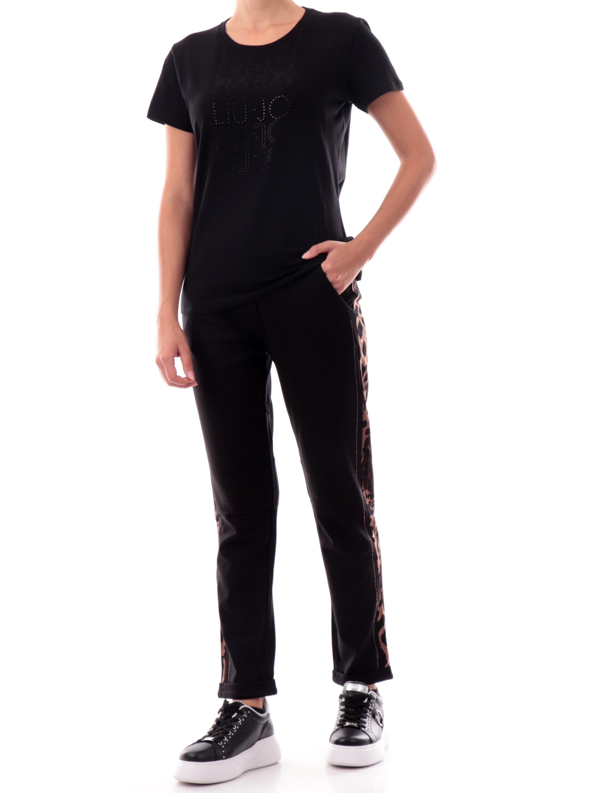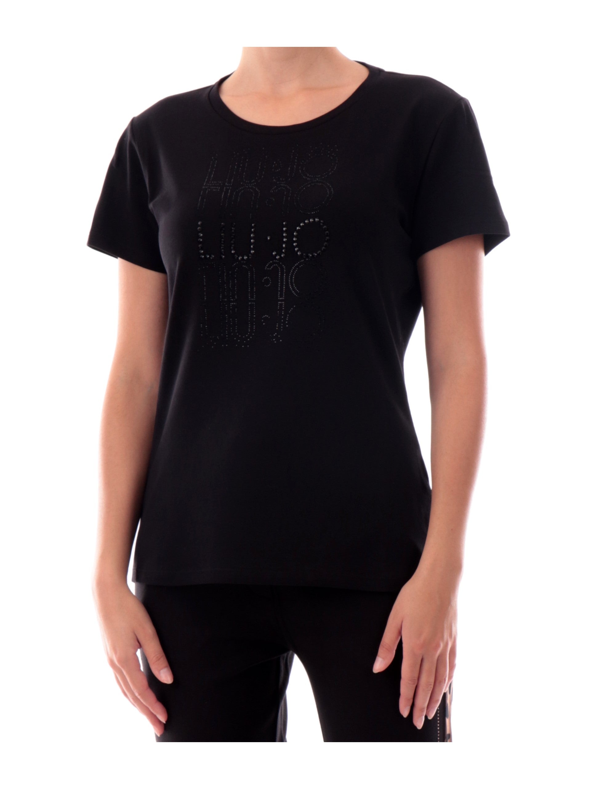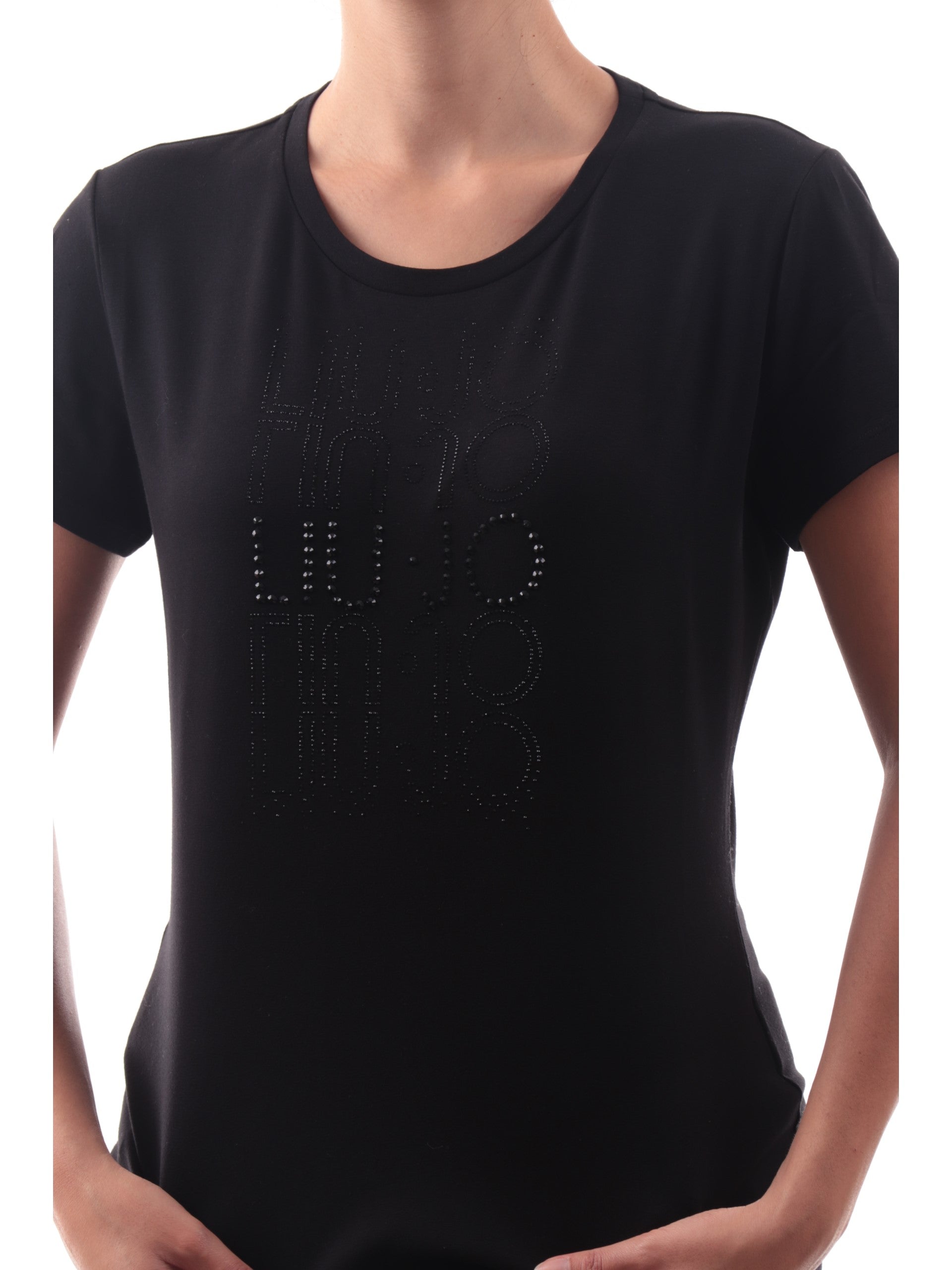 T-shirt Liu Jo nera da donna logo con strass TF5166JS003