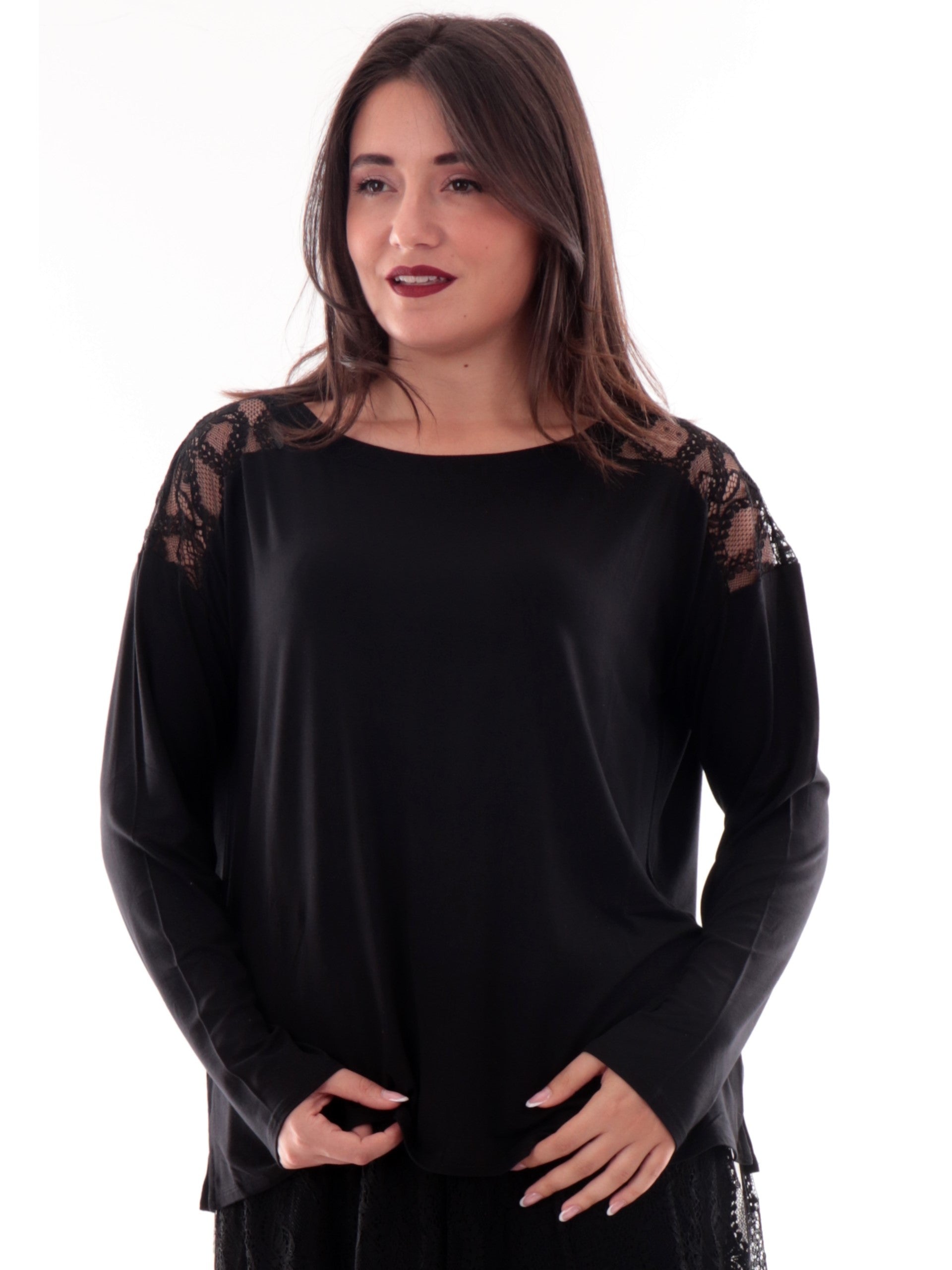Maglia Liu Jo Maniche lunghe nera da donna con inserti in pizzo sulle spalle. La vestibilità di questa maglia maniche lunghe Liu Jo nera è morbida e scivolata adattandosi ad ogni fisicità.