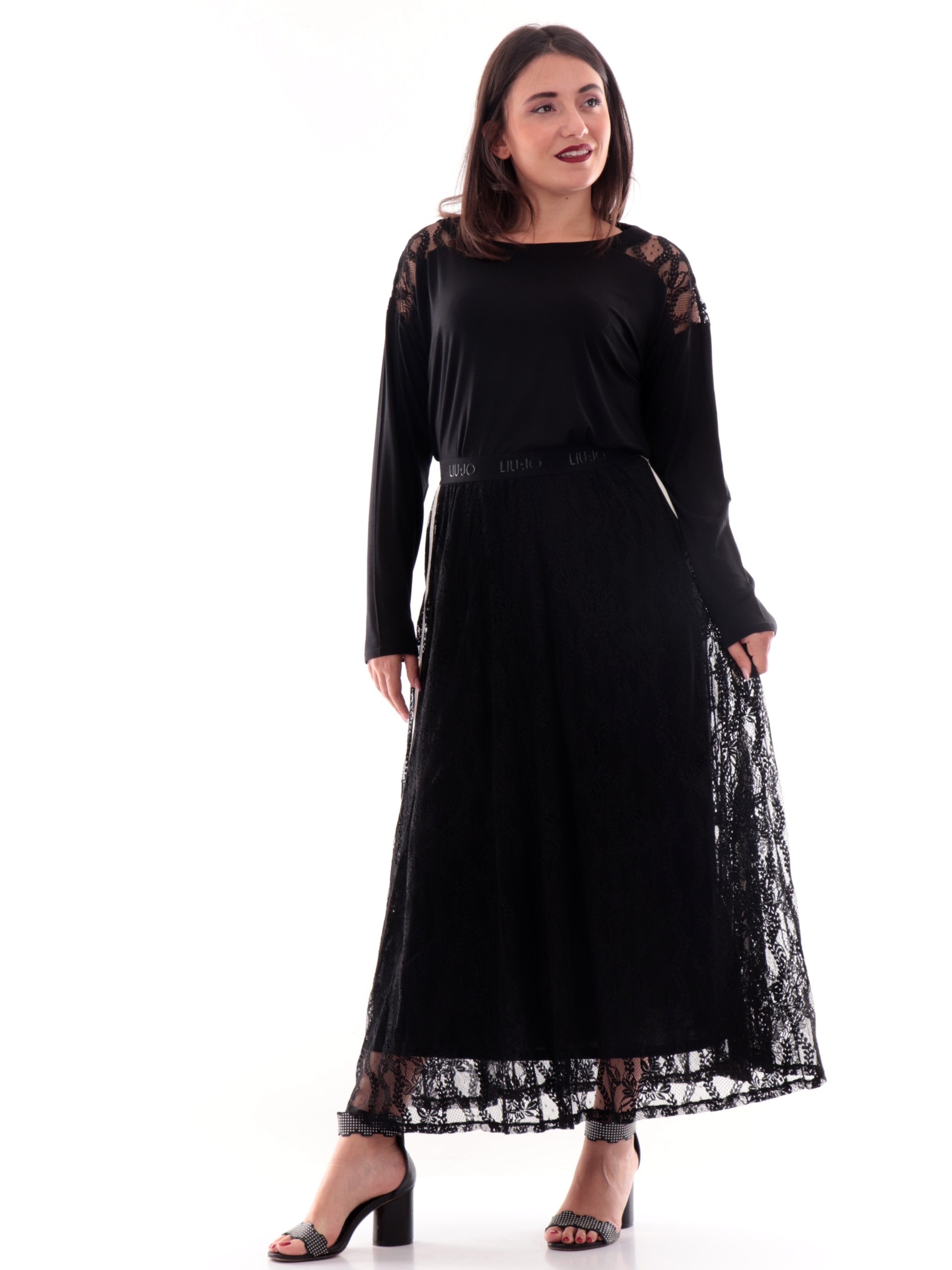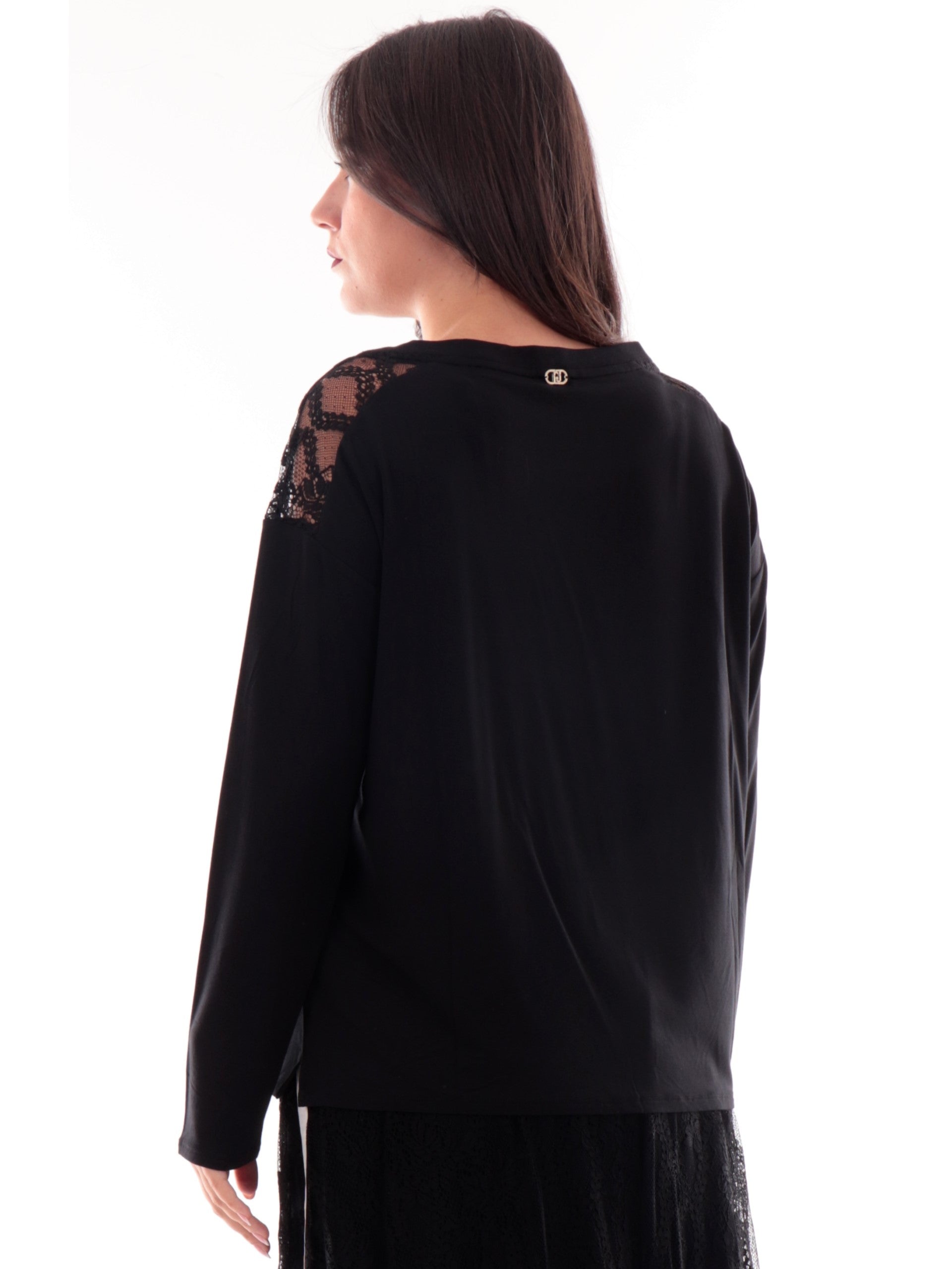 Maglia Liu Jo nera da donna Maniche lunghe con inserti in pizzo TF5186JS360A3370