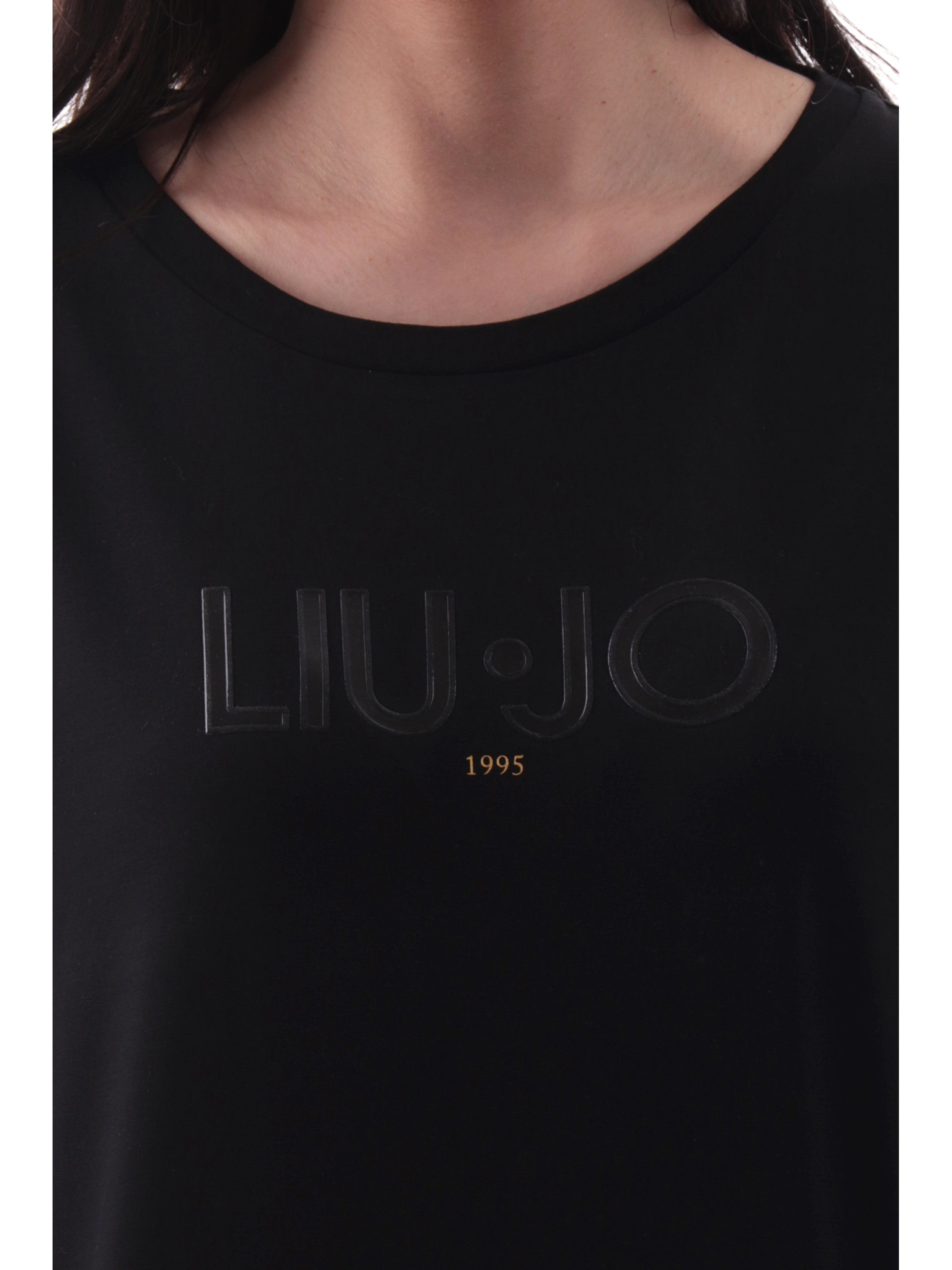 T-shirt Liu Jo nera maniche aletta da donna con patch gommato TA5181JS003 W9415