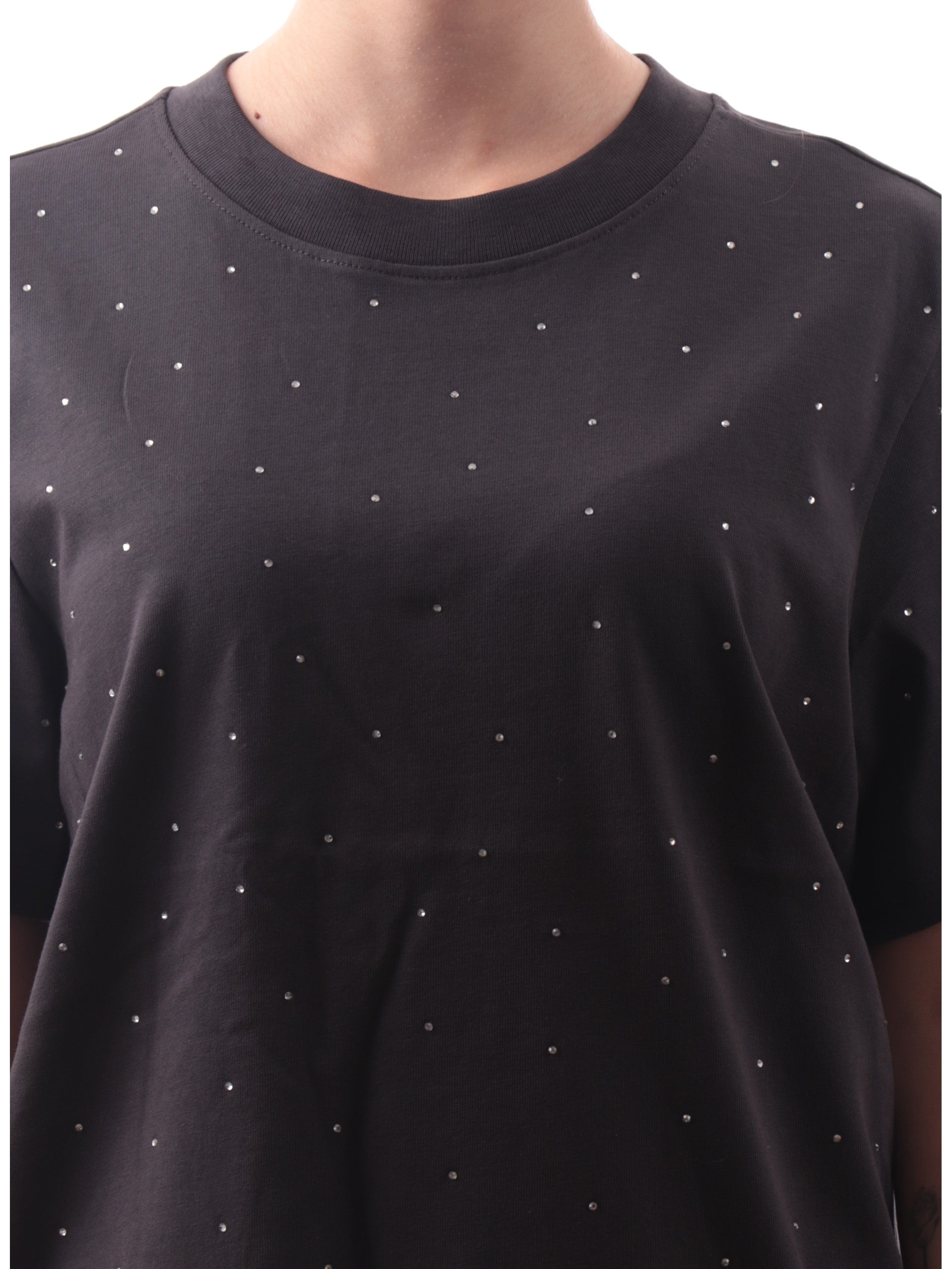 T-shirt Only nera da donna girocollo con strass 15340939
