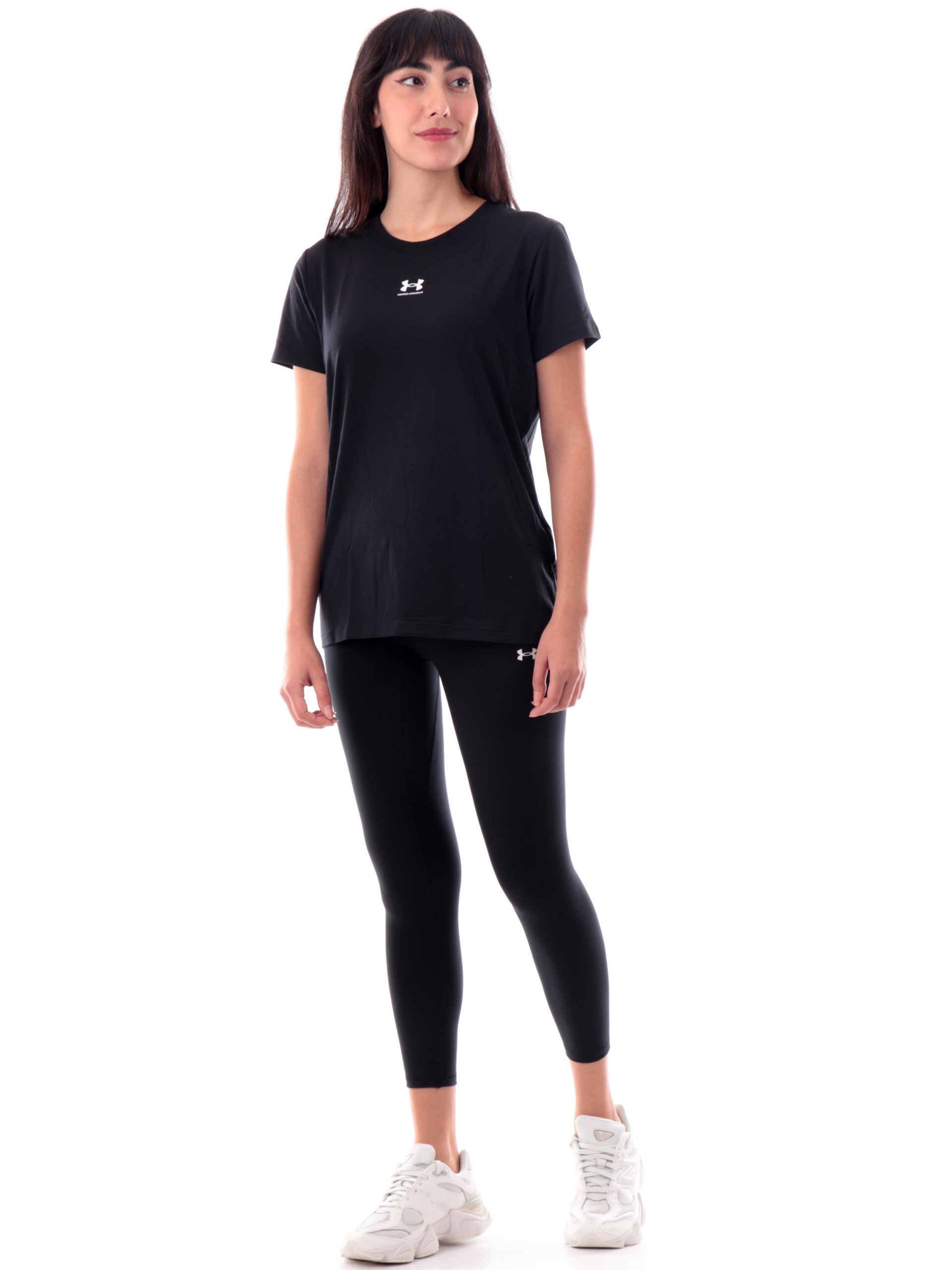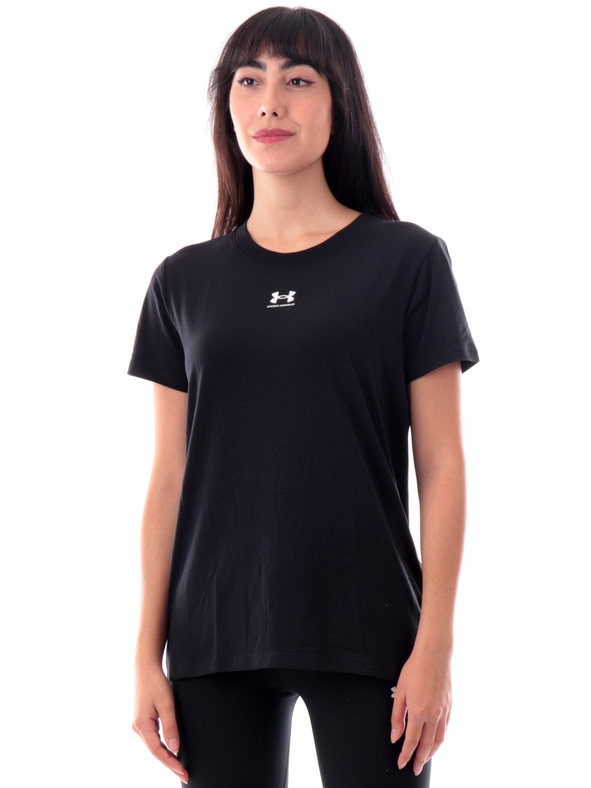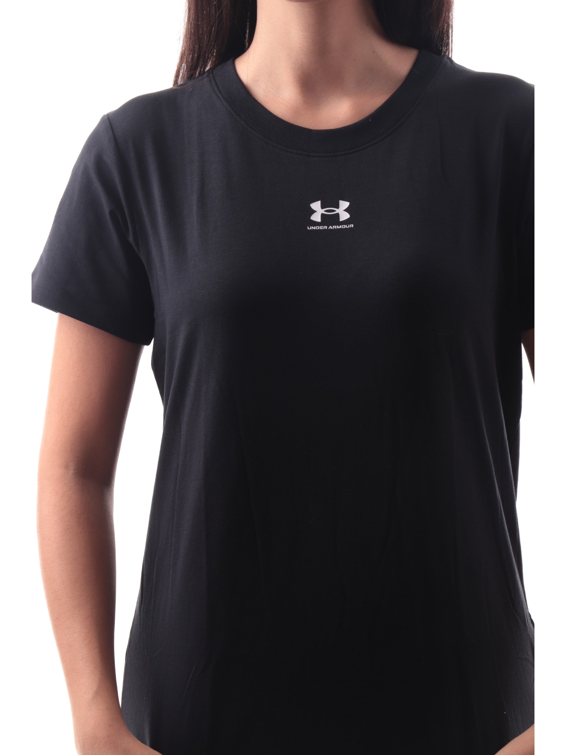 T-shirt Under Armour nera girocollo da donna con logo UA Rival Core 13836480