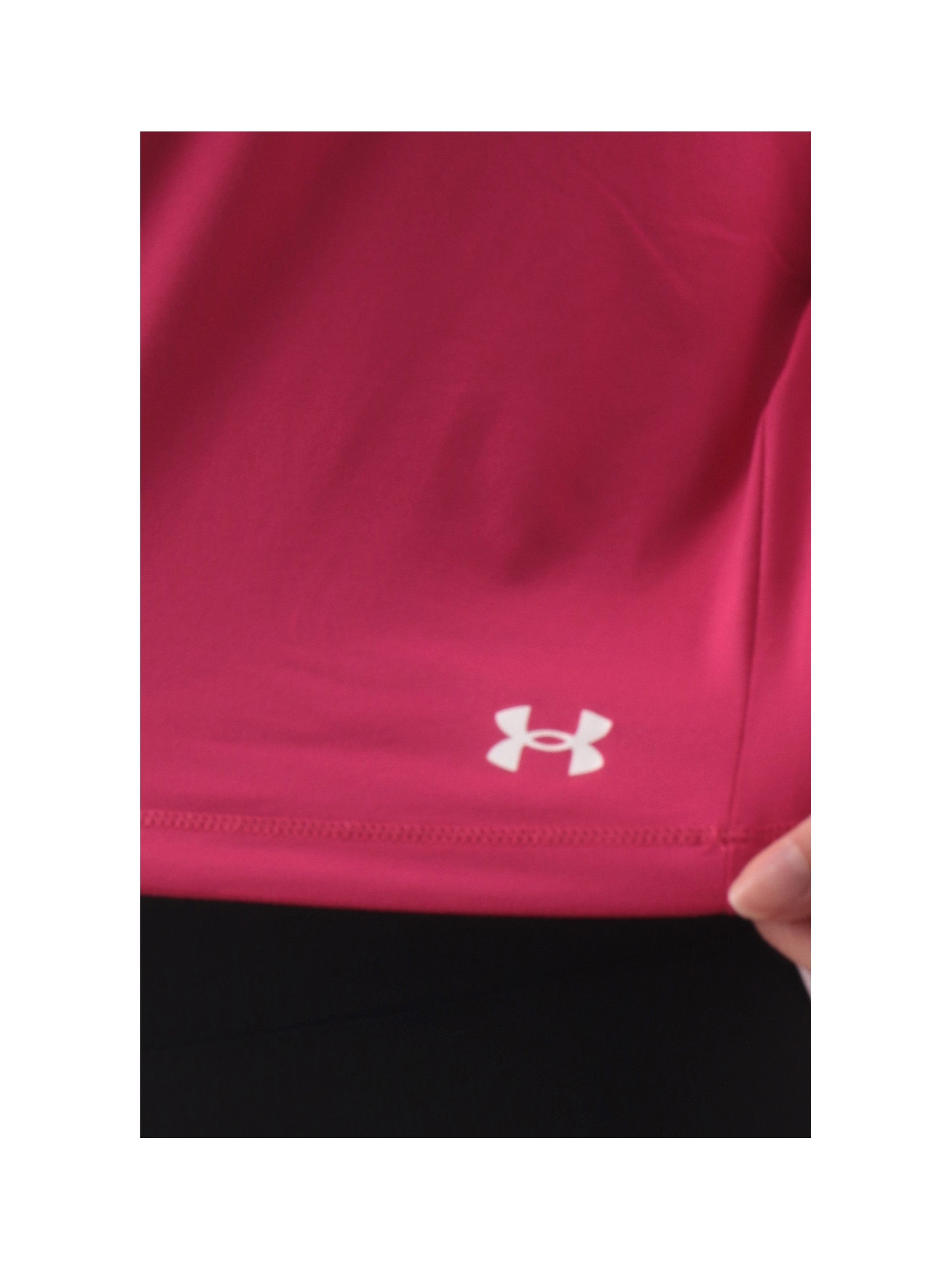 Maglia Under Armour tecnica fucsia da donna Motion SS vestibilità morbida 13791780. Questa t-shirt Under Armour girocollo ha le maniche corte, la vestibilità morbida e il logo Under Armour sul fondo.