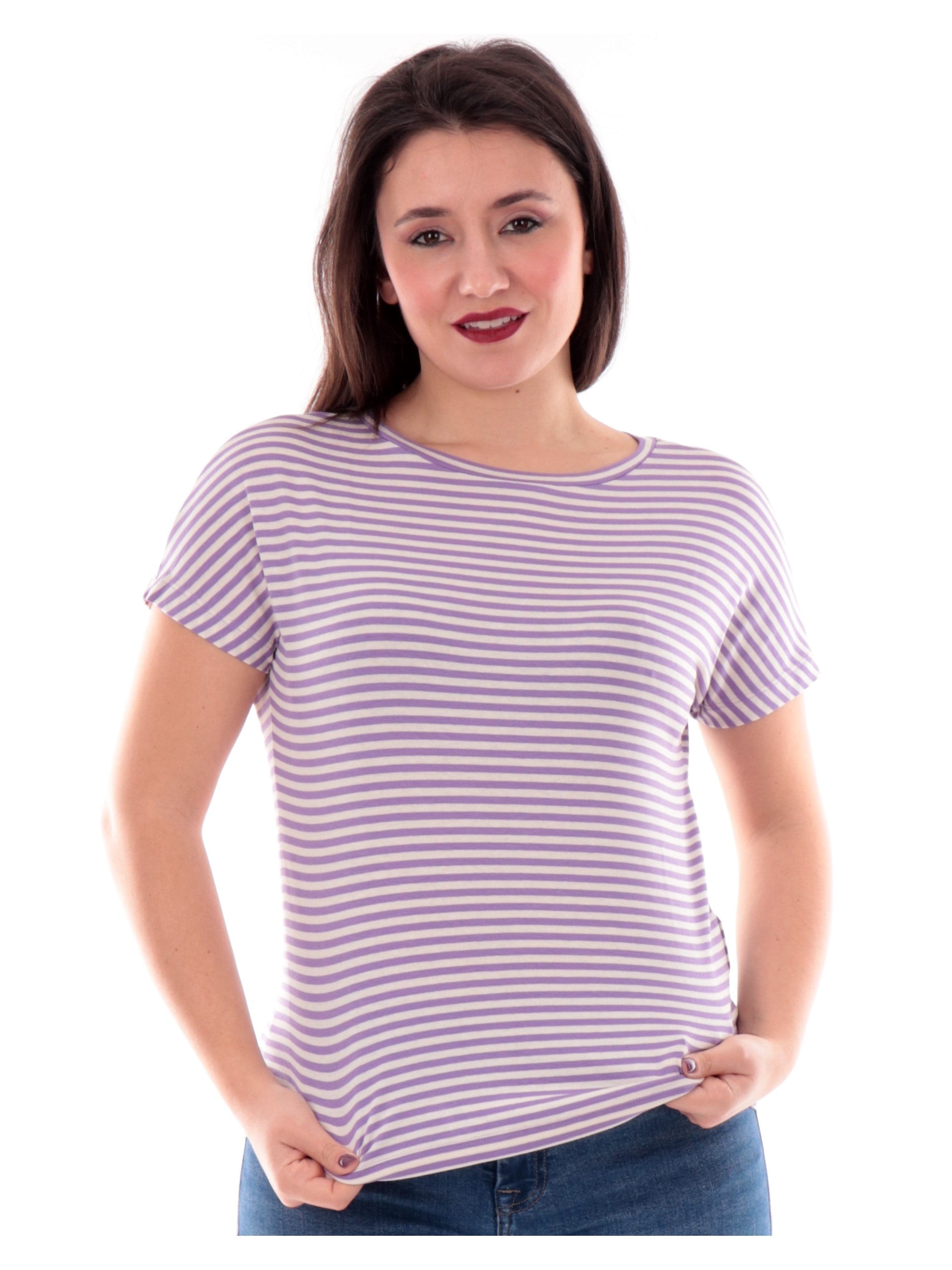 T-shirt Emme Marella viola a righe da donna FERVIDA002