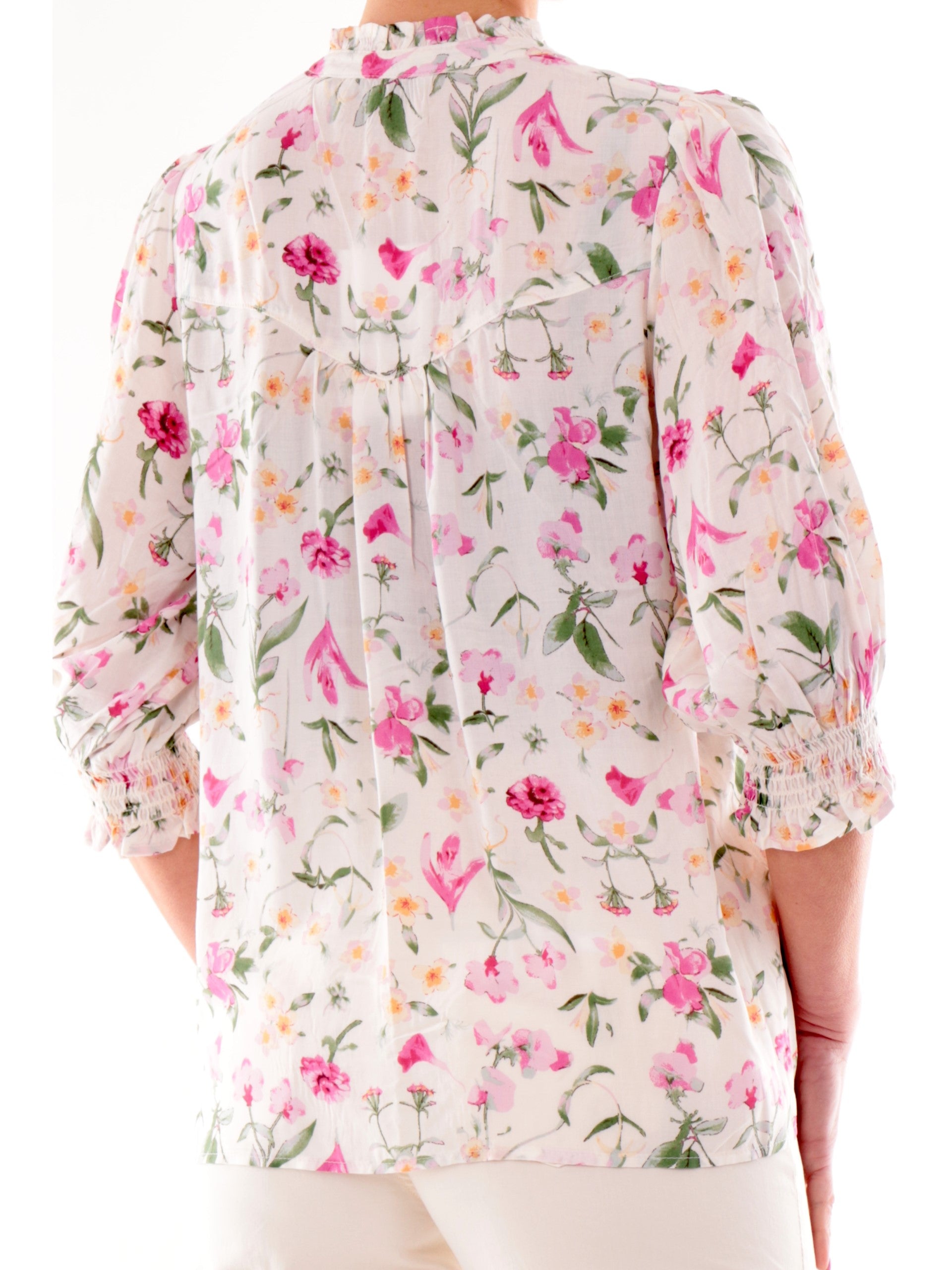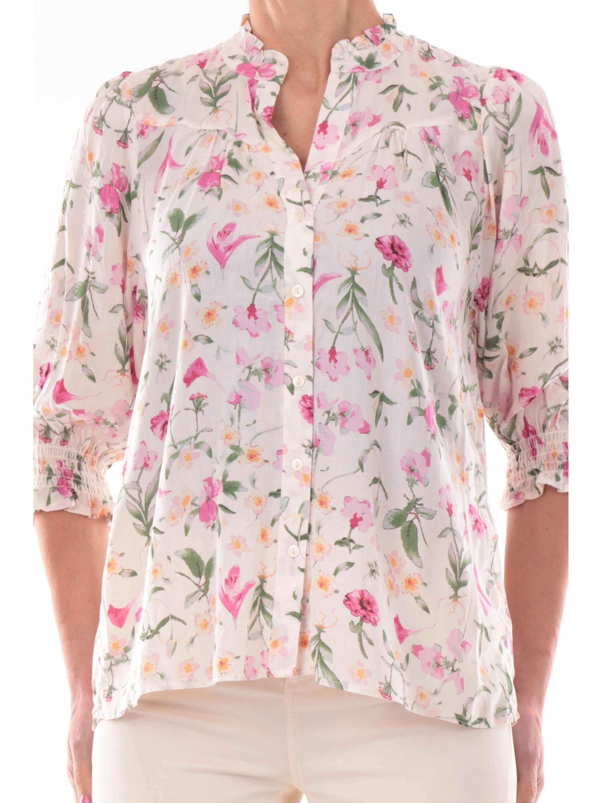 Camicia da donna a fanstasia floreale Only. Questa camicia da donna a fantasia, realizzata 100% in morbida viscosa, perfetta per la stagione primavera-estate, è caratterizzata dal colletto alla coreana, maniche a tre quarti, chiusura con bottoni, maniche con polsini elasticizzati e la fantasia floreale