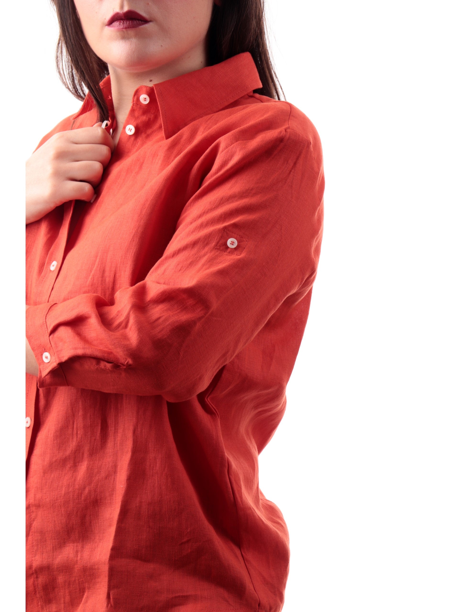 Camicia Emme Marella rossa in lino da donna maniche a tre quarti GIRELLO002