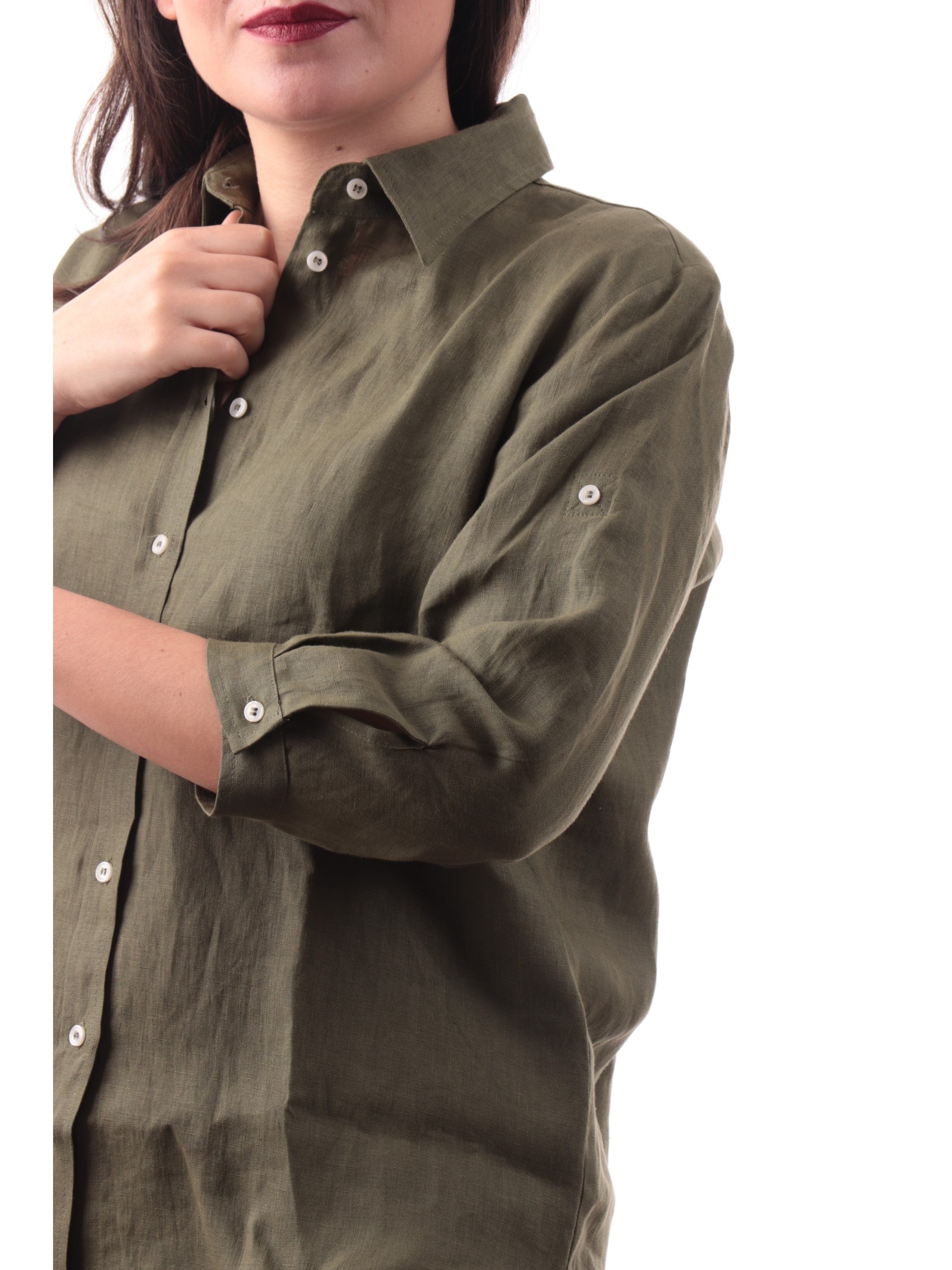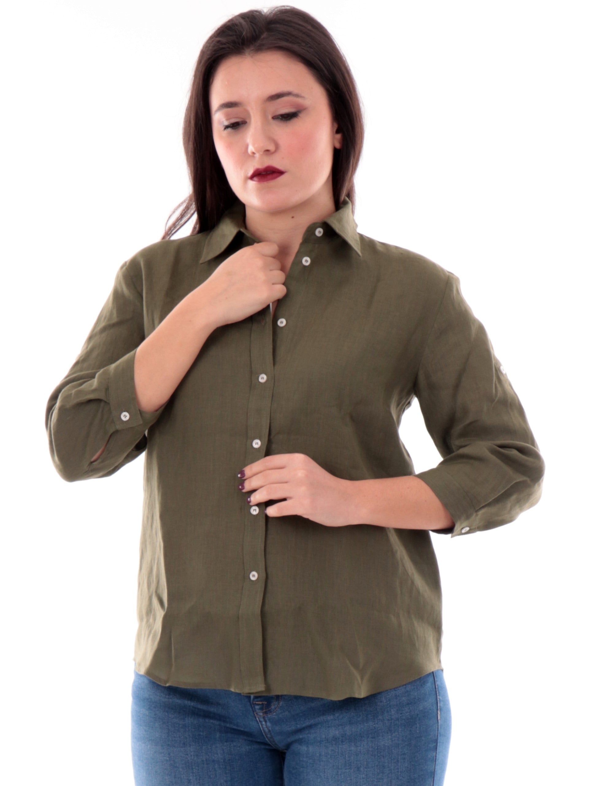 Camicia Emme Marella verde in lino da donna maniche a tre quarti GIRELLO008