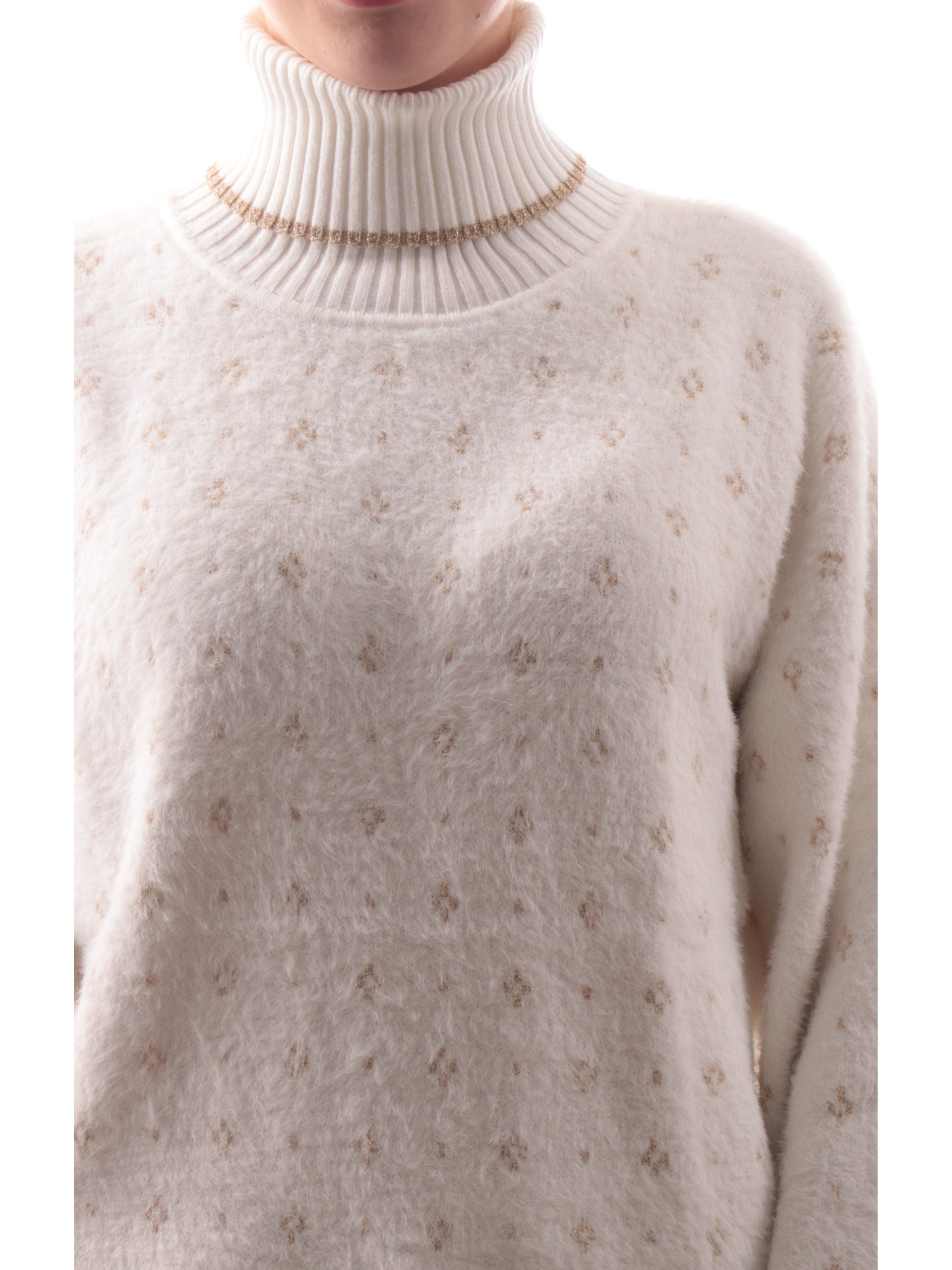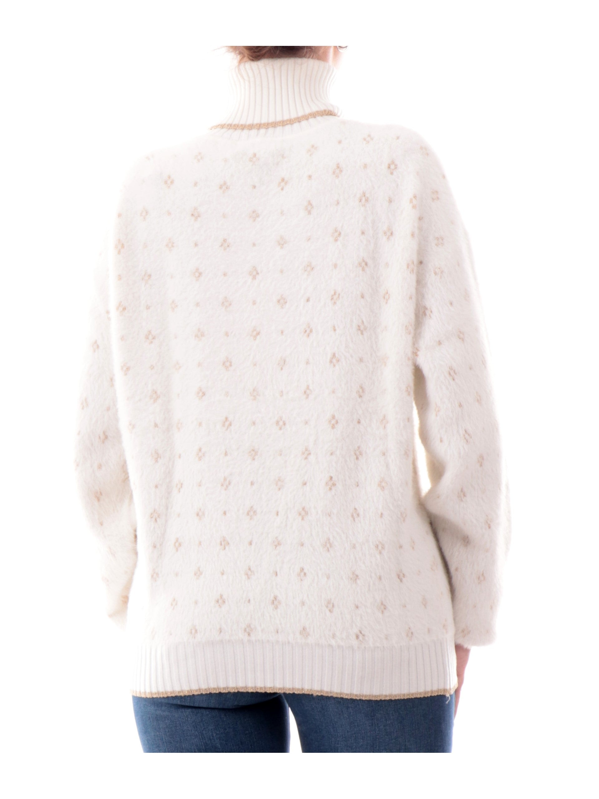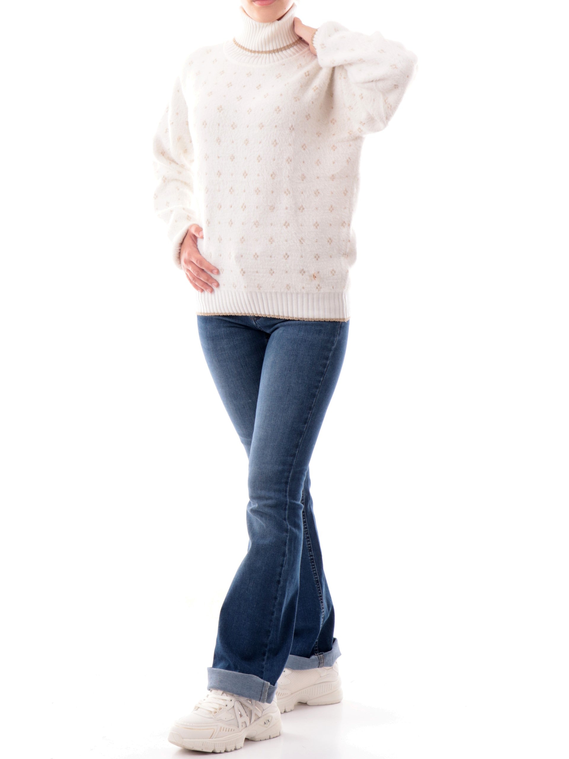 Maglione Yes Zee Bianca da donna a collo alto con inserti lurex M010IS000157