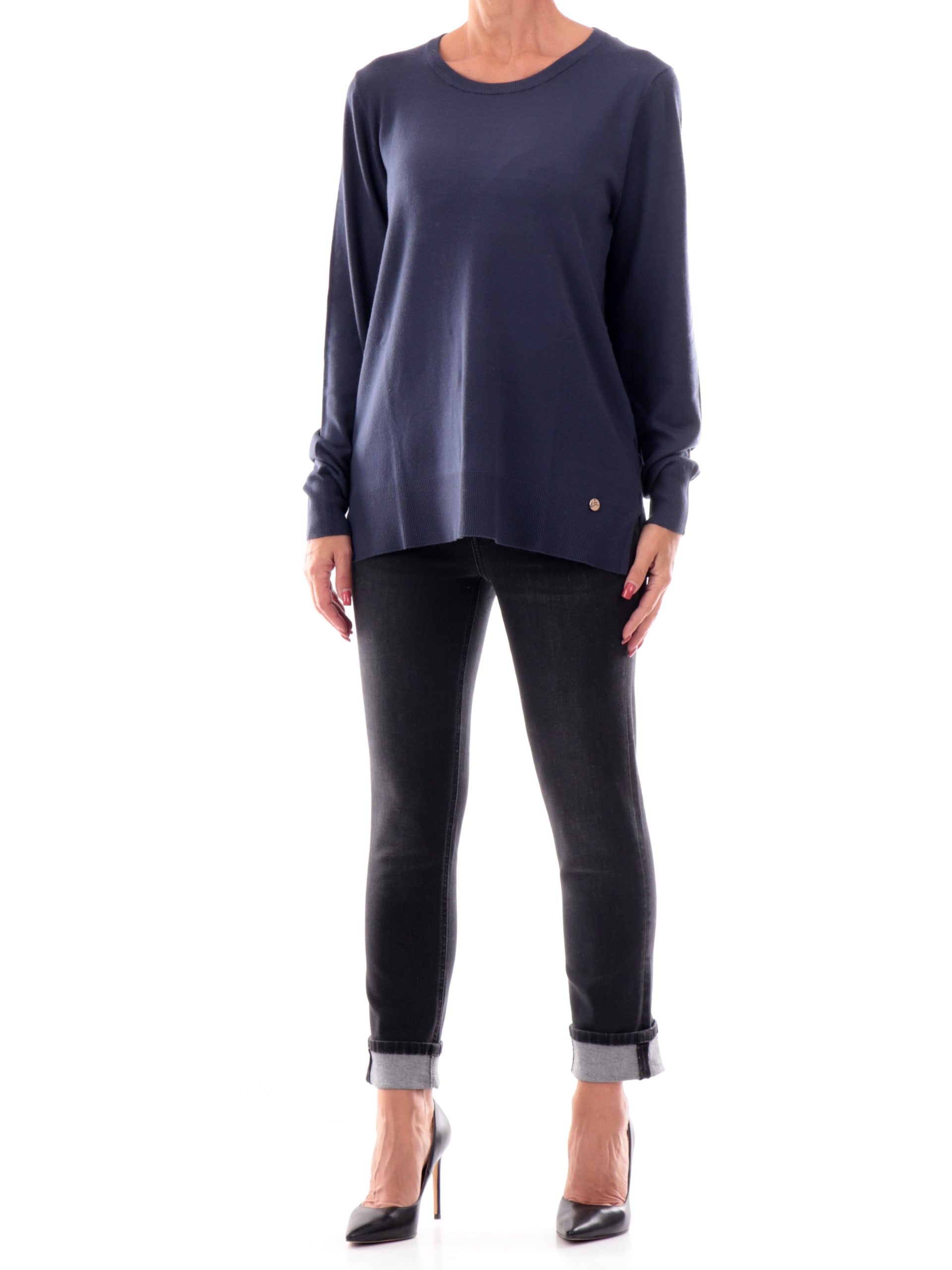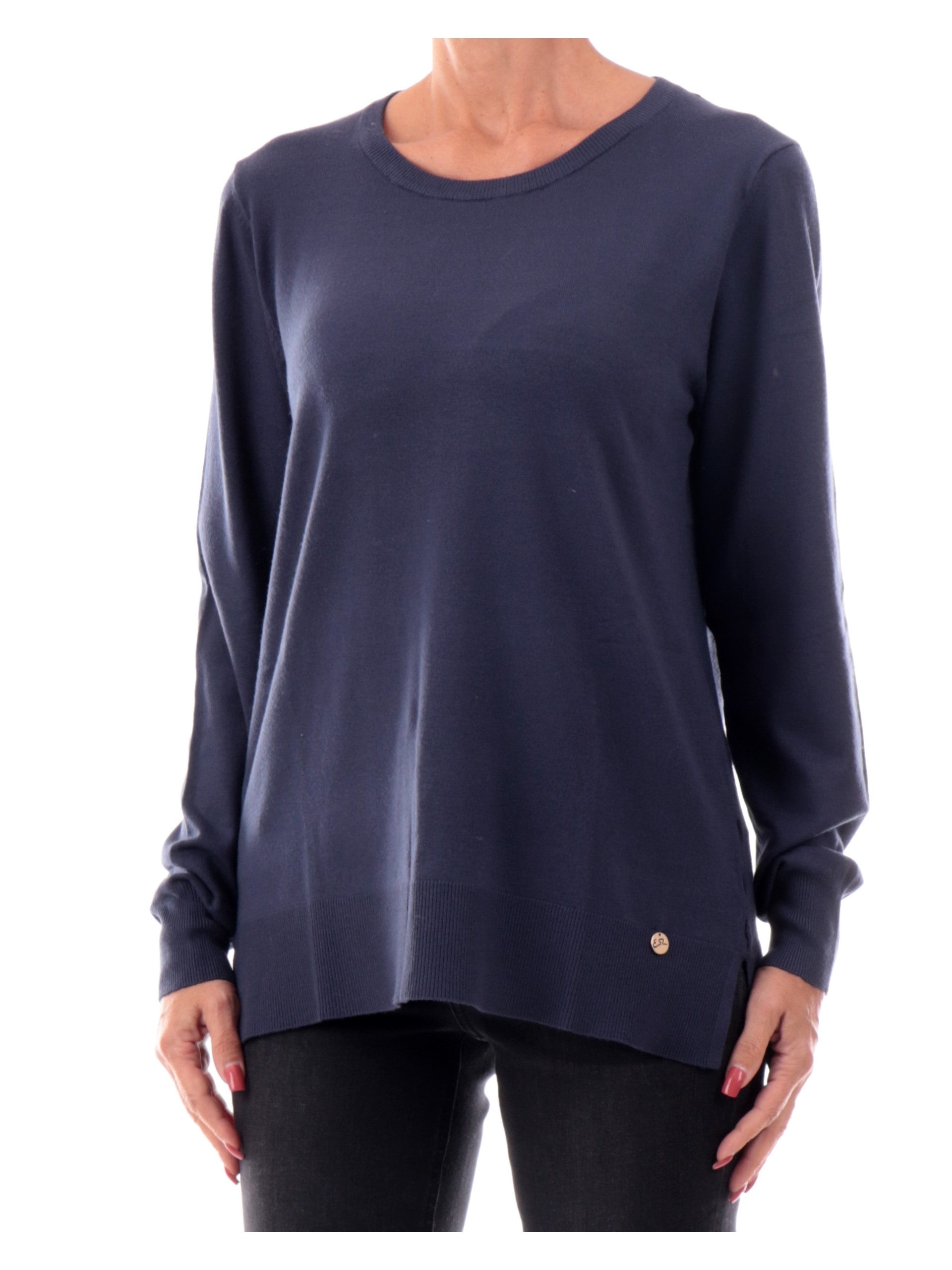 Maglione Yes zee blu da donna collo a barca . Questo maglione Yes Zee blu da donna è realizzato in morbida viscosa elasticizzata. Il fondo morbido lo rende perfetto anche con dei leggins.
