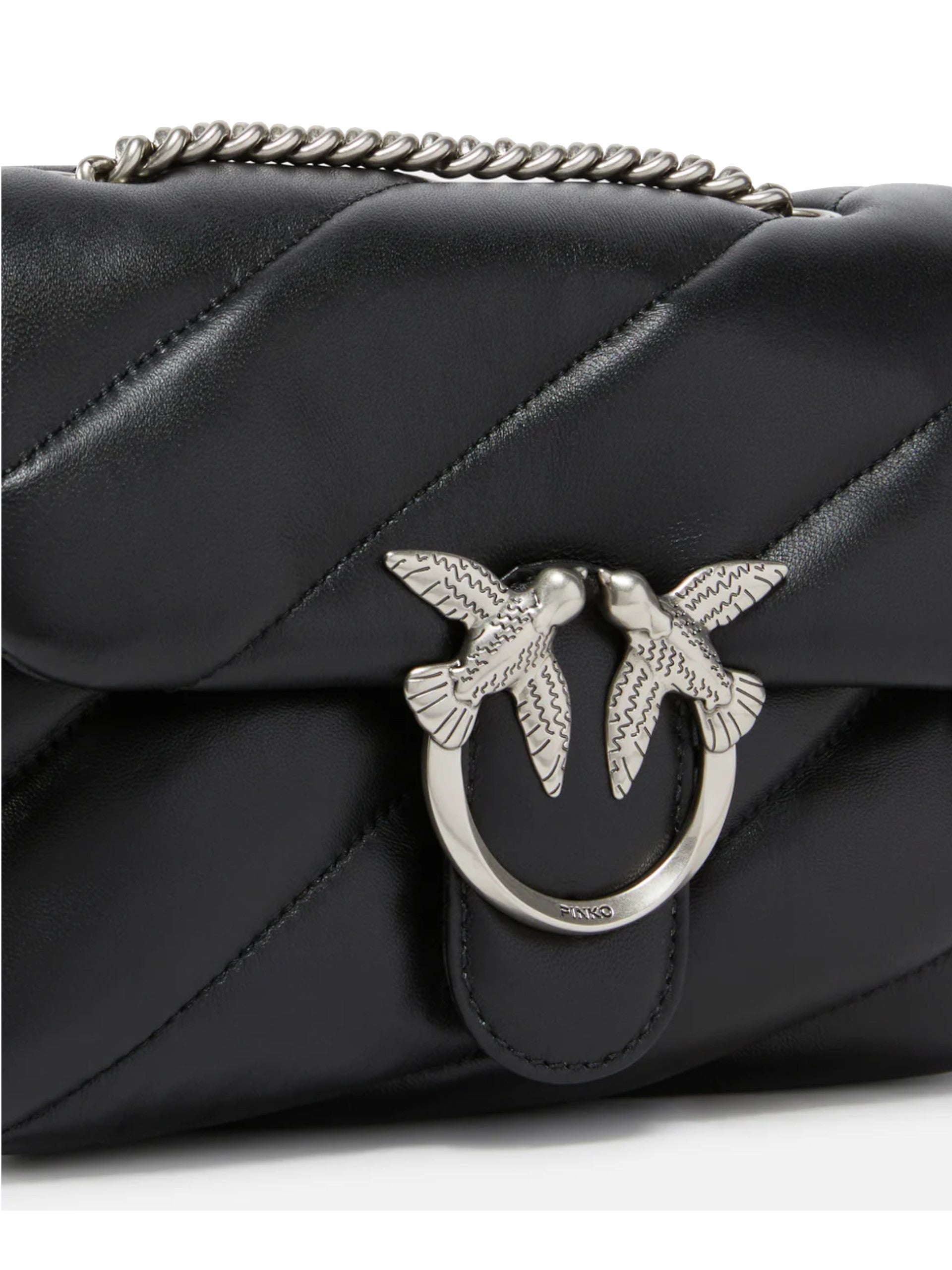 Borsa Pinko nera da donna in vera pelle a tracolla con catenella argentata Love Puff Mini 100039A0F2Z99O