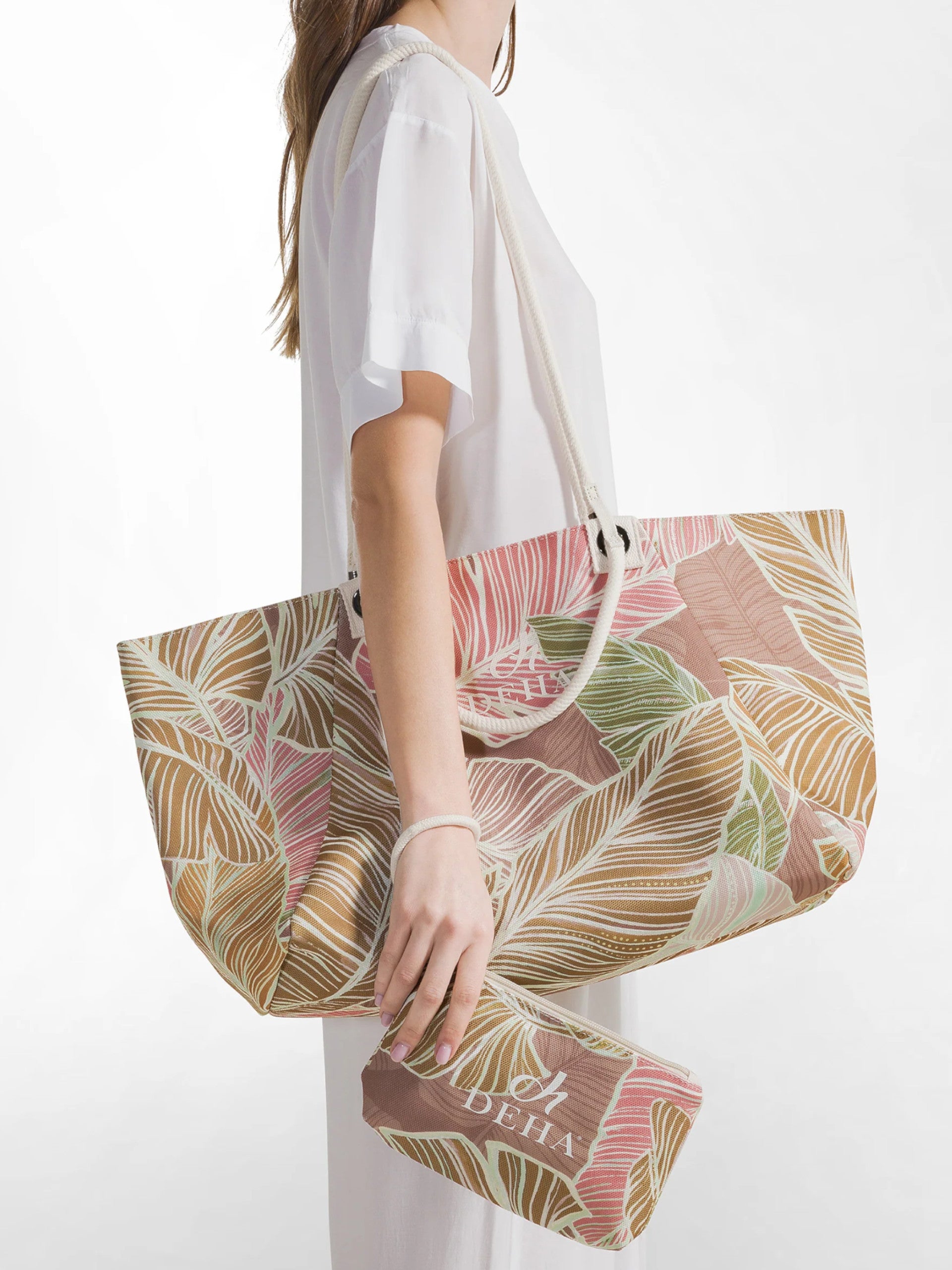 Borsa Deha marrone stampa floreale da donna Tote con pochette interna D22933. Questa borsa donna Deha ha il doppio manico regolabile, la chiusura con bottone automatico, il logo Deha sul davanti e lastampa floreale all over. All'interno di questa borsa marrone Deha troviamo una pochette full zip rimovibile e un unico grande scomparto con tre tasche interne.