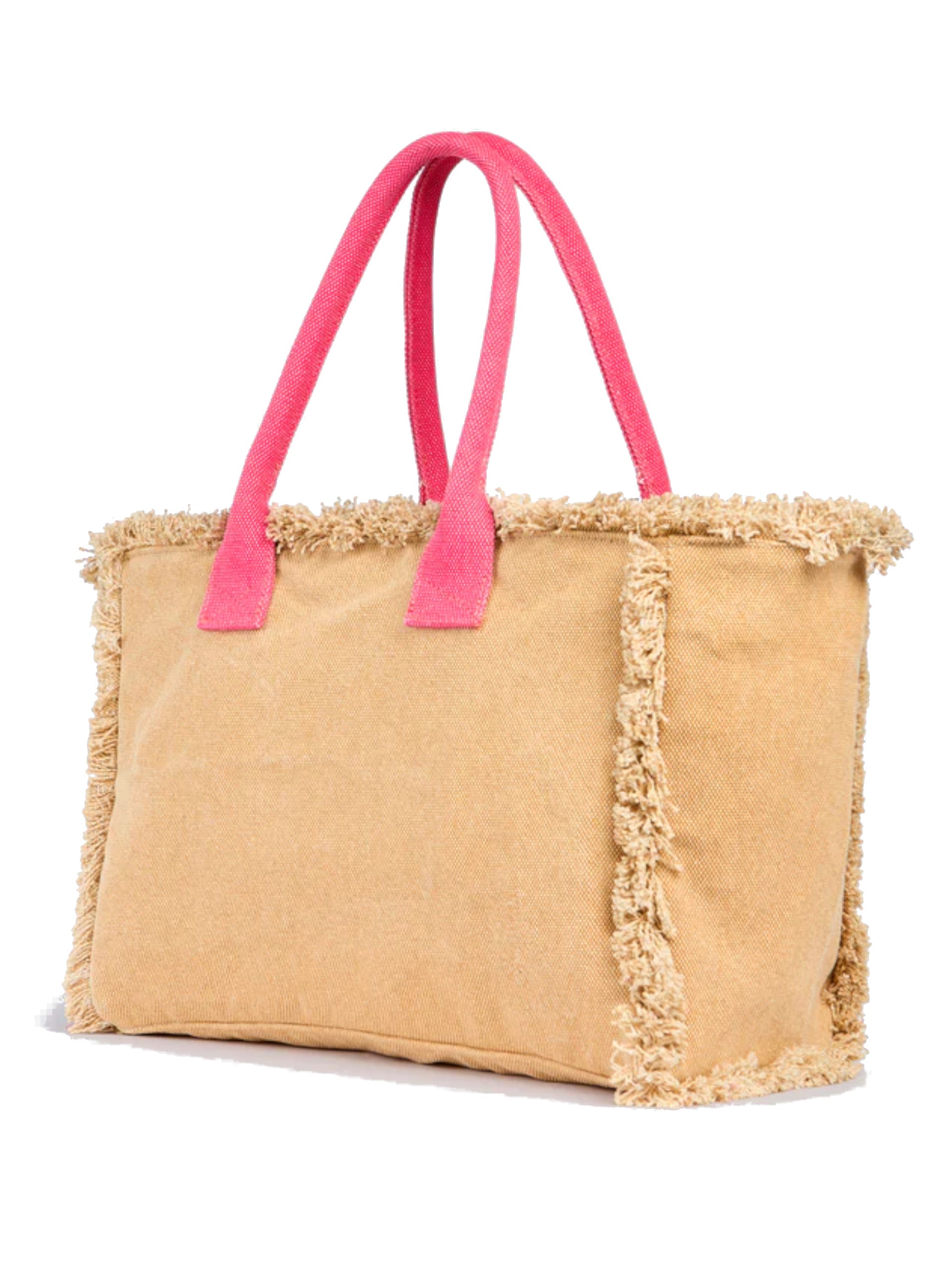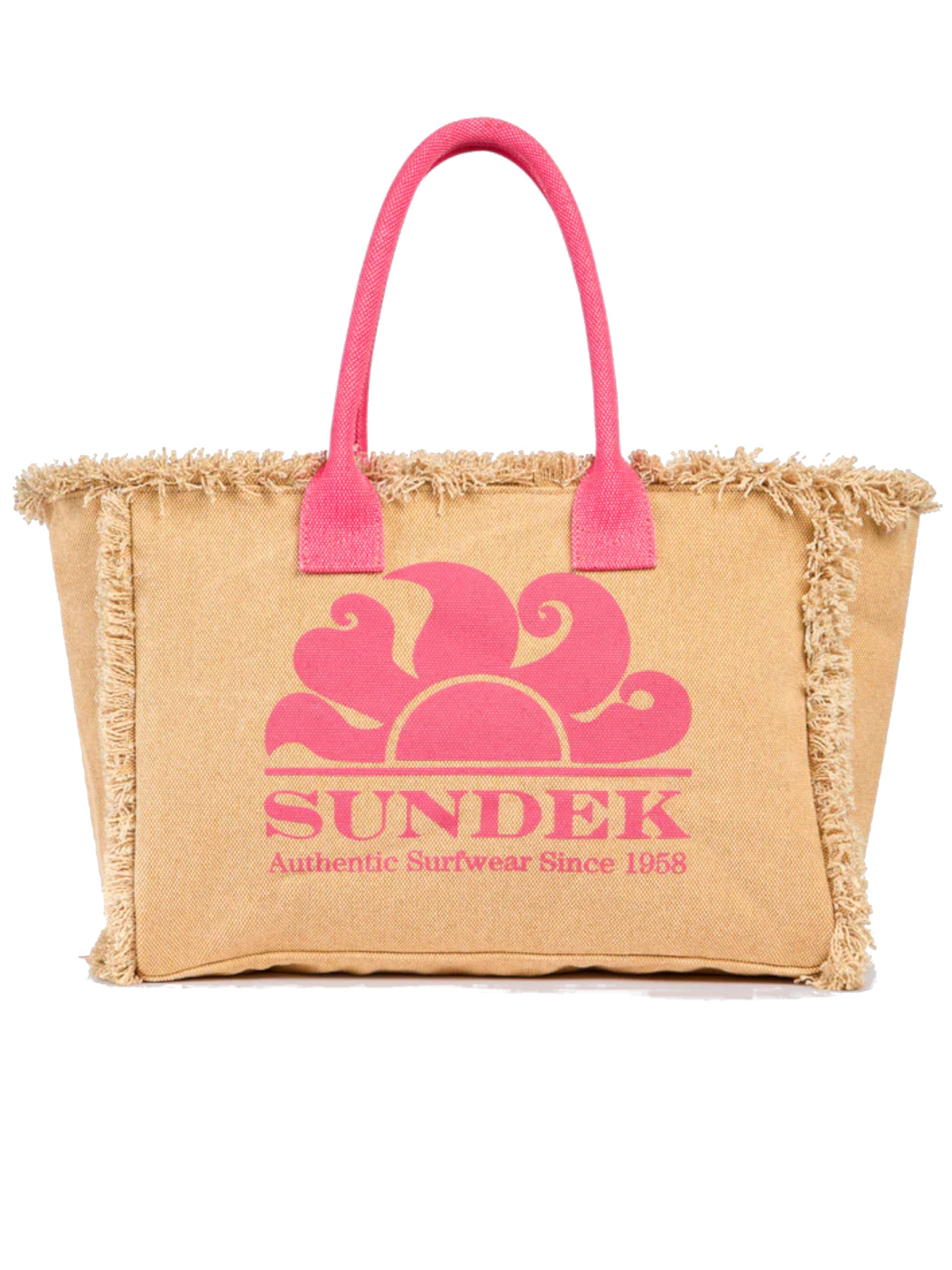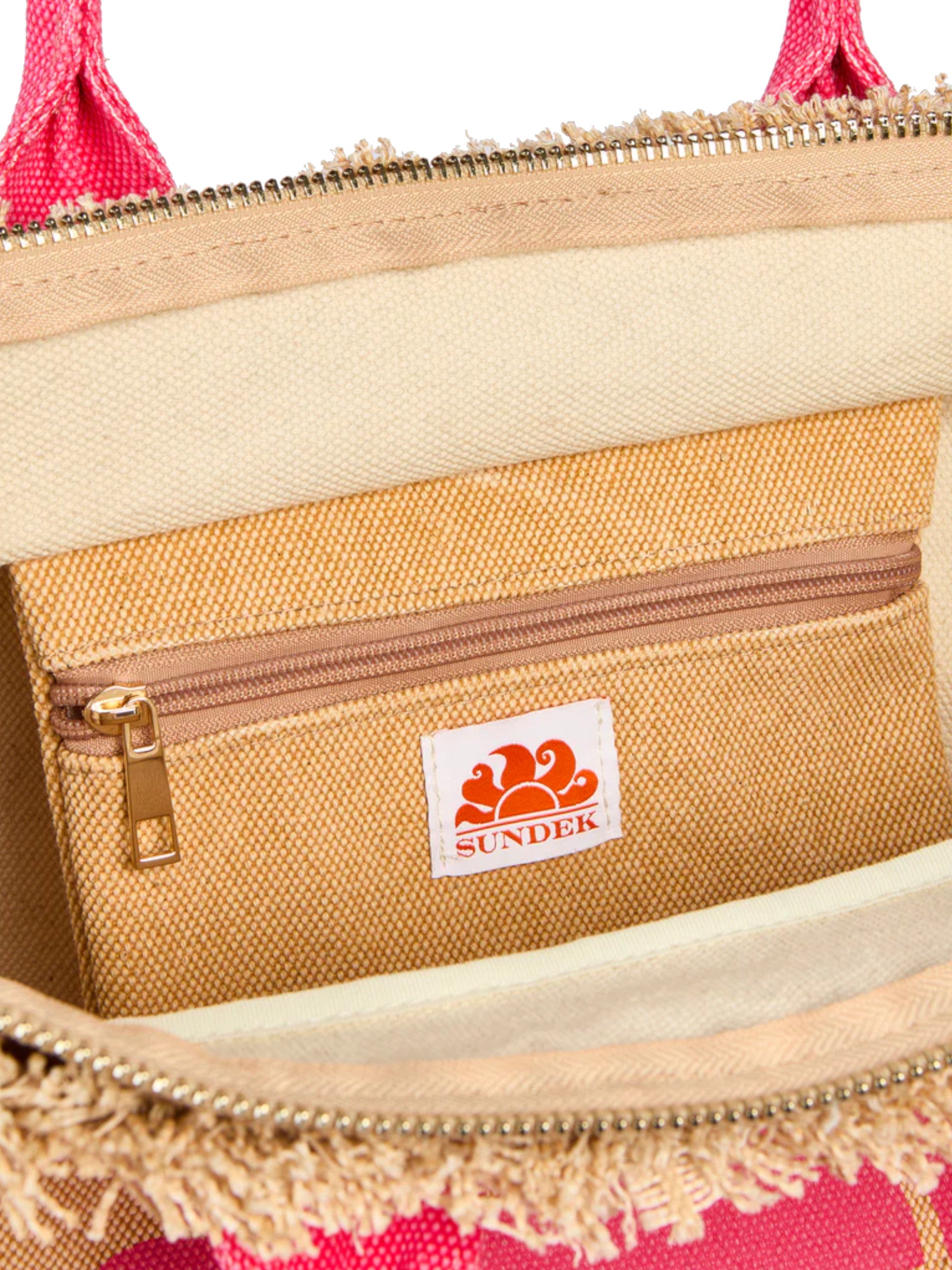 Borsa mare Sundek beige e fucsia da donna Los Angeles con frange AW908ABCA600