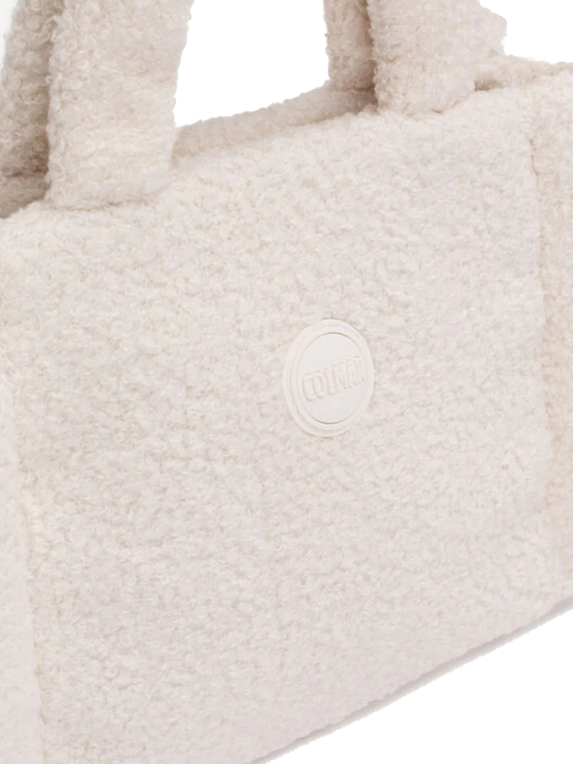 Borsa Colmar bianca ecoteddy da donna. Questa borsa Colmar ha il manico fisso per il trasporto a mano, la chiusura con bottone automatico e il logo Colmar sul davanti. All'interno di questa borsa Colmar troviamo un unico grande scomparto con una tasca aperta