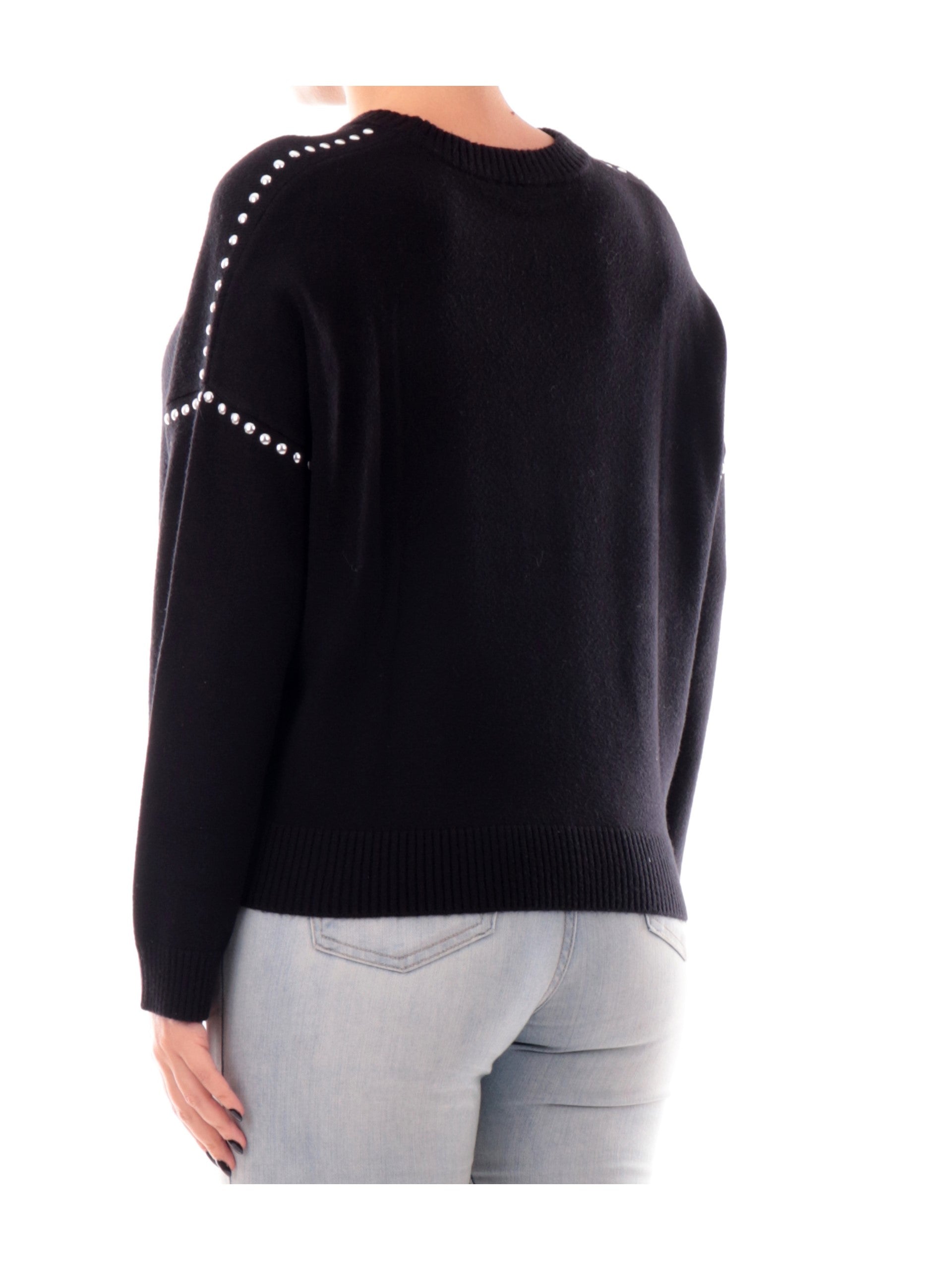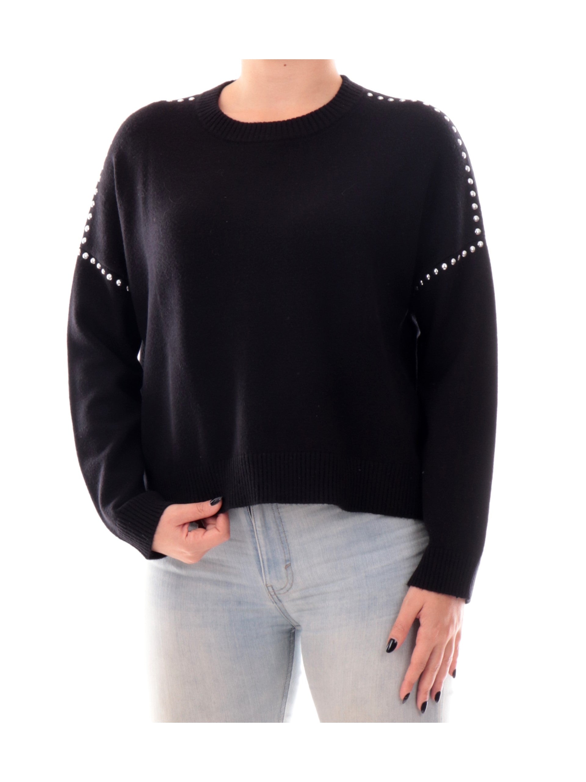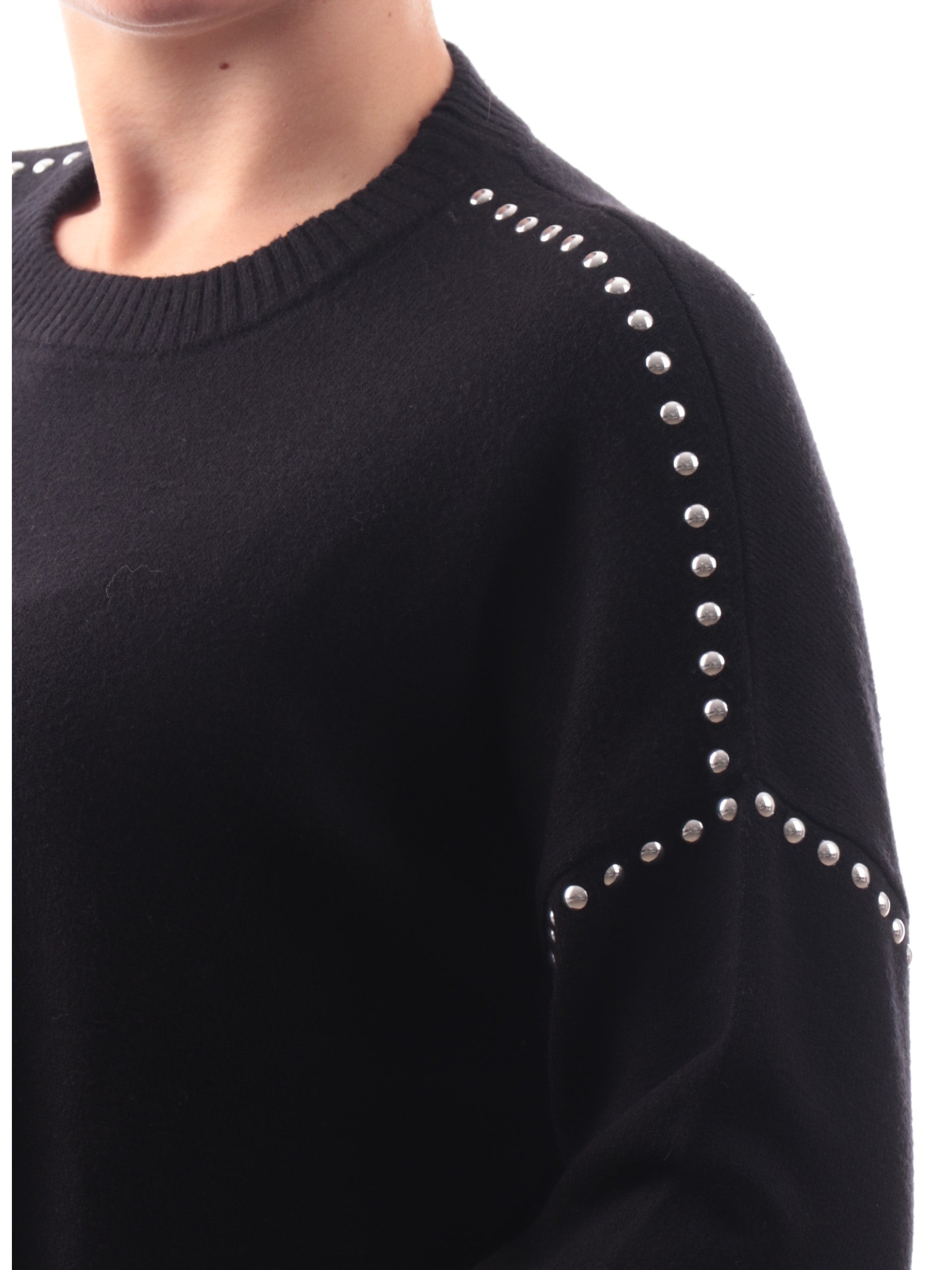 Maglione Anis nero da donna con borchie. Questo maglione nero Anis è caratterizzato da una vestibilità morbida che si adatta comodamente ad ogni fisicità e spalla scesa. Il fondo morbido lo rende perfetto per ogni fisicità.
