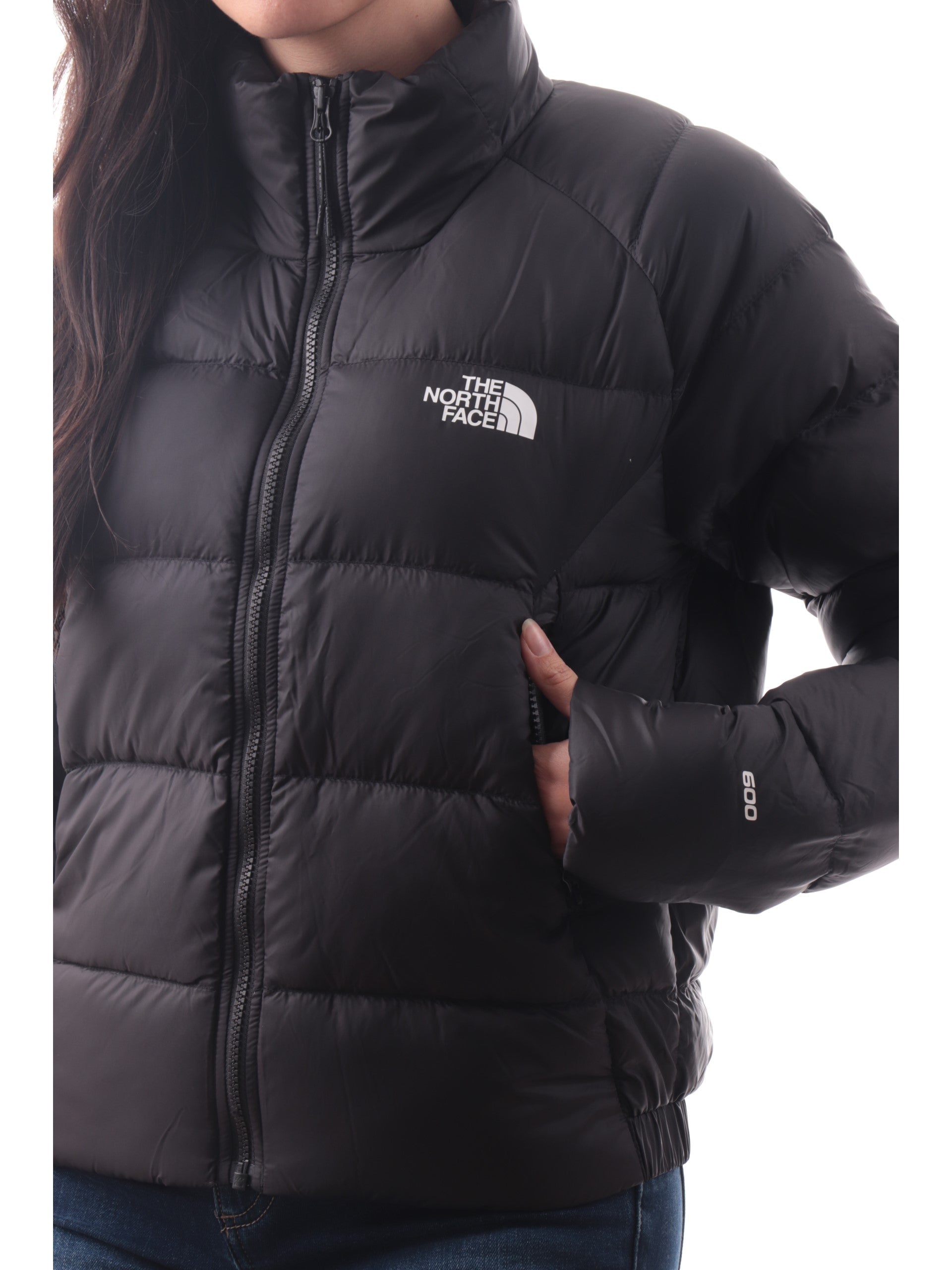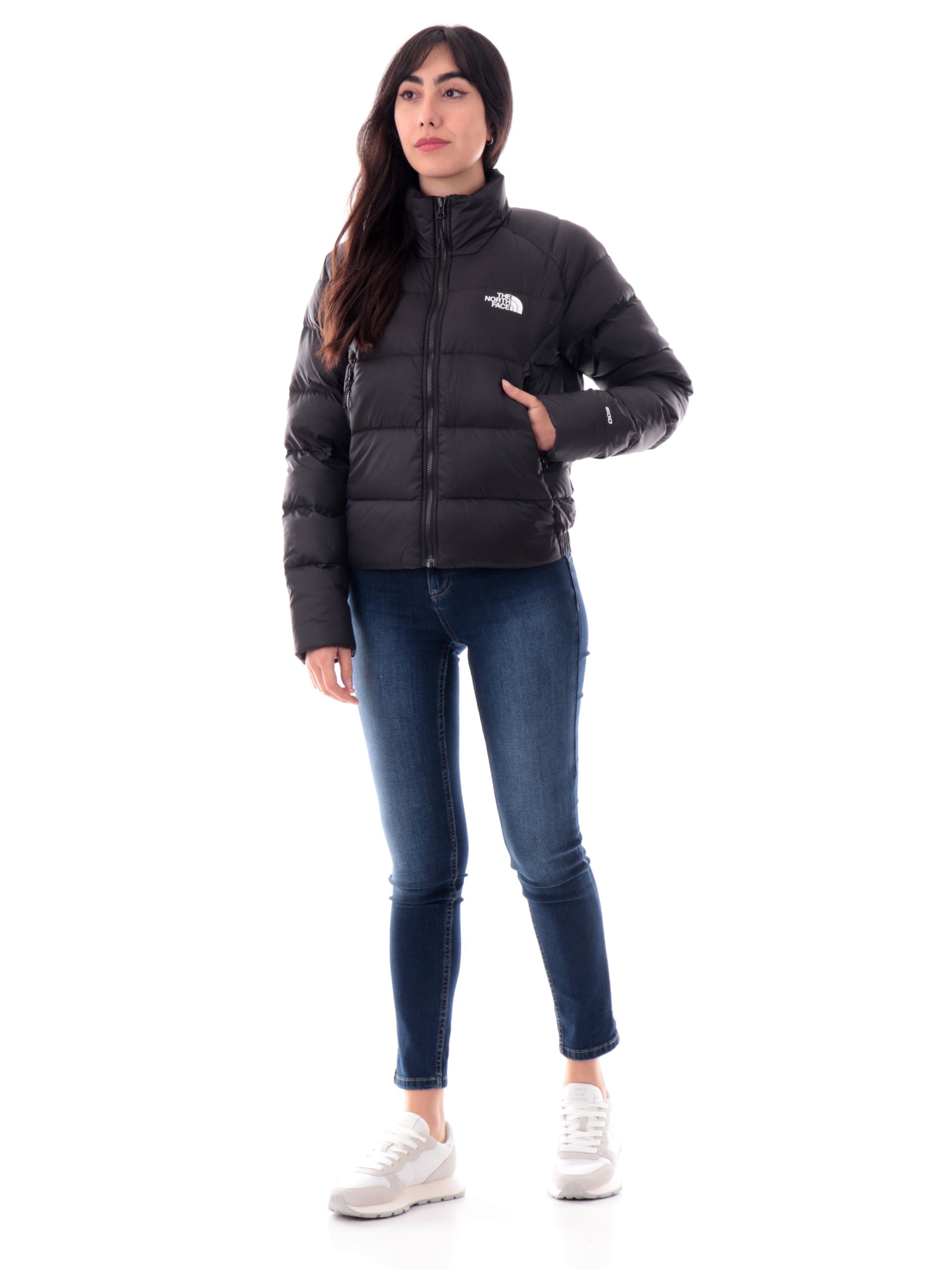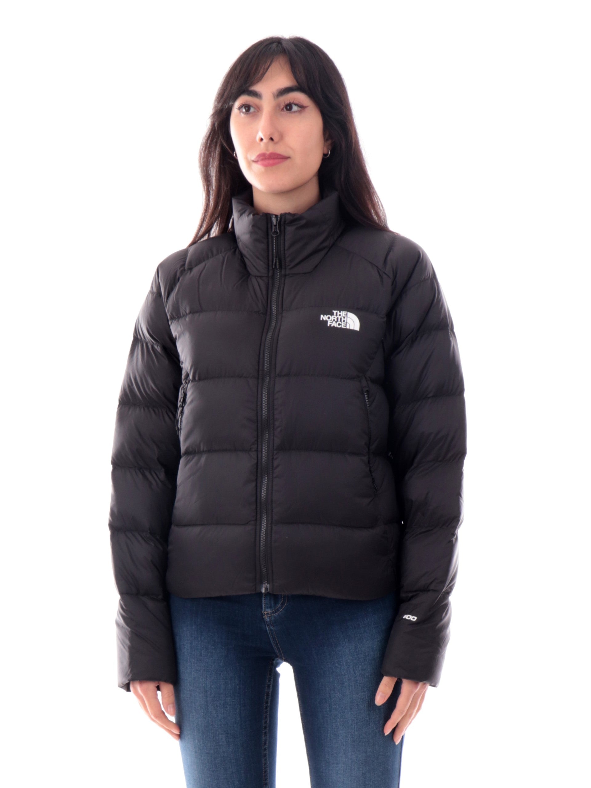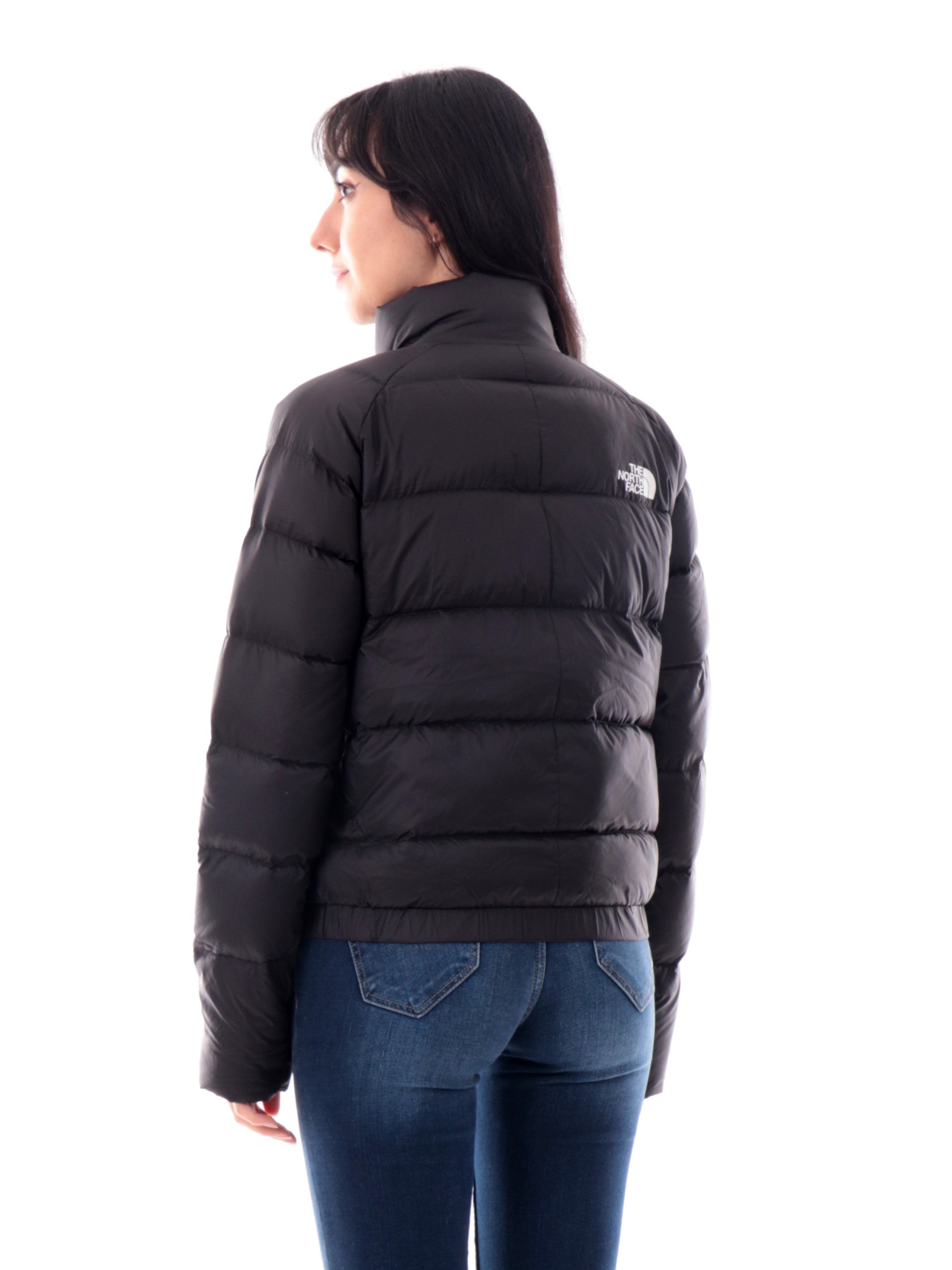 Piumino The North Face da donna nero HYALITE DOWN JKT. Questo giubbino The North Face da donna nero ha un'imbottitura in piuma naturale ed è caratterizzato da collo alto, chiusura centrale full zip, due tasche laterali con la chiusura a zip, il logo del brand applicato a lato cuore e sul retro, polsini e fondo elasticizzati.