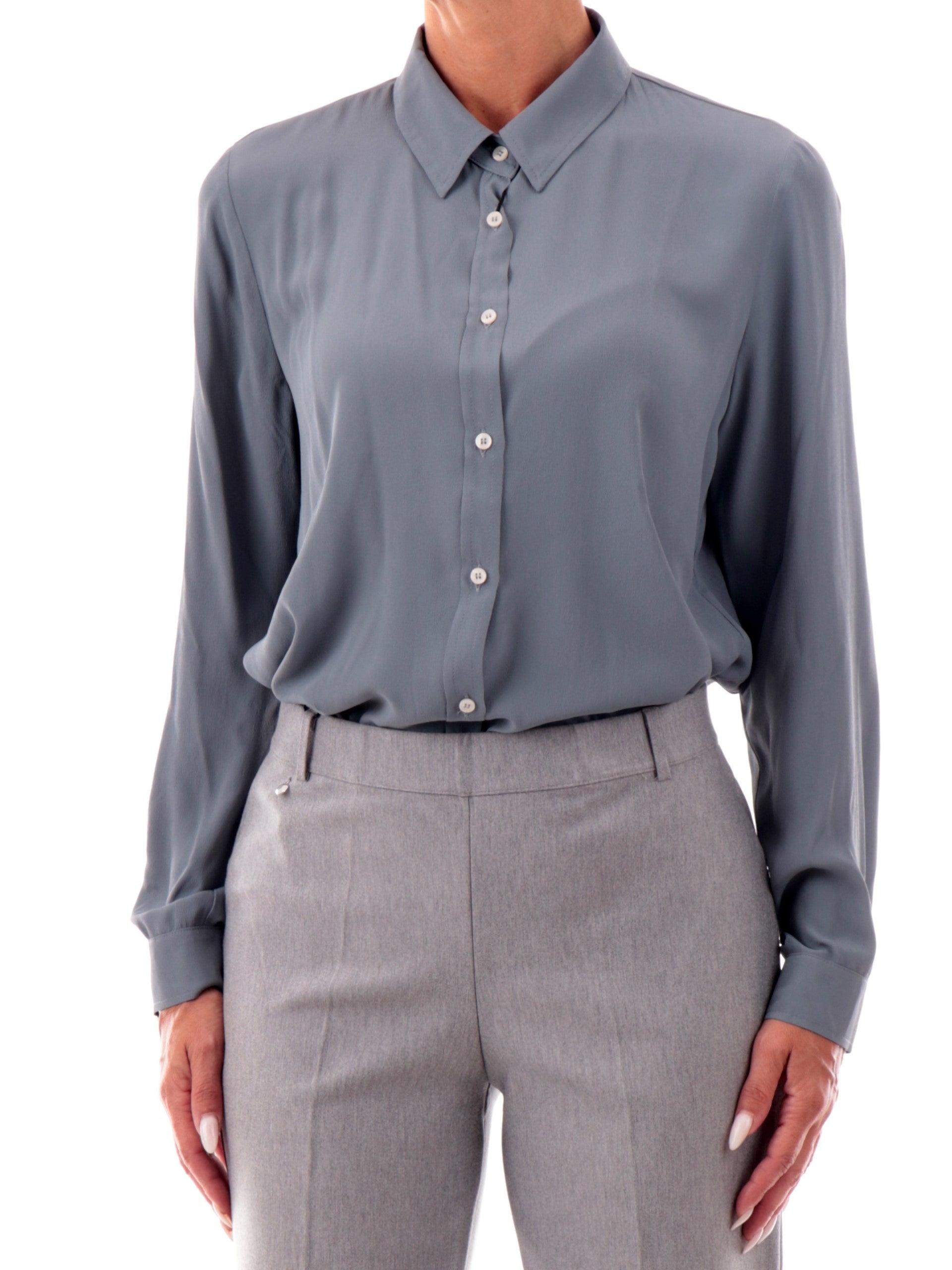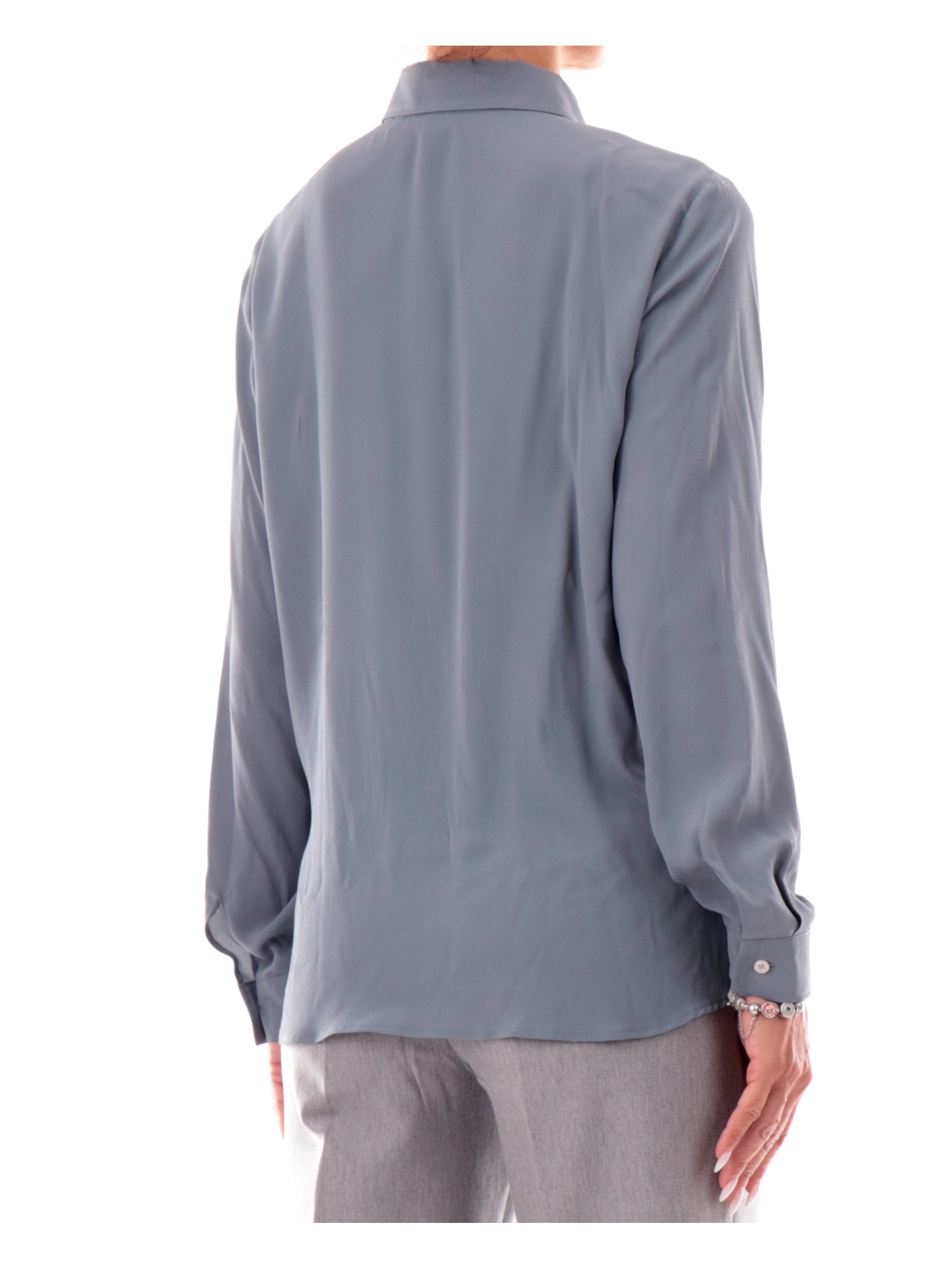 Camicia seta Emme Marella celeste da donna CARICE. Questa camicia Marella celeste ha il colletto alla francese, la chiusura con bottoni e le maniche lunghe con polsini.