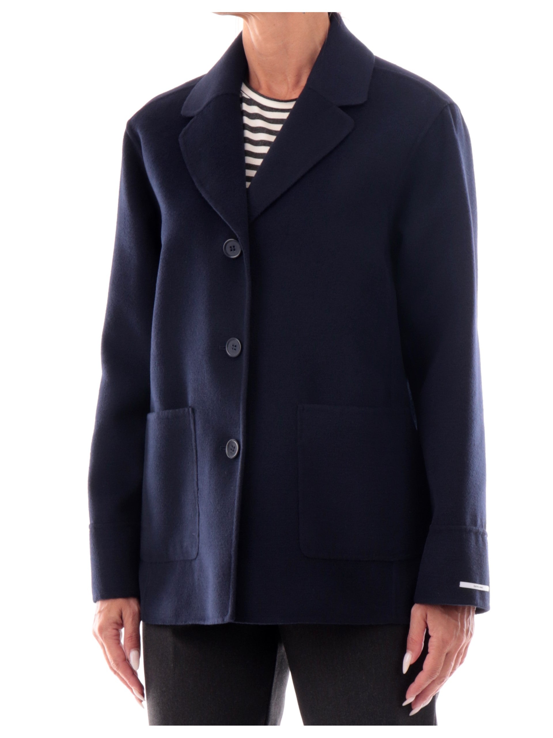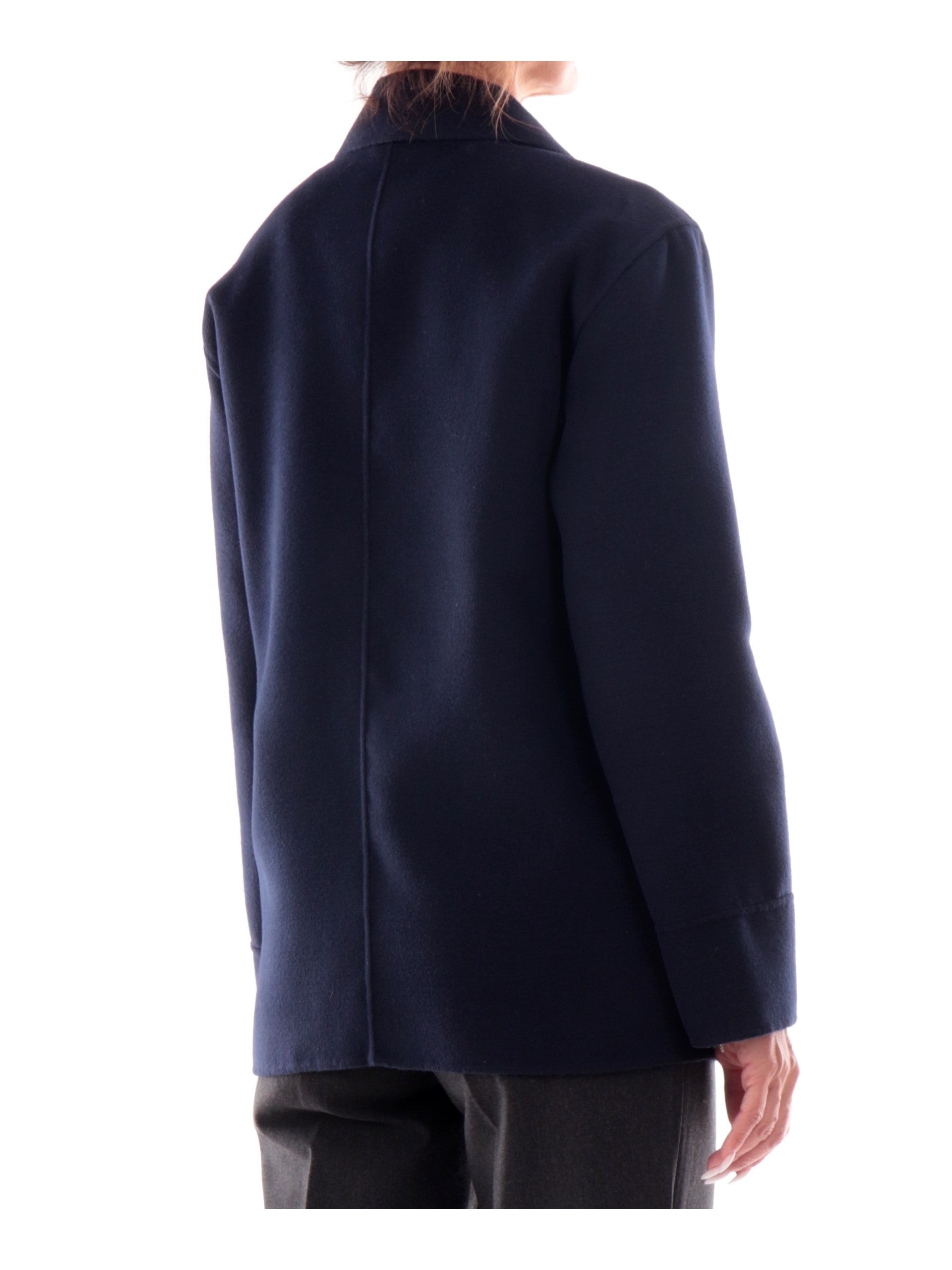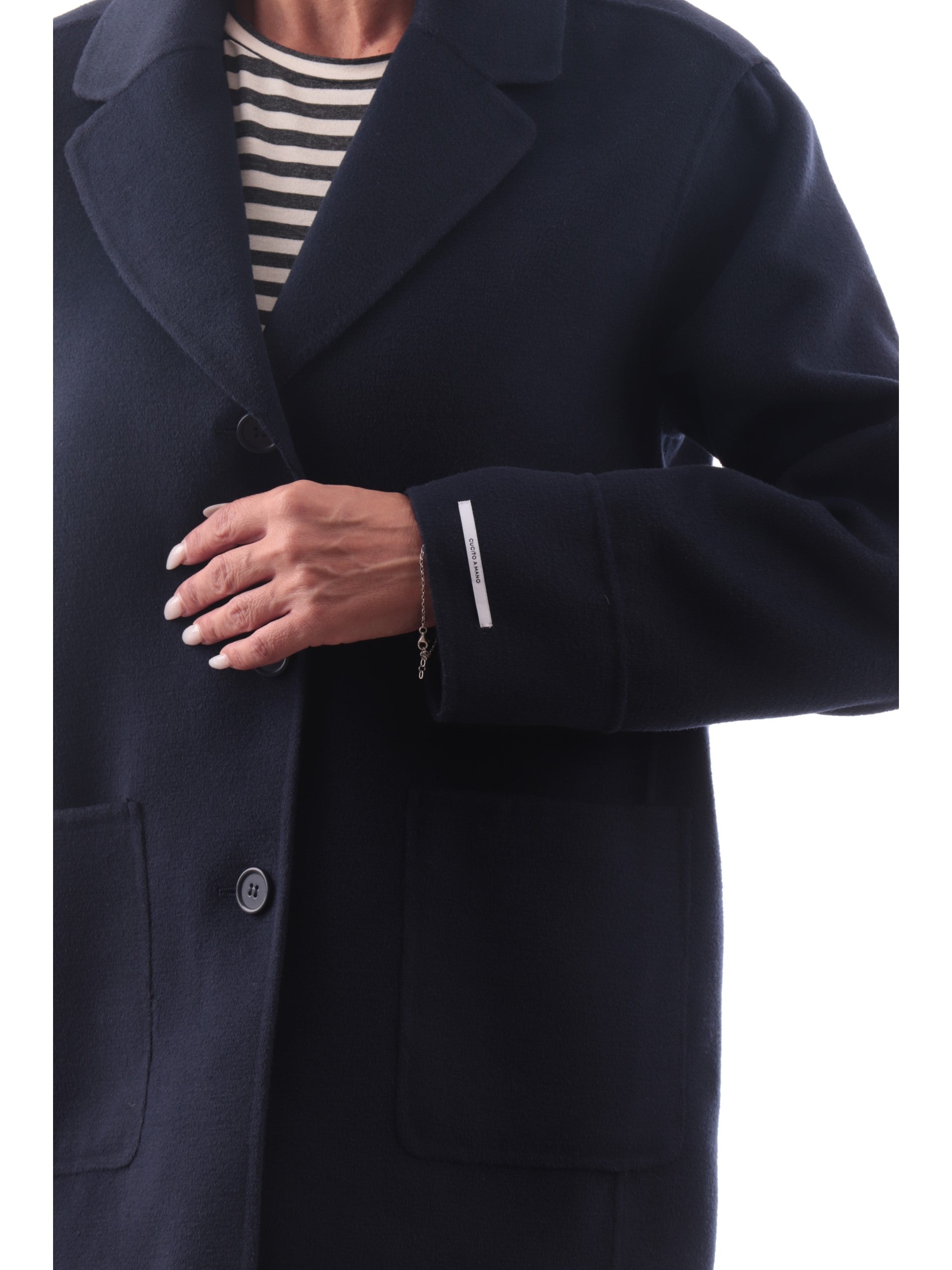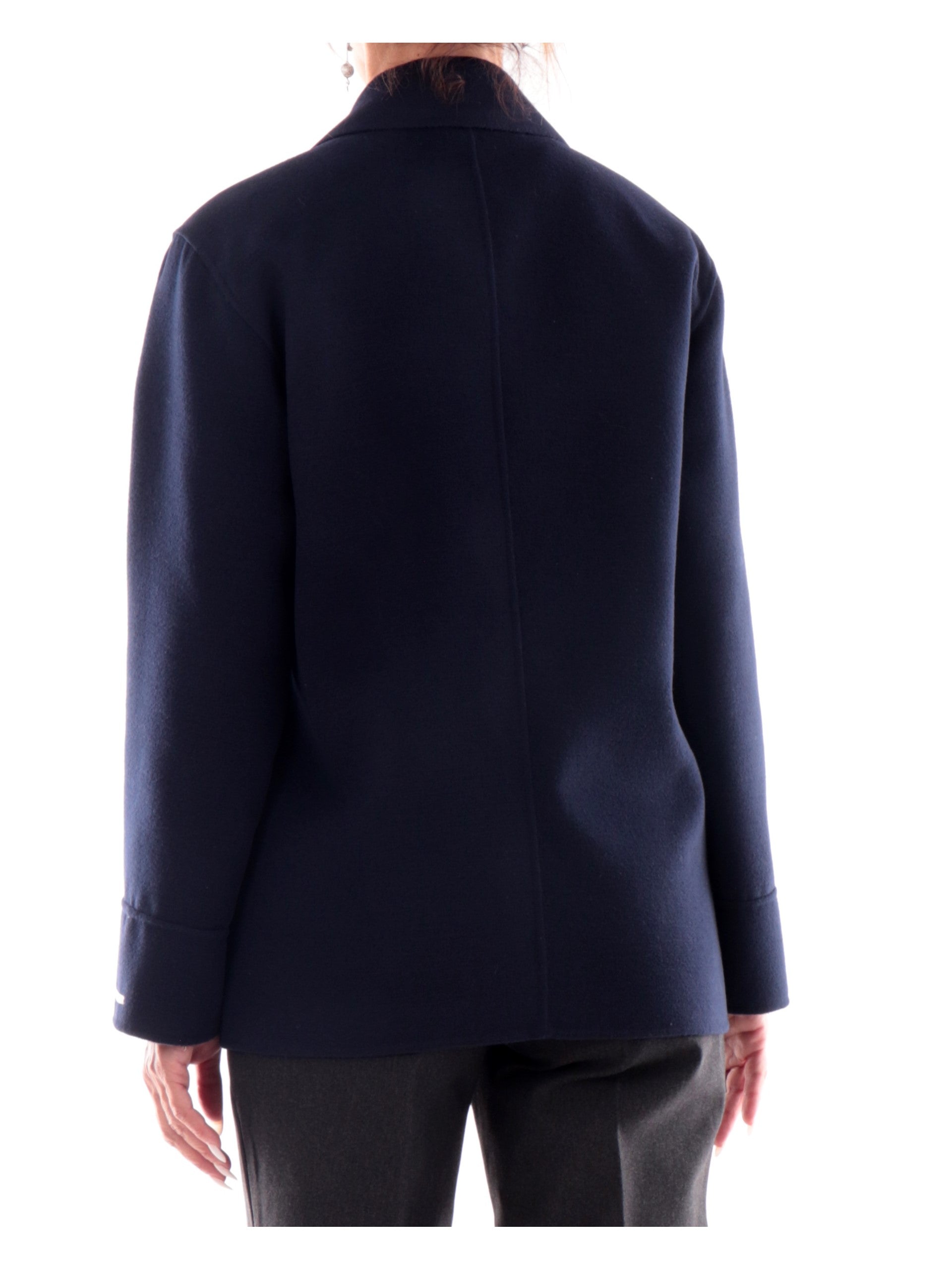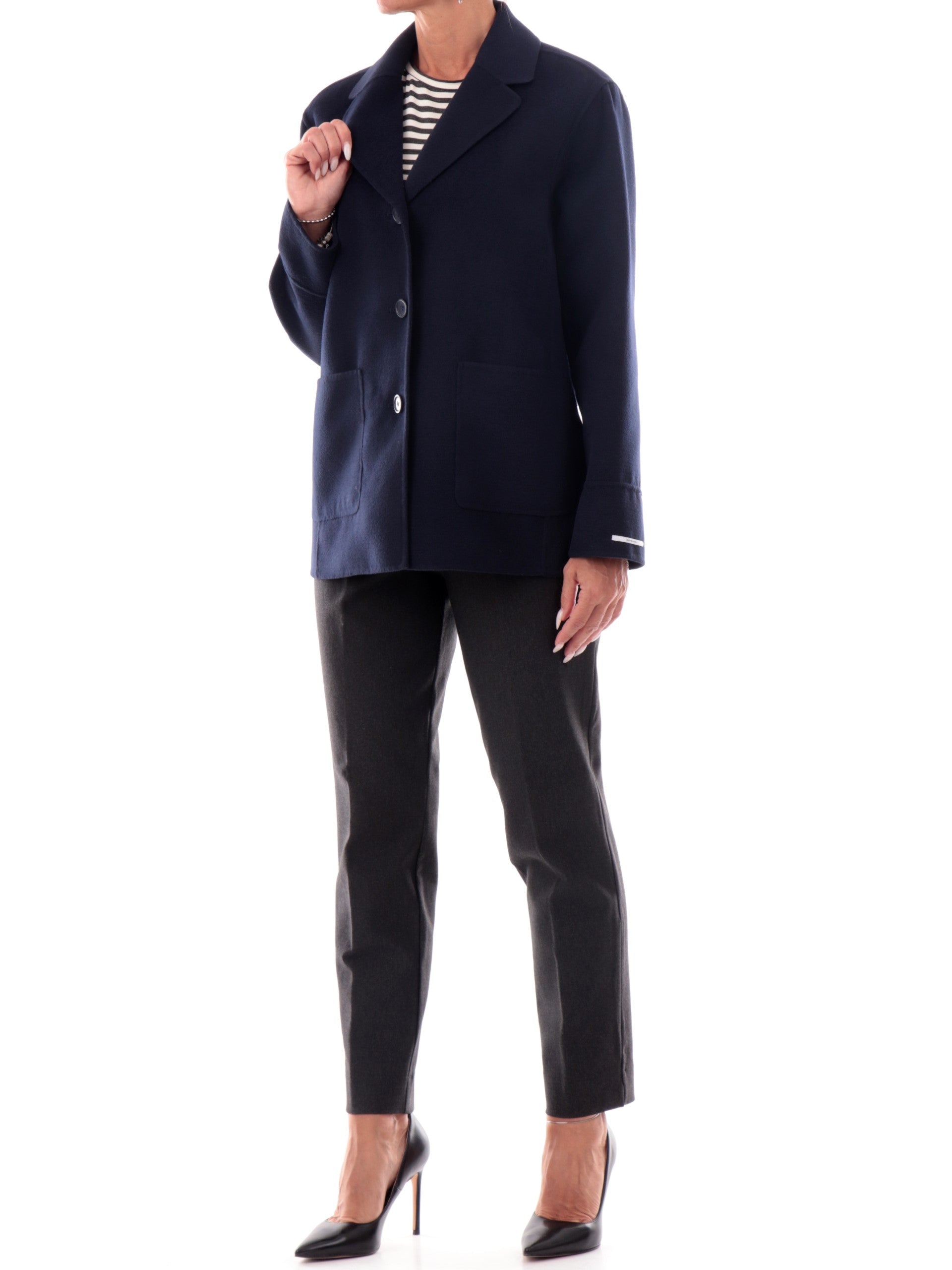 Cappotto Emme Marella nero da donna con tasche PALOS, realizzata in morbido e caldo tessuto. Questo giaccone Marella nero ha il colletto alla francese, il rever, la chiusura con bottoni e due tasconifrontali a filo.