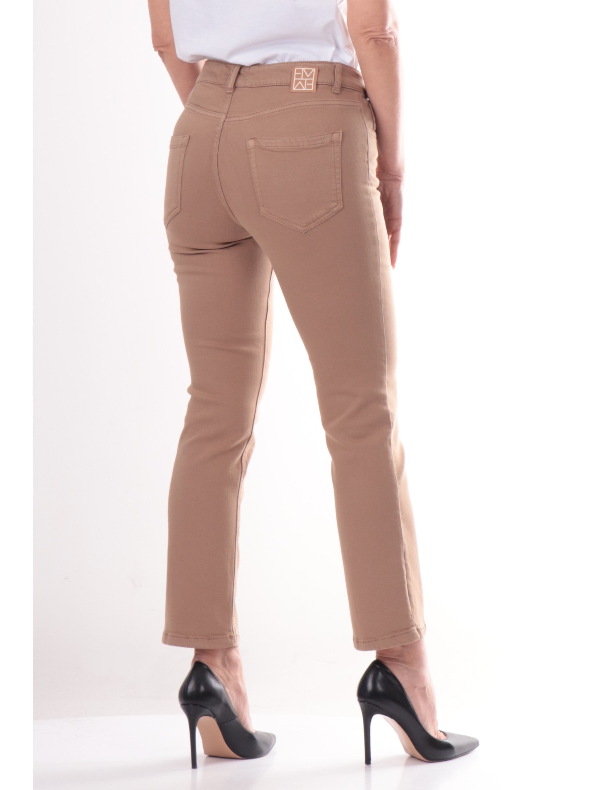 Pantaloni jeans marrone Emme Marella da donna. Questo pantalone da donna, realizzato da un tessuto morbido e avvolgente, è caratterizzato dalla chiusura con bottone logato più zip, passanti per la cintura, tasche applicate davanti e dietro, etichetta personalizzata sul retro, e gamba dritta. Questi jeans Emme Marella sono perfetti per qualsiasi outfit
