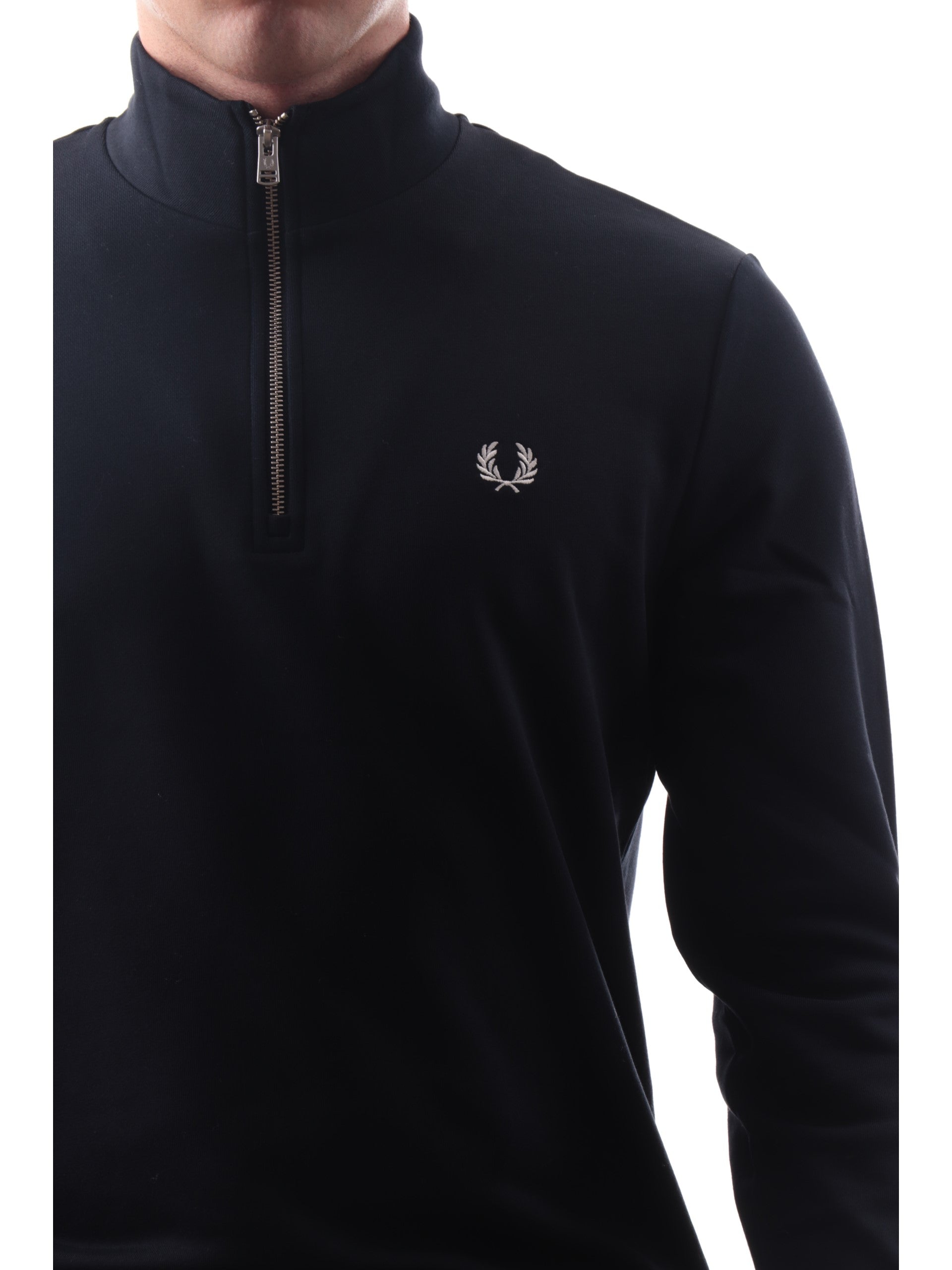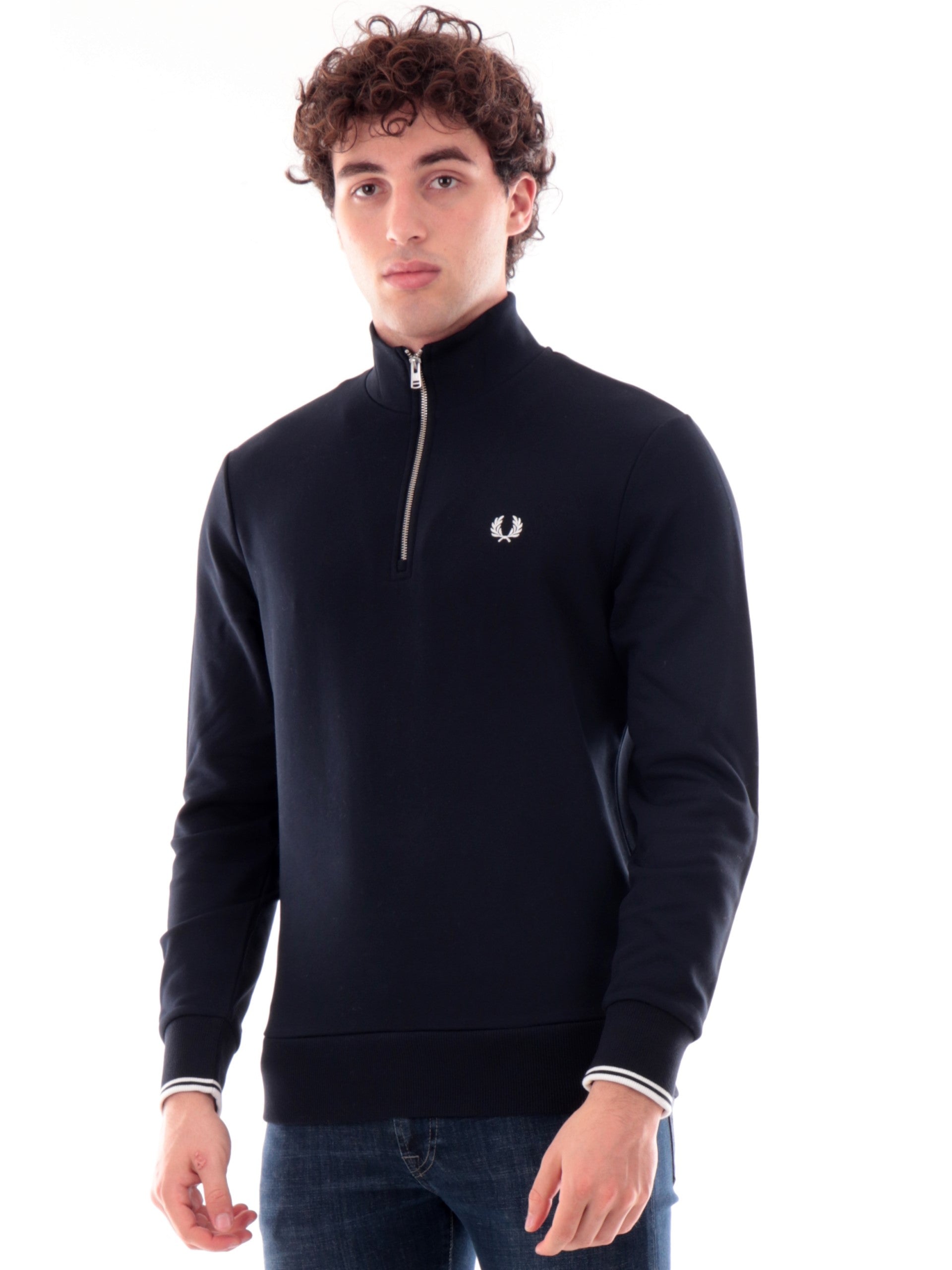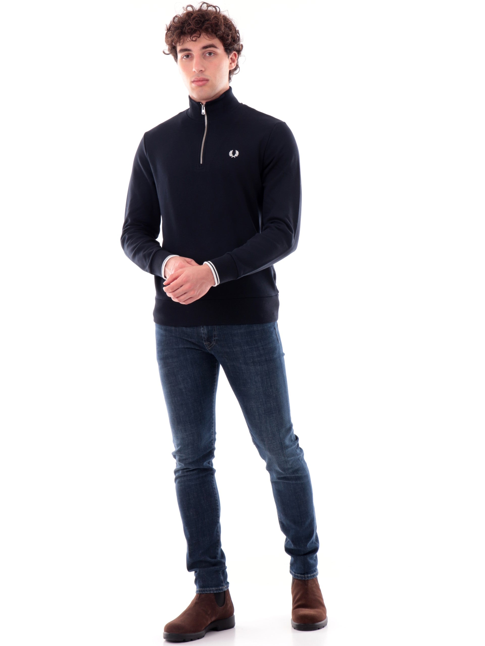 Felpa mezza zip Fred Perry blu da uomo con logo ricamato M3574