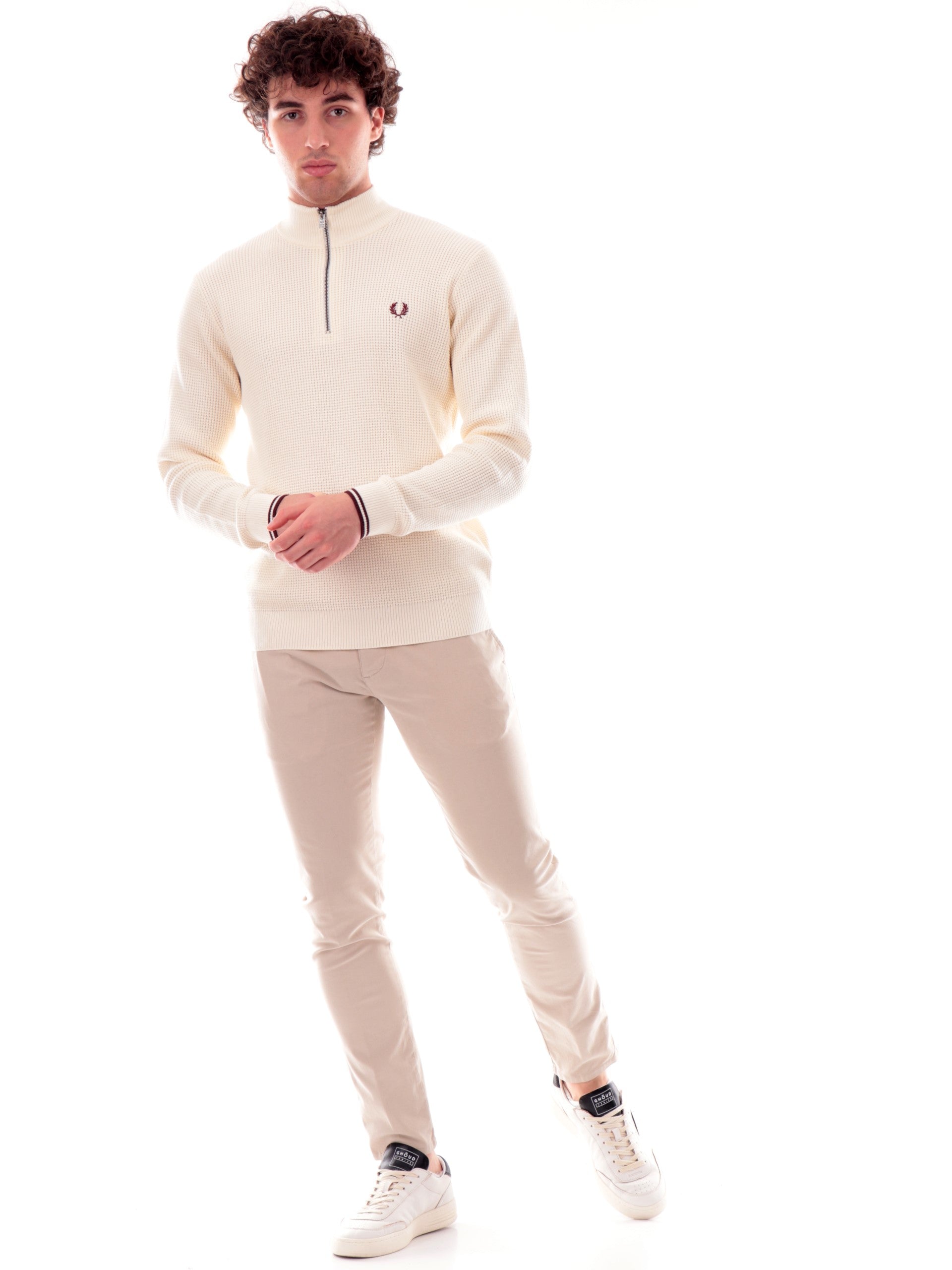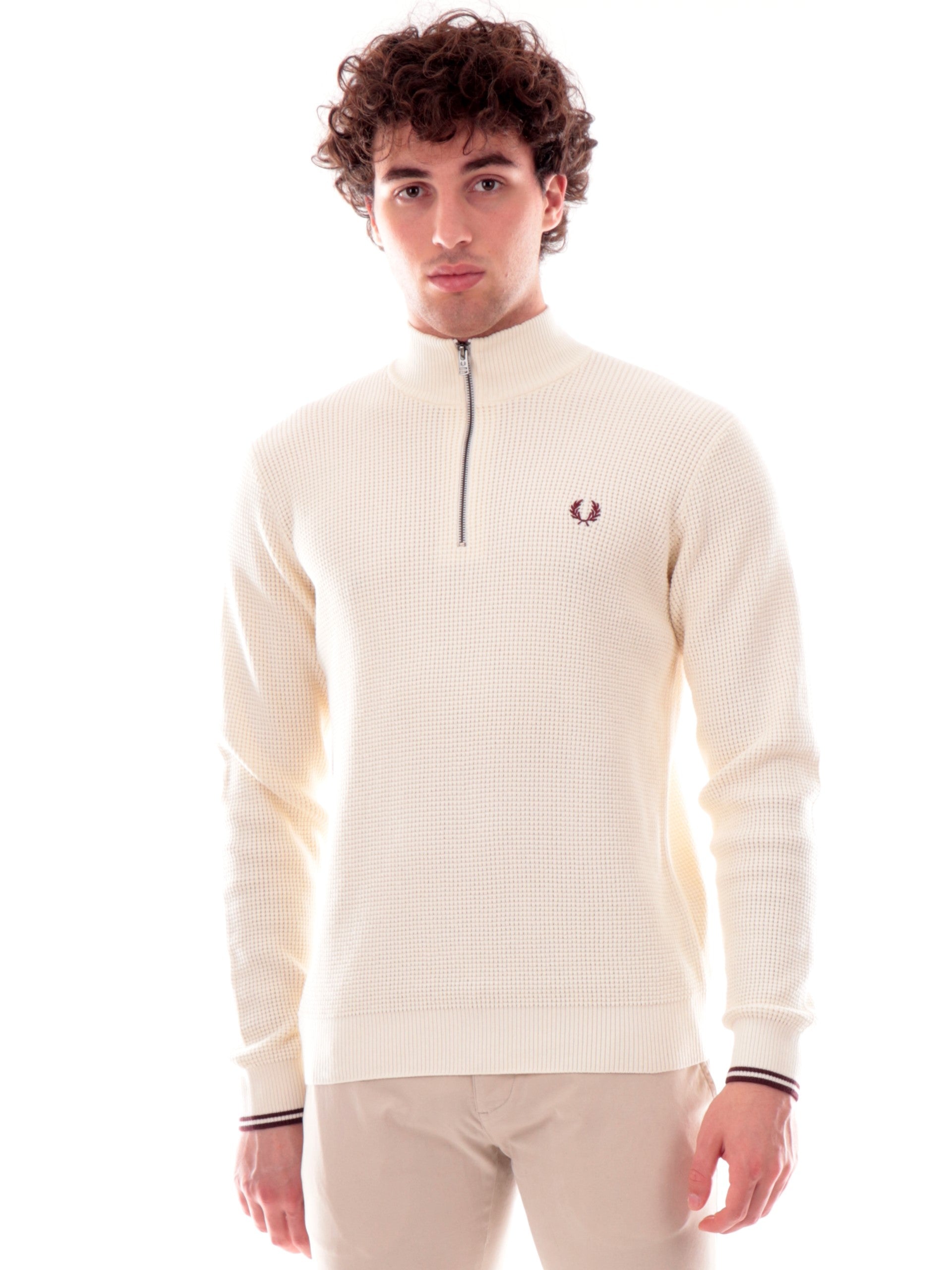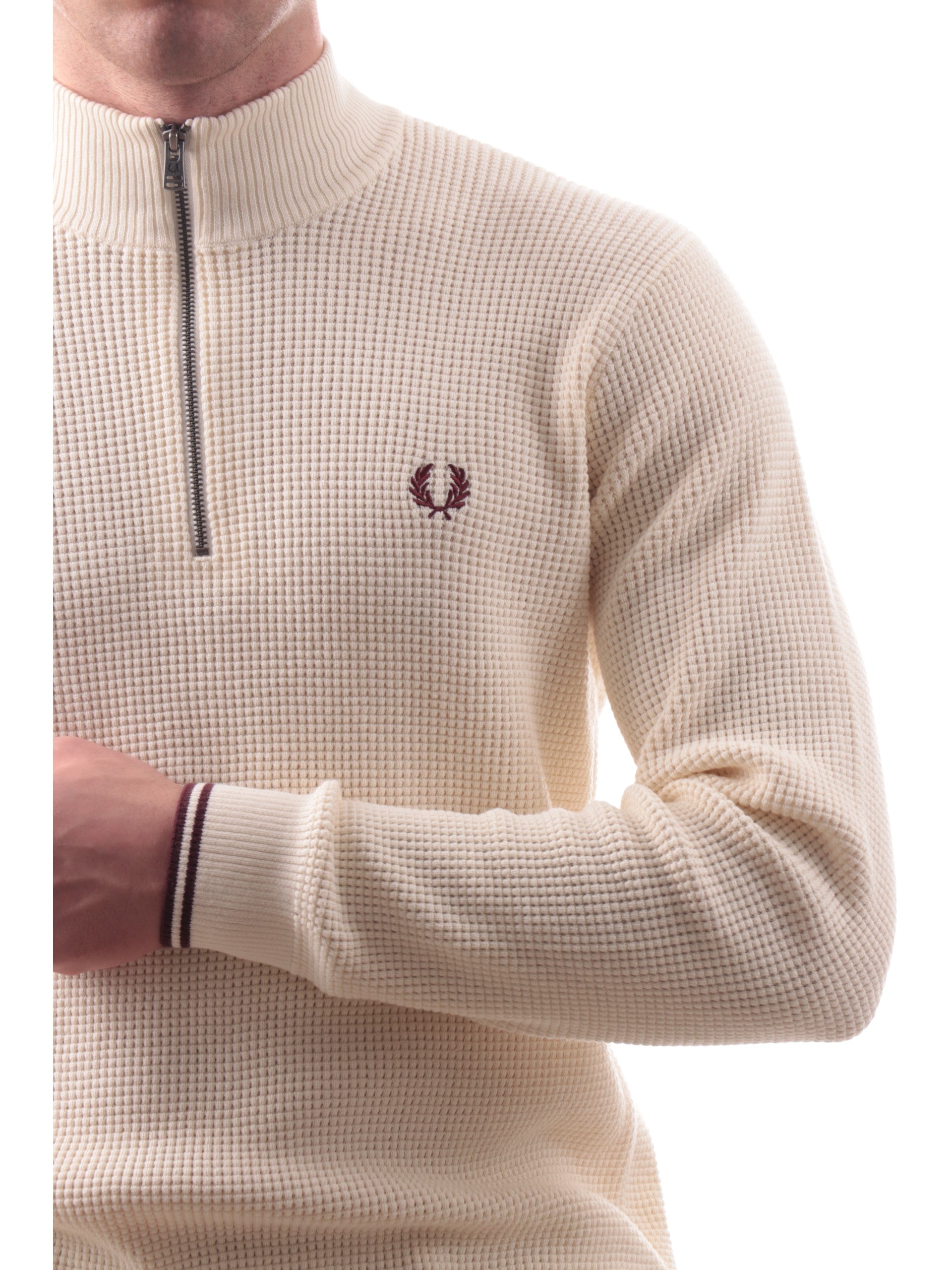 Maglione Fred Perry beige mezza zip da uomo nido d'ape WAFFLE STITCH HAL ZIP JUMPER K8557560