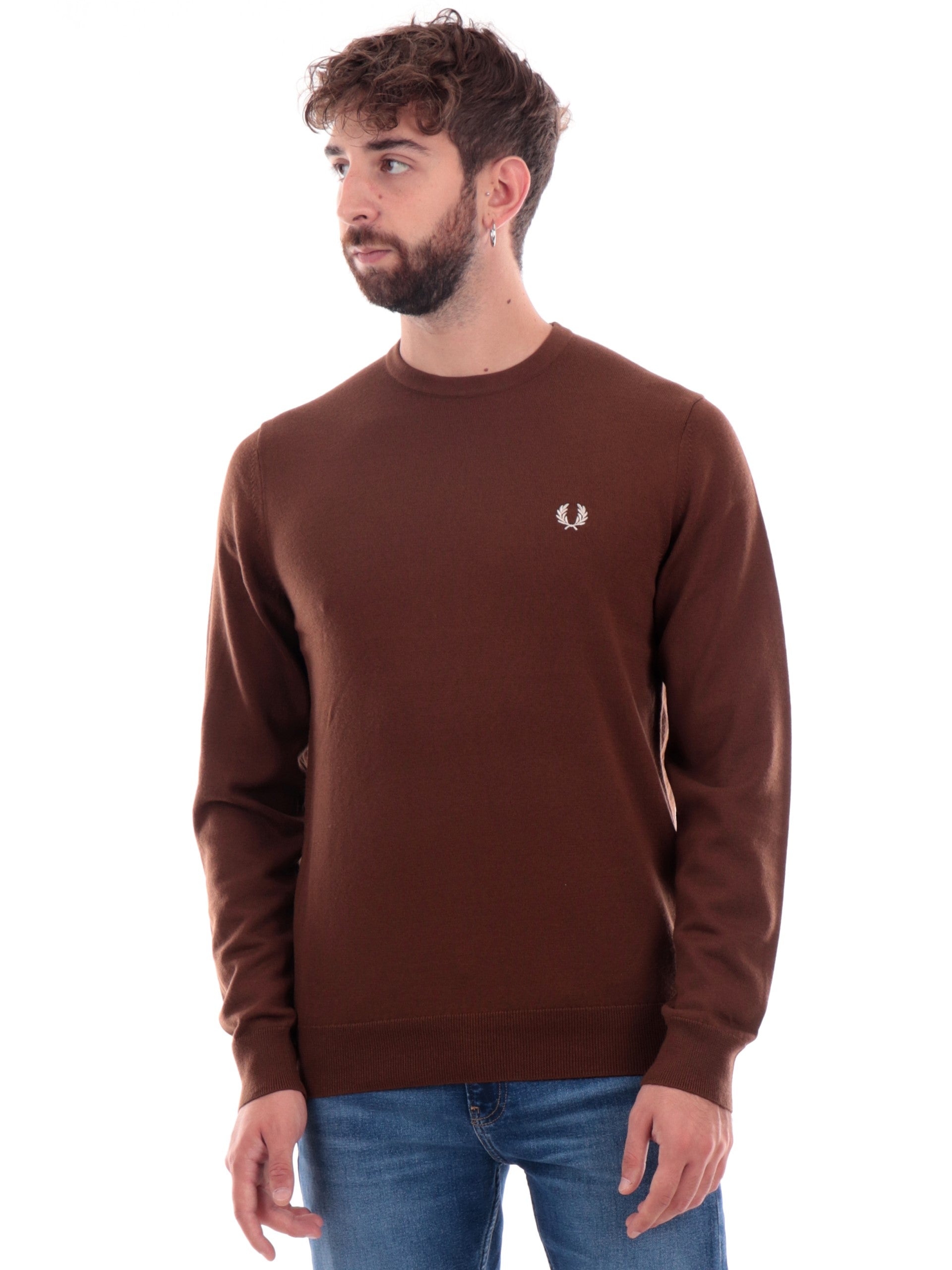 Maglione Fred Perry marrone da uomo Classic Crew Neck Jumper K9601