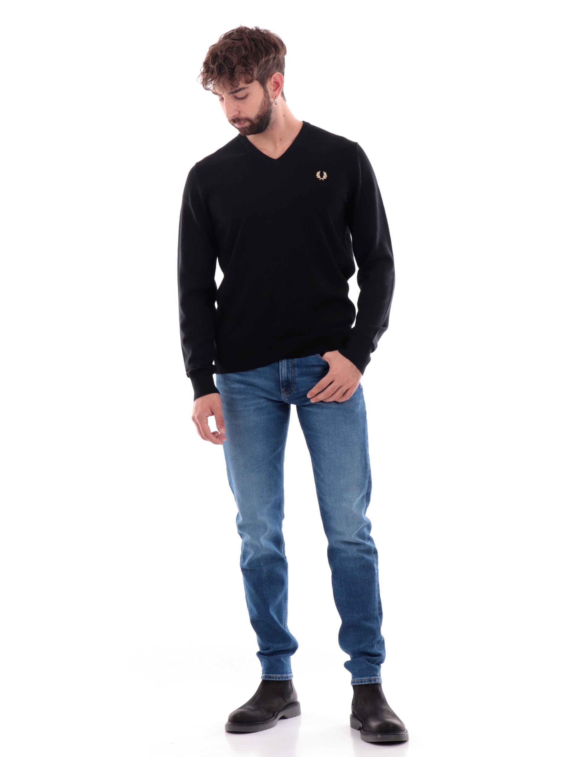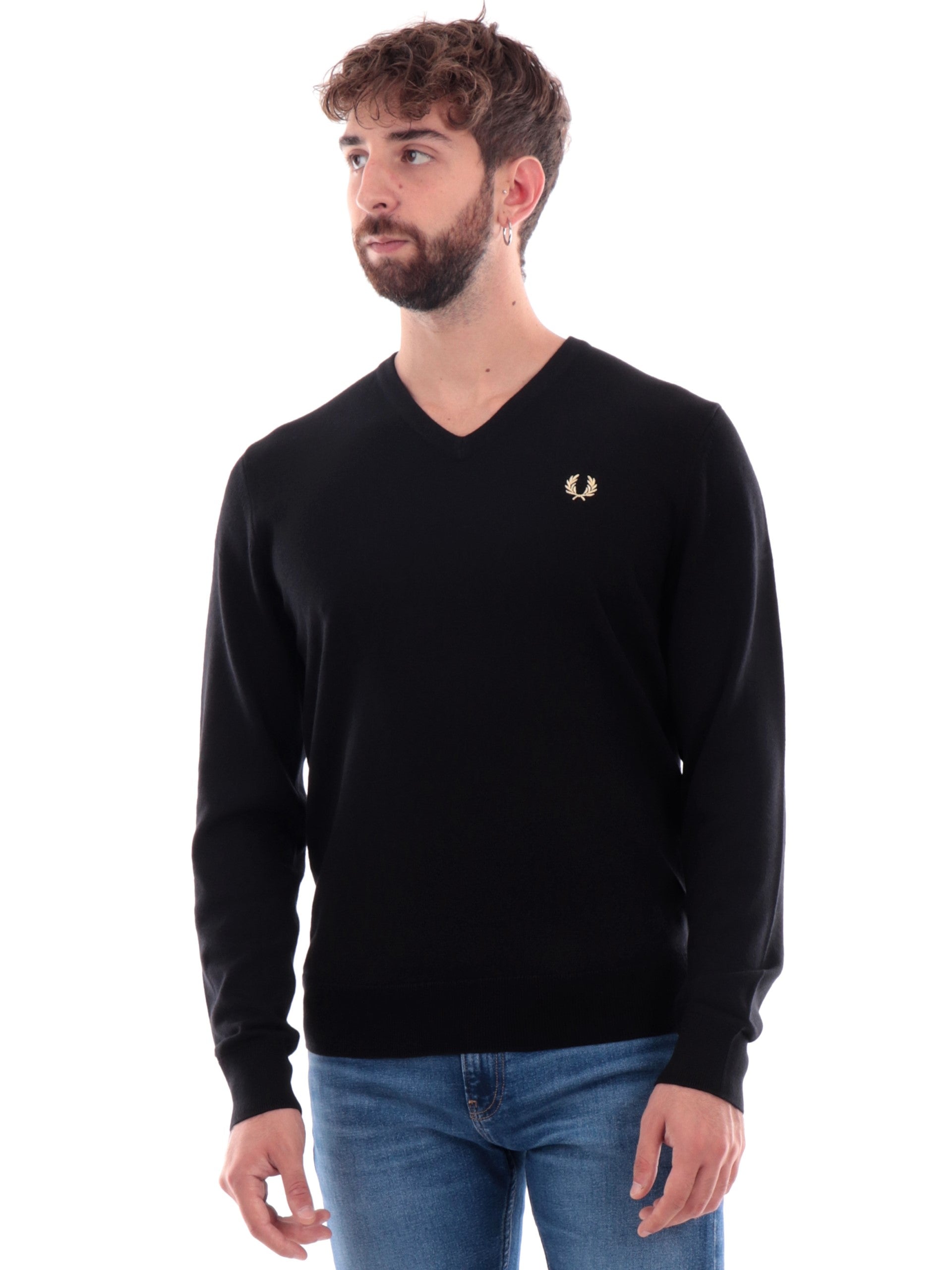 Maglione Fred Perry nero da uomo scollo a V K9600