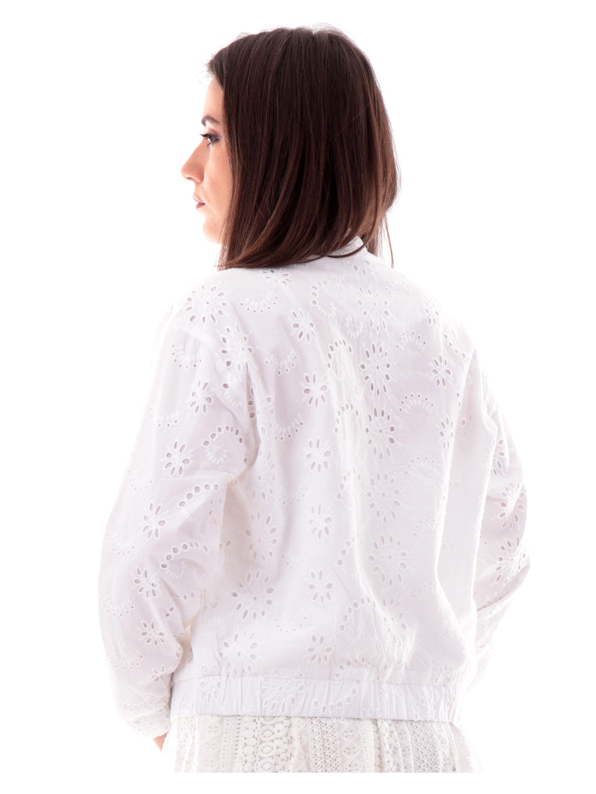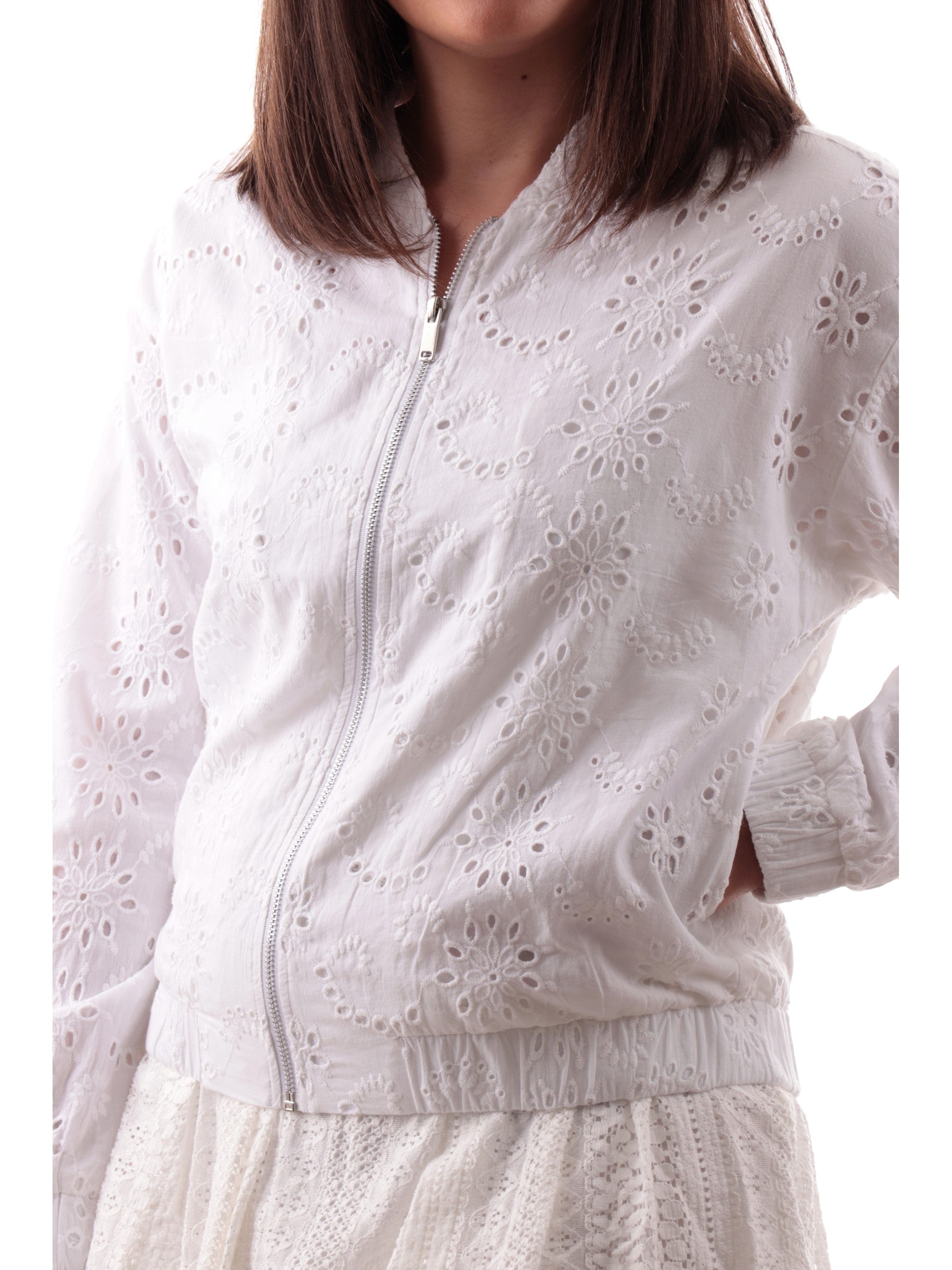 Giubbino Tiffosi bianco ricami traforati da donna full zip Musjac 10059700