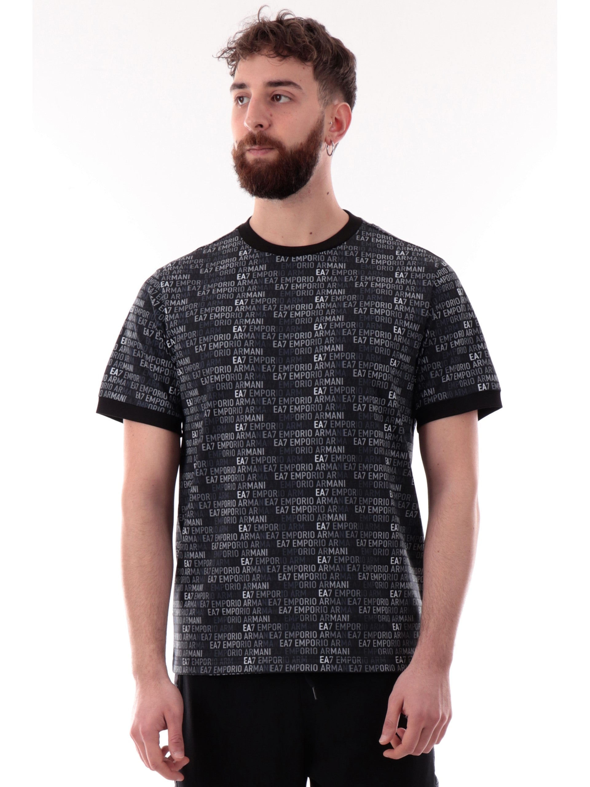 T-shirt Emporio Armani EA7 nera da uomo logo all over 7M000208AF12874
