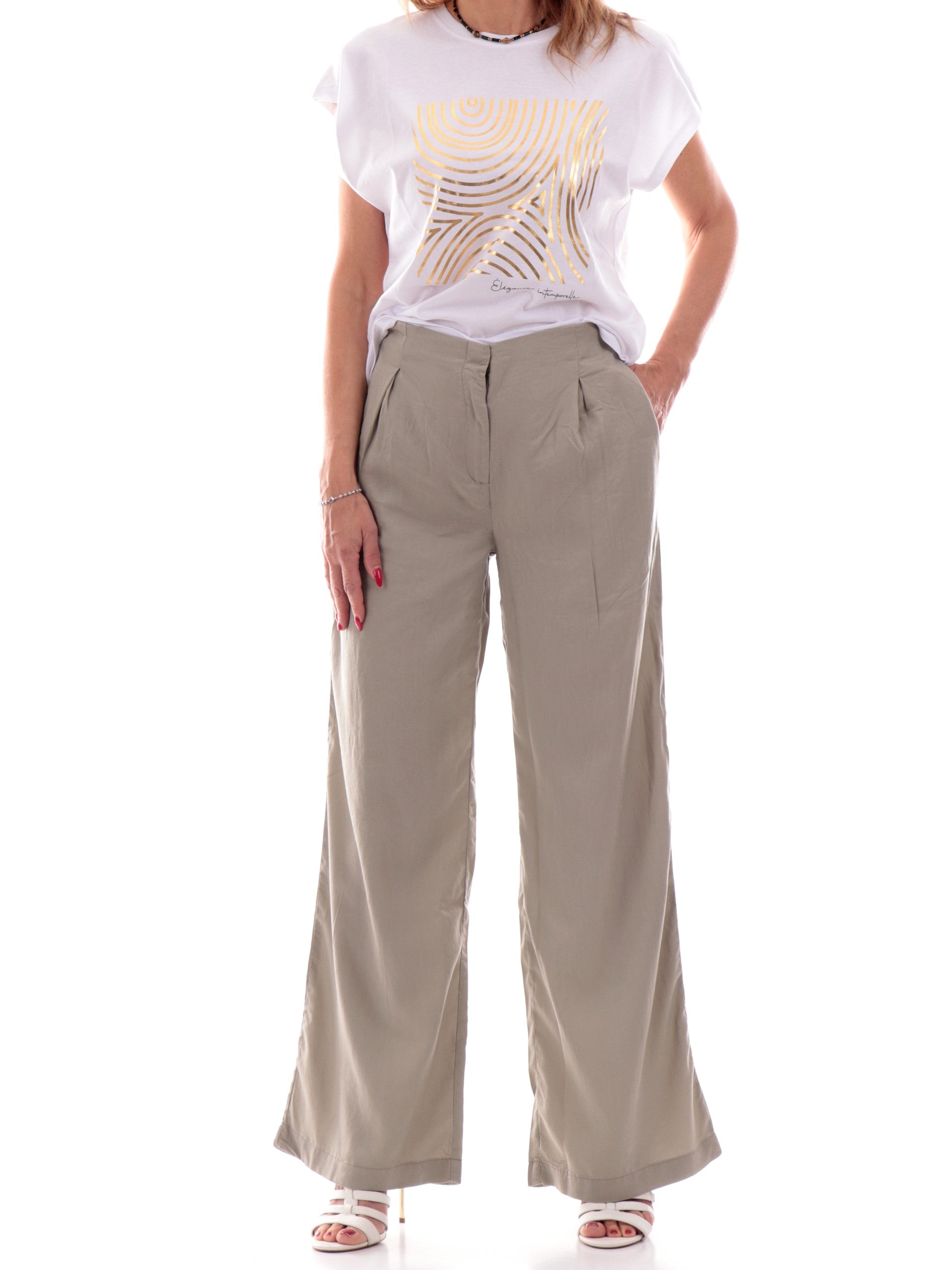 Pantaloni Jeans palazzo beige da donna Tiffosi a vita alta con elastico 10059975. Questi pantaloni donna a palazzo modello Georgia sono realizzati in morbido tessuto jeans fresco e perfetto per l'estate.
