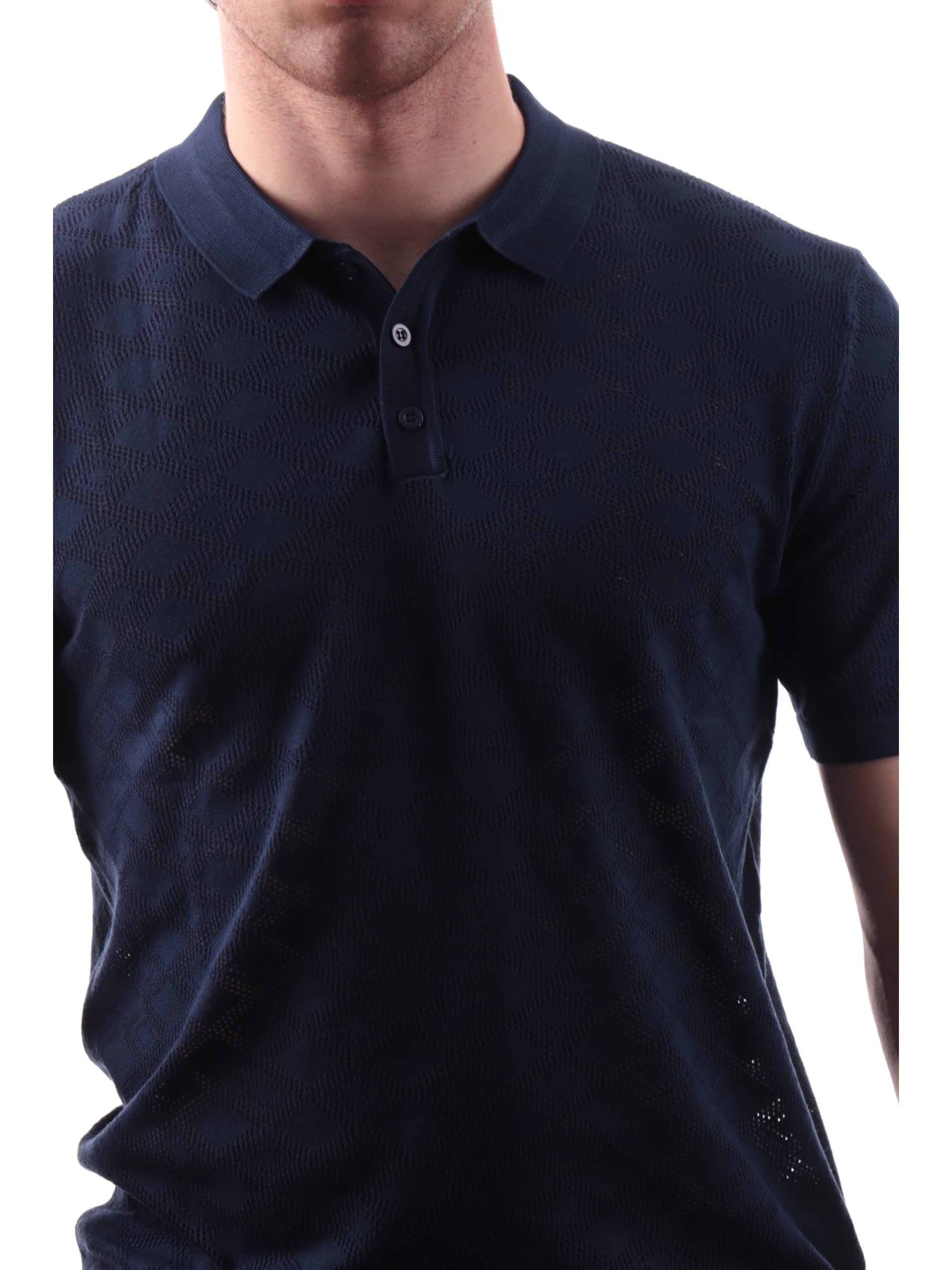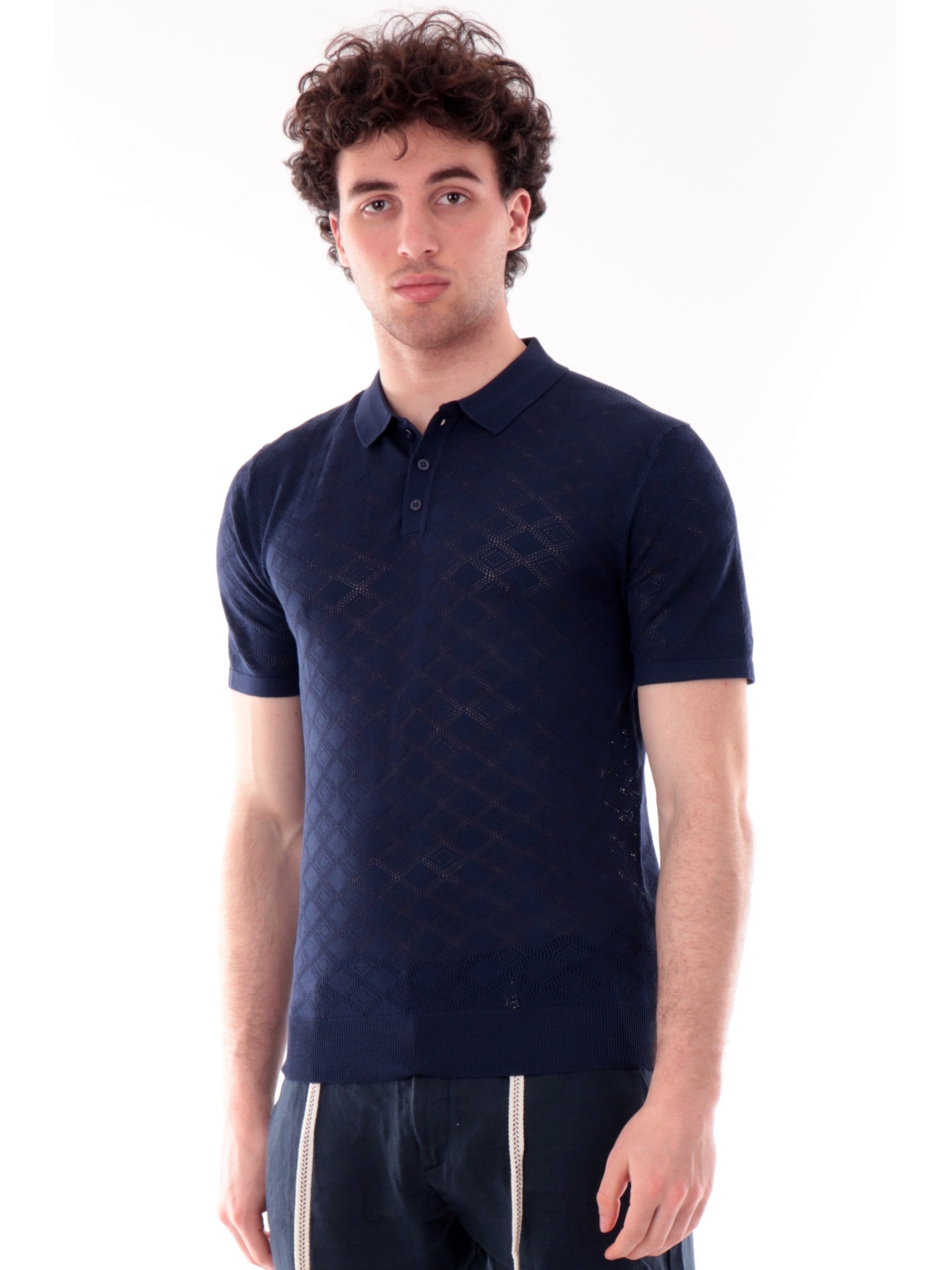 Polo in maglia blu maniche corte da uomo Gianni lupo. Questa polo in maglia, realizzata in viscosa, perfetta per la stagione primavera-estate ed è perfetta per qualsiasi tipo di look, è caratterizzata dal classico colletto con la chiusura a bottoni, maniche corte e fondo elasticizzato a costine