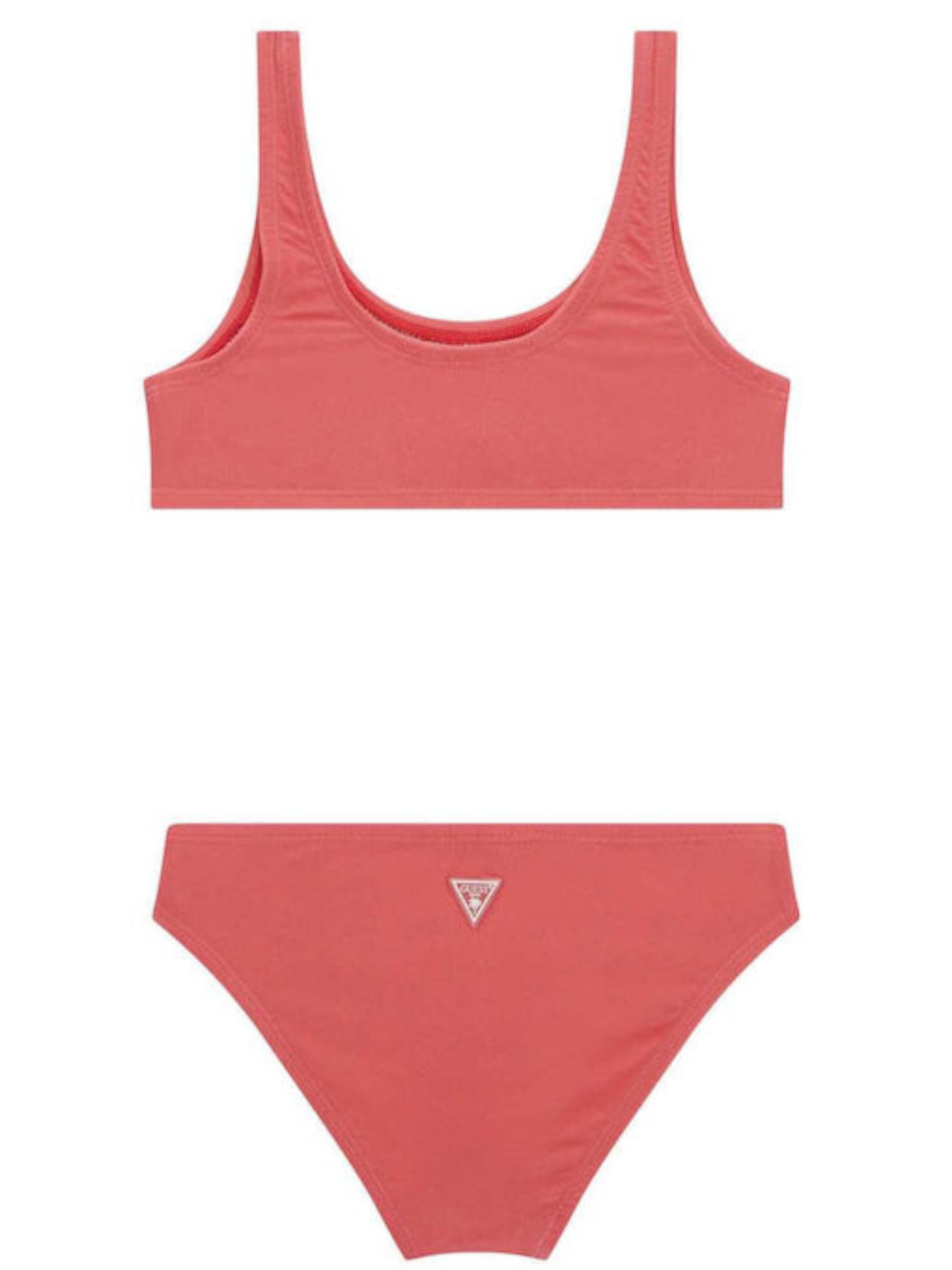 Costume mare Guess da bambina bikini con strass J5GZ00KCA60. Questo costume Guess fucsia due pezzi è caratterizzato dal logo Guess sul davanti con strass.