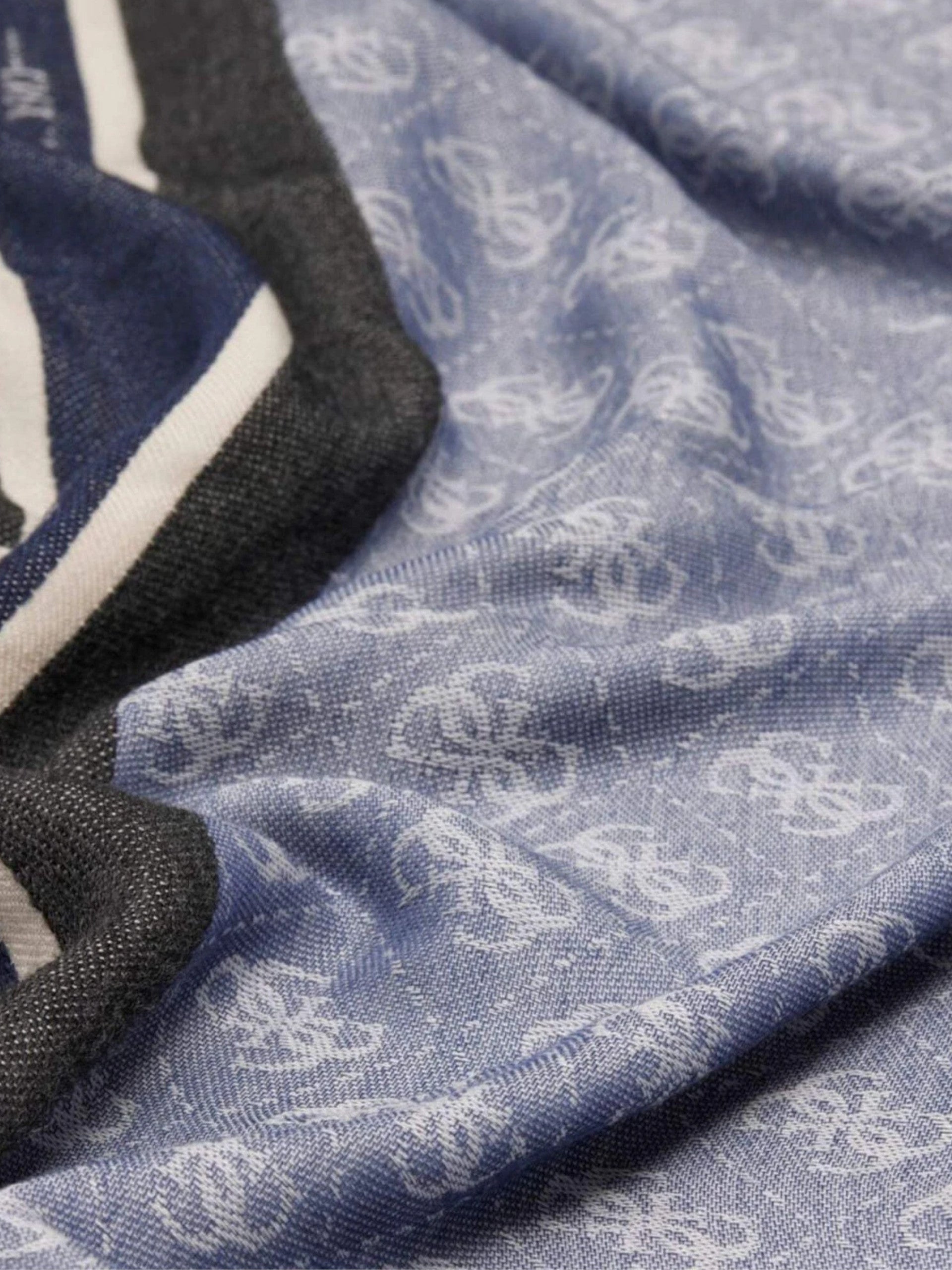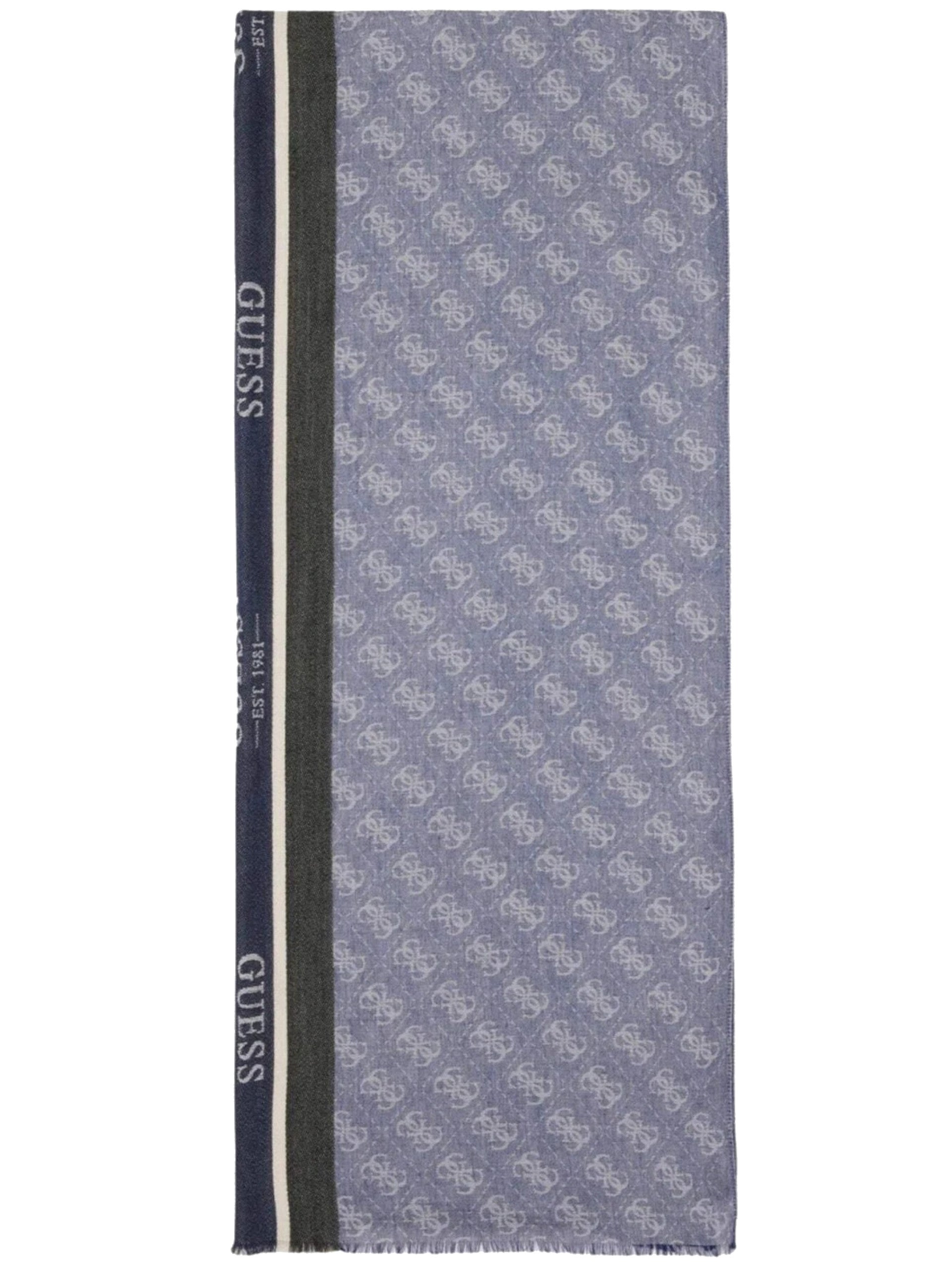 Sciarpa Guess blu da uomo con frange Milano Scarf Jacquard. Questa sciarpa Guess blu ha il logo all over, un logo Guess centrale e il fondo con orli sfrangiati. Questa sciarpa Guess blu da uomo è adatta anche su un look elegante