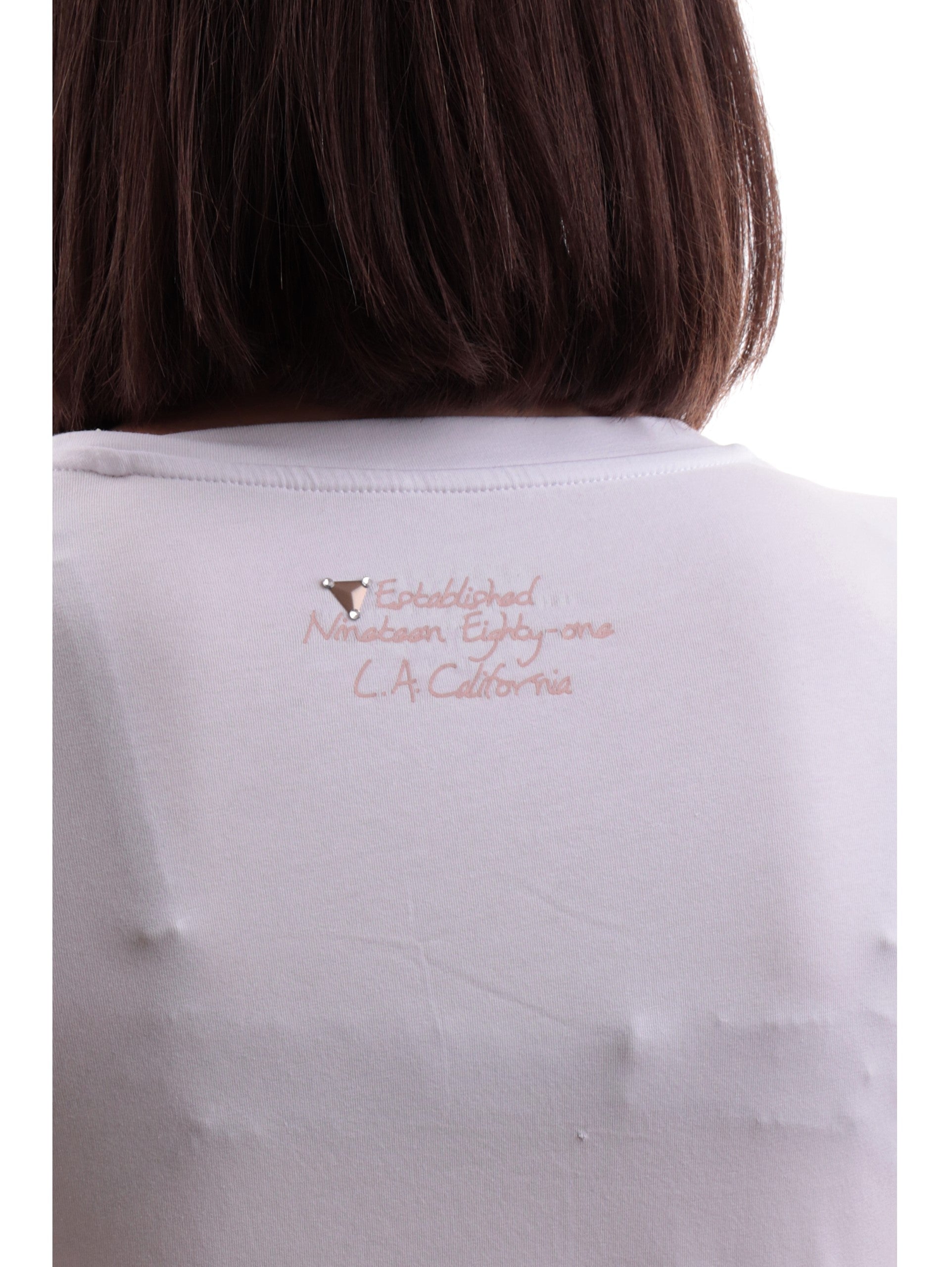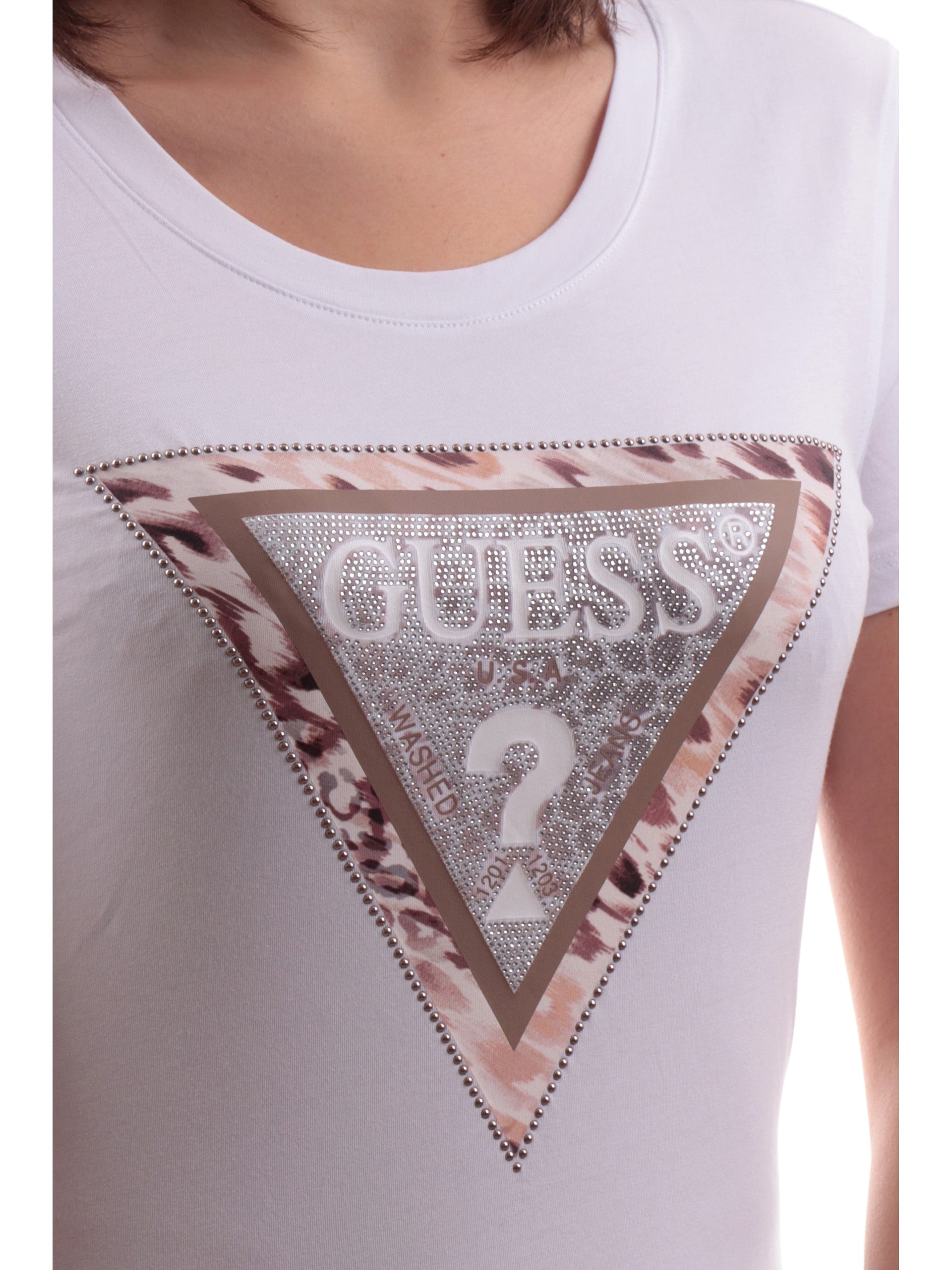 T-shirt Guess bianca da donna logo triangolo con strass W5RI22J1314