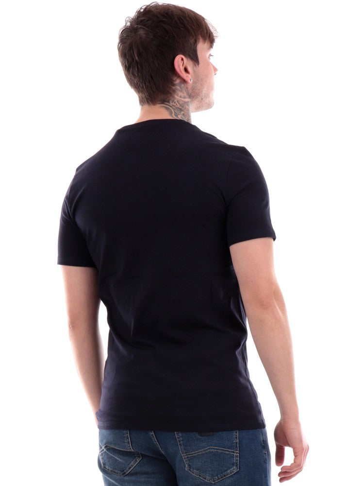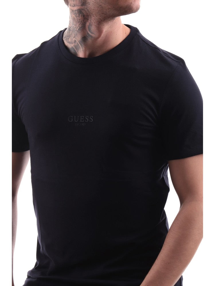 Blaues Guess-Herren-T-Shirt mit M2YI72I3Z14-Logo, hergestellt aus 100 % reiner Baumwolle. Dieses blaue Guess-Shirt hat einen Rundhalsausschnitt, kurze Ärmel, einen regulären Saum und das Markenlogo in einer Kontrastfarbe auf der Vorderseite.