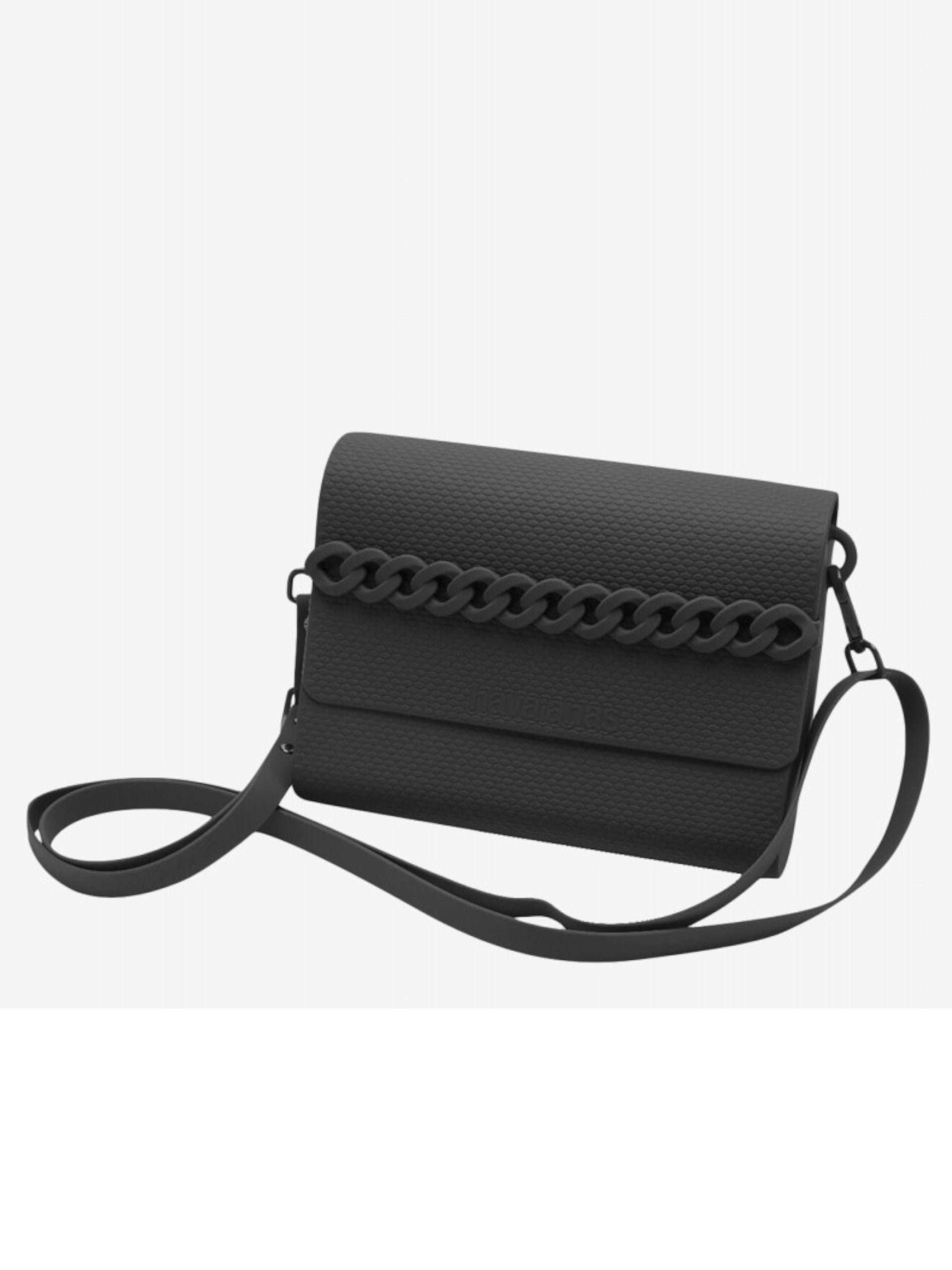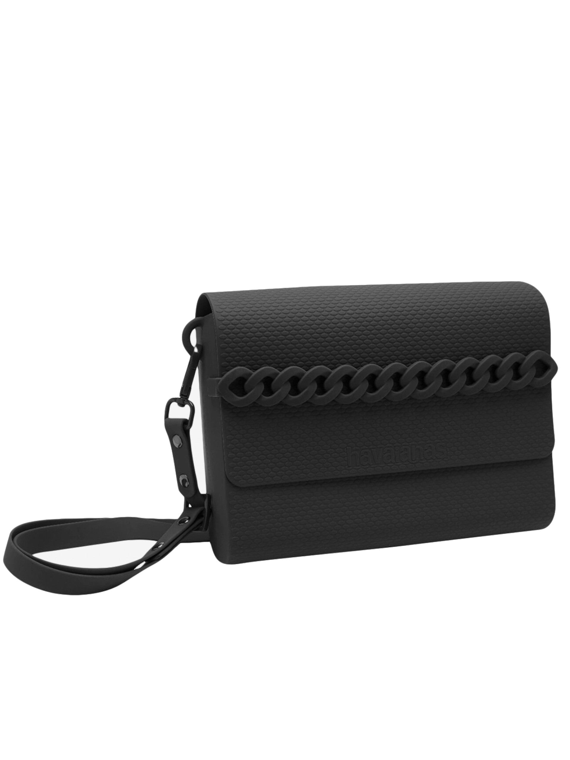 Pochette Havaianas nera da donna con cerniera e manicotto a forma di catena. Questa borsa Havaianas con tracolla si può utilizzare sia come borsa estiva per il mare che come borsa da portare con te. Una Borsa Havaianas di gomma a tracolla modello Casual Bag dalle linee innovative e dinamiche.