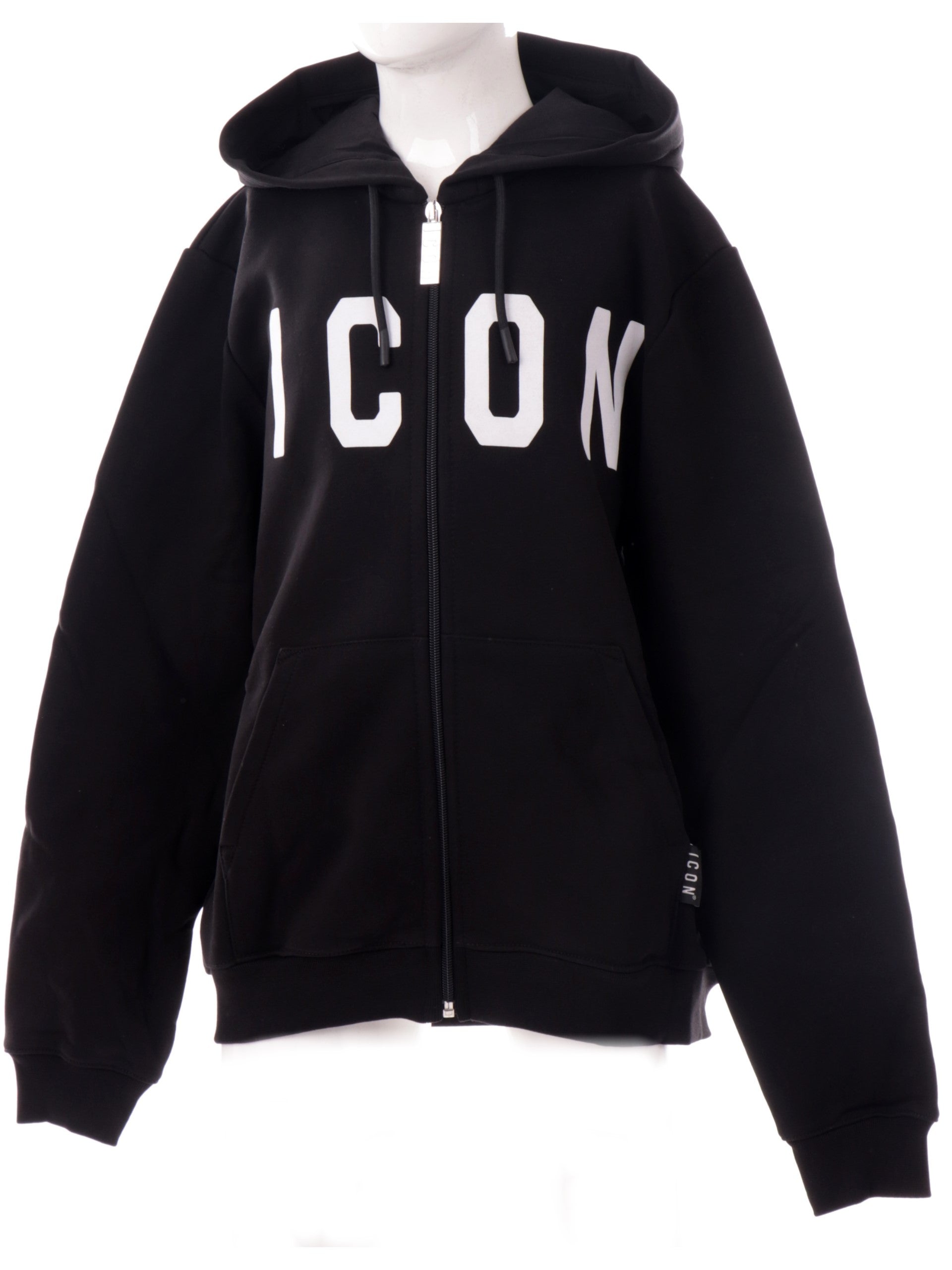 Felpa Icon nera con cappuccio e zip bambino. Questa felpa Icon con cappuccio è caratterizzata da una chisura con zip e il maxi logo bianco centrale, ha i polsini e fondo elasticizzati,realizzata da un soffice e caldo tessuto