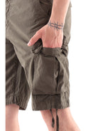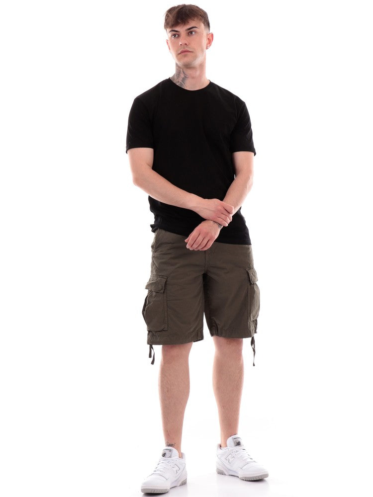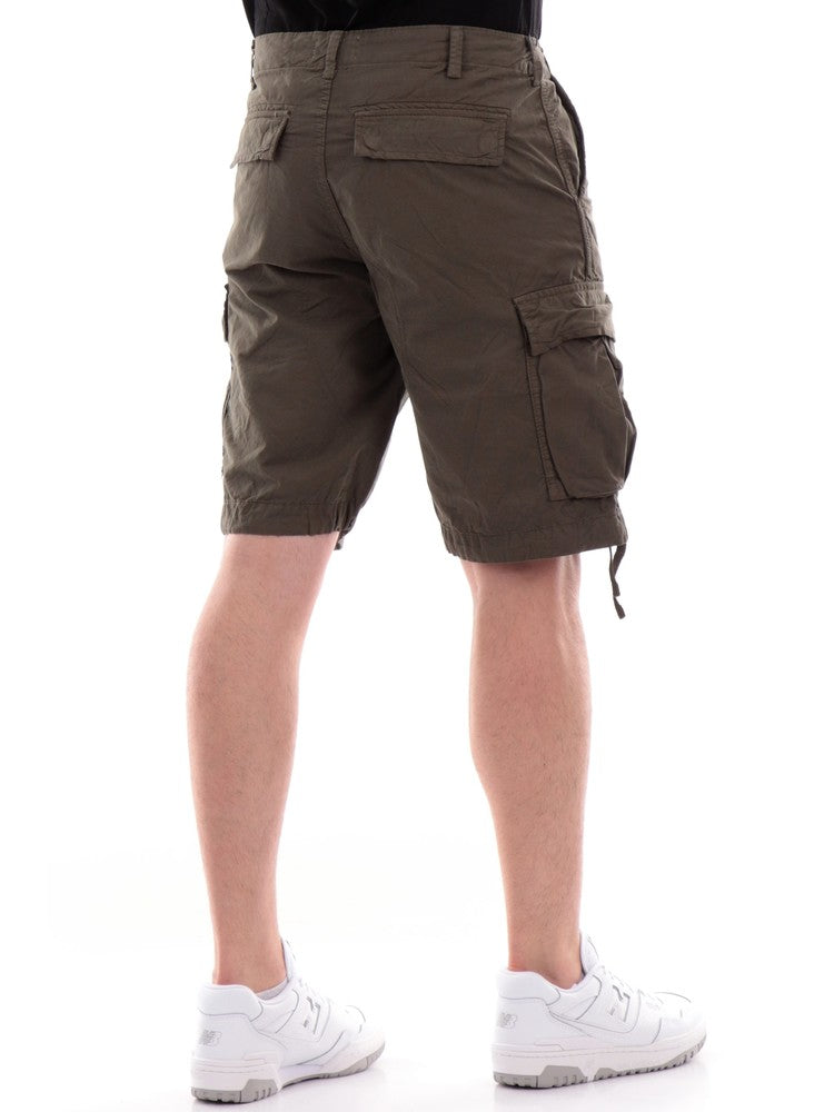 Militärgrüne Jack Jones Cargo-Shorts für Herren 12253122, aus 100 % reiner Baumwolle. Diese militärgrünen Cargohosen von Jack&Jones haben einen Knopf- und Reißverschluss, zwei offene Seitentaschen mit schrägen Schnitten, zwei Leistentaschen hinten und zwei große Taschen mit Klappen.