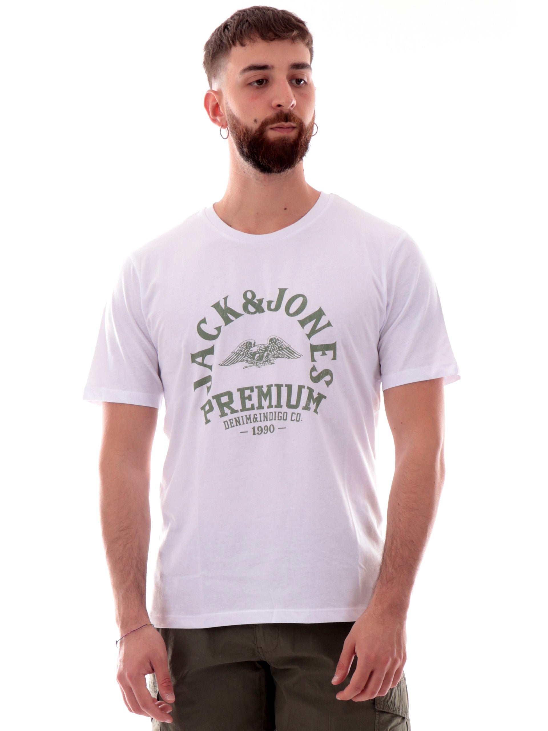 T-shirt Jack Jones bianca girocollo da uomo maxi stampa Premium 12282248