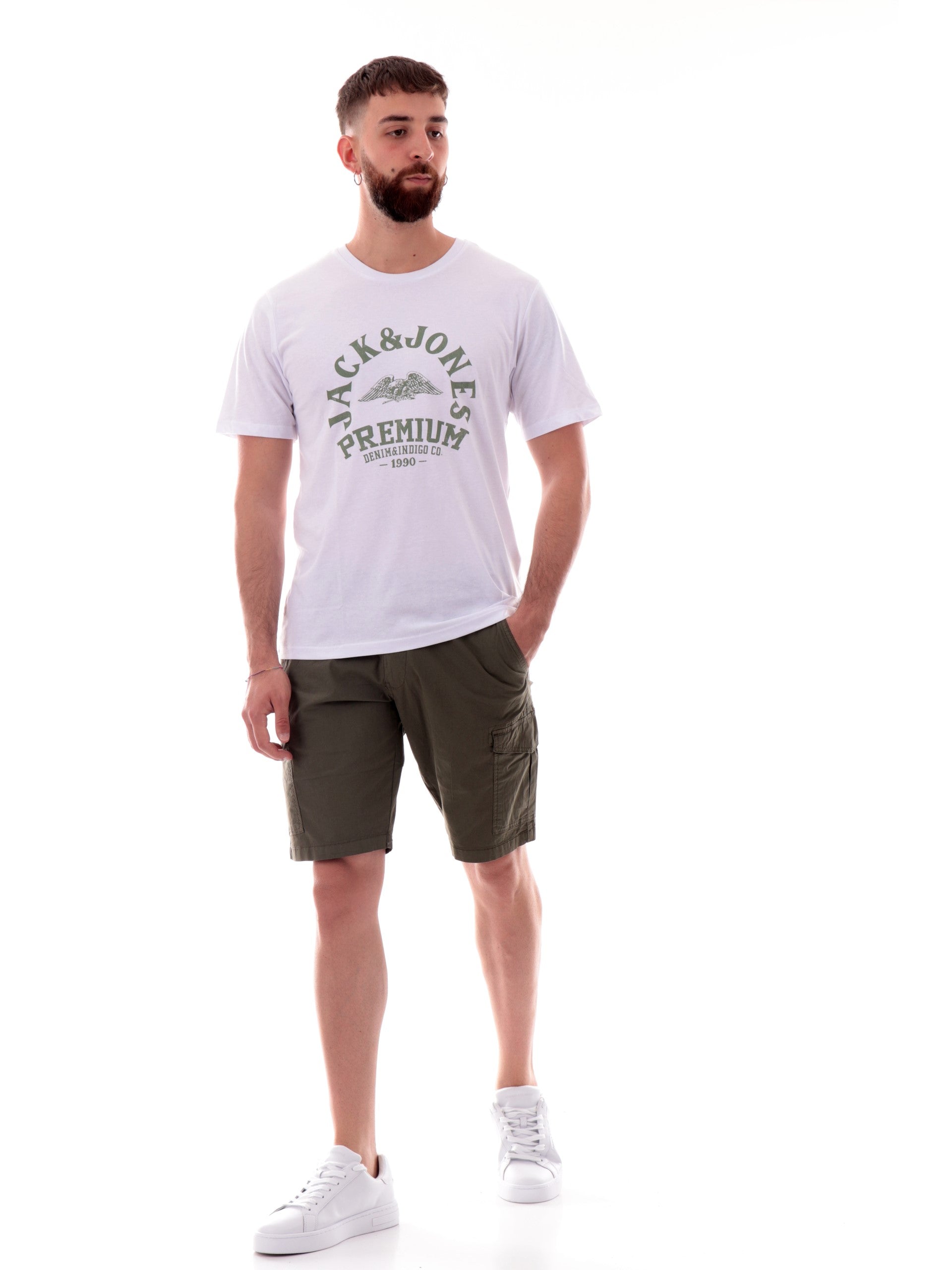 Maglia Jack Jones bianca girocollo da uomo maxi stampa Premium 12282248, realizzata in 100% puro cotone. Questa t-shirt Jack Jones bianca girocollo ha le maniche corte e la maxi stampa Premium sul davanti.