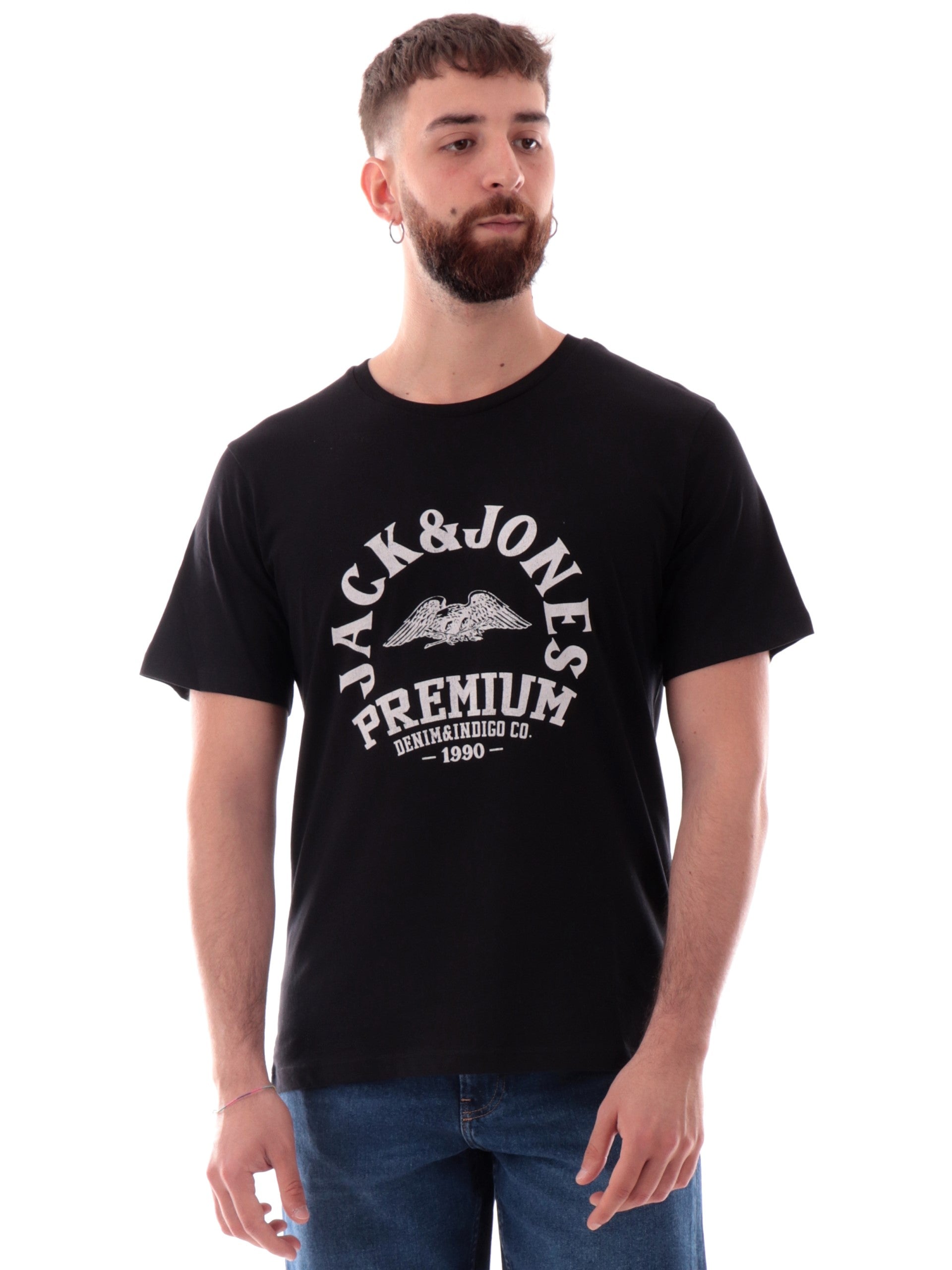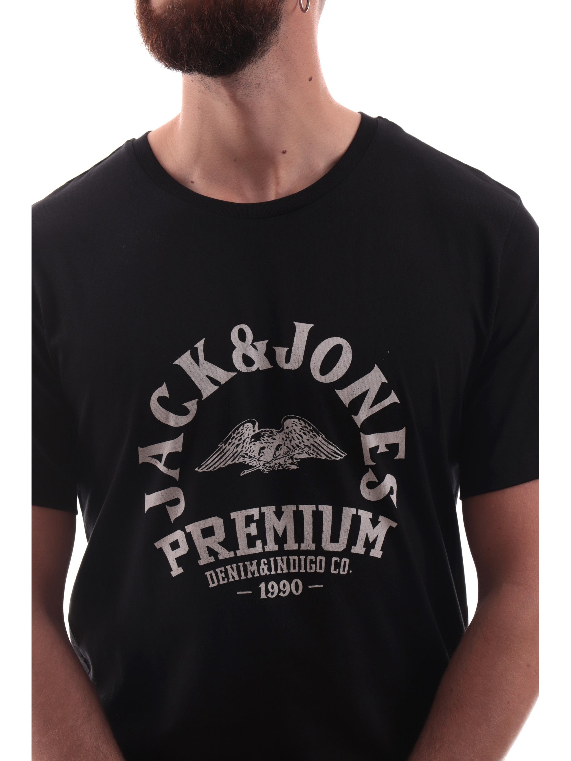 T-shirt Jack Jones nera girocollo da uomo maxi stampa Premium 12282248