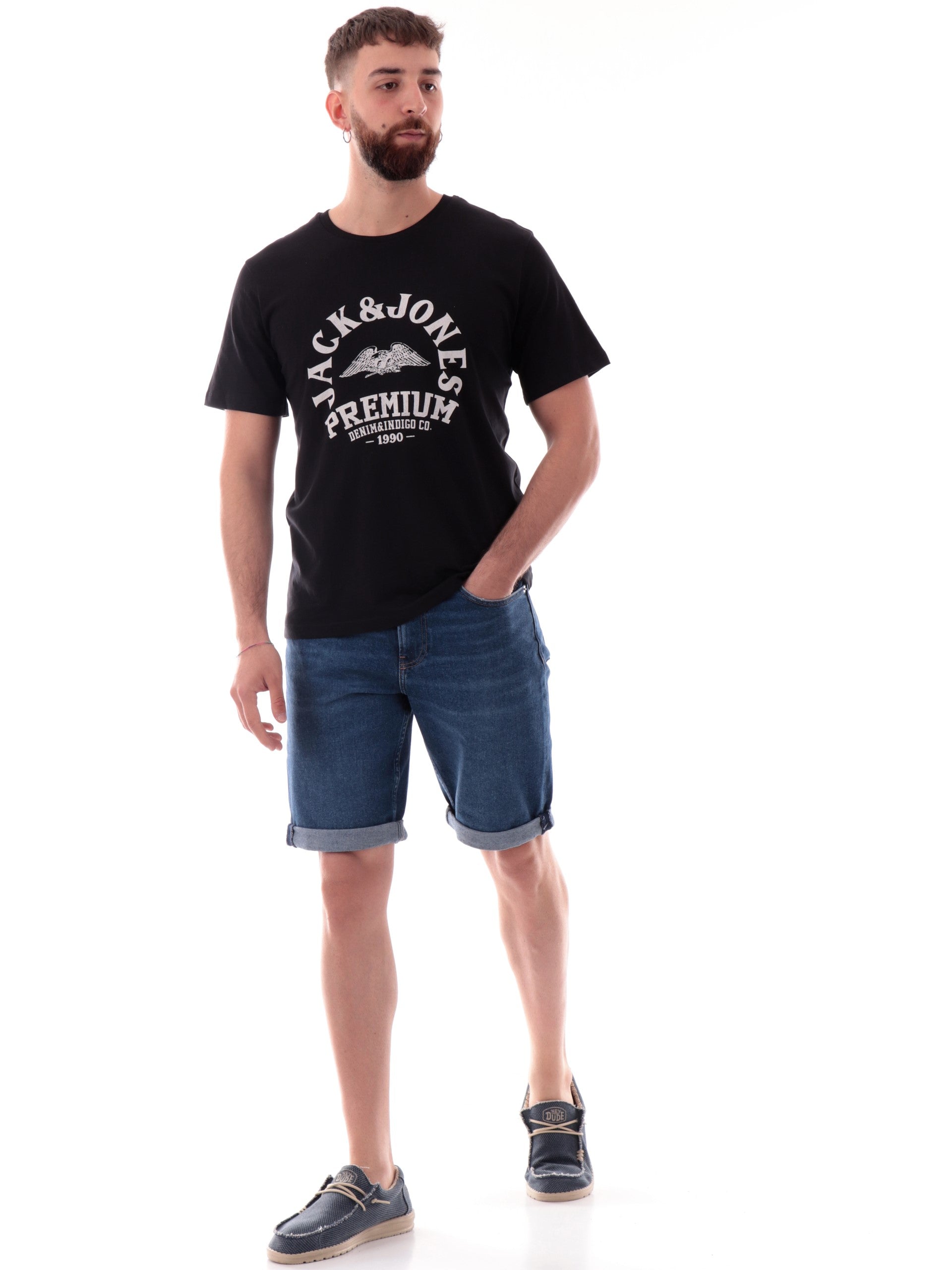 Maglia Jack Jones nera girocollo da uomo maxi stampa Premium 12282248, realizzata in 100% puro cotone. Questa t-shirt Jack Jones nera girocollo ha le maniche corte e la maxi stampa Premium sul davanti.