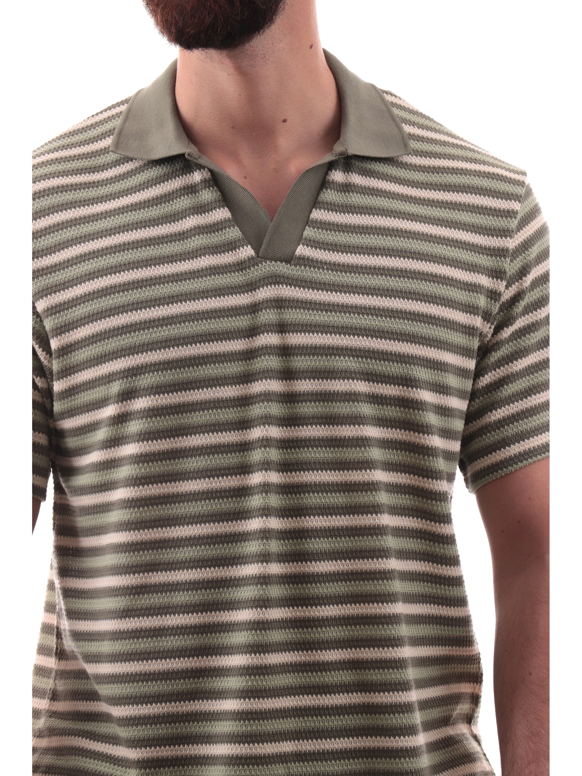 Polo jack Jones Beige e verde militare da uomo realizzata in morbido filo. Questa Maglia Jack Jones uomo in filo è caratterizzata da linee semplici e righe orizzontali beige e verdi. Questa polo uomoJack & Jones è perfetta per questa stagione grazie al tessuto in filo e la trama etnic