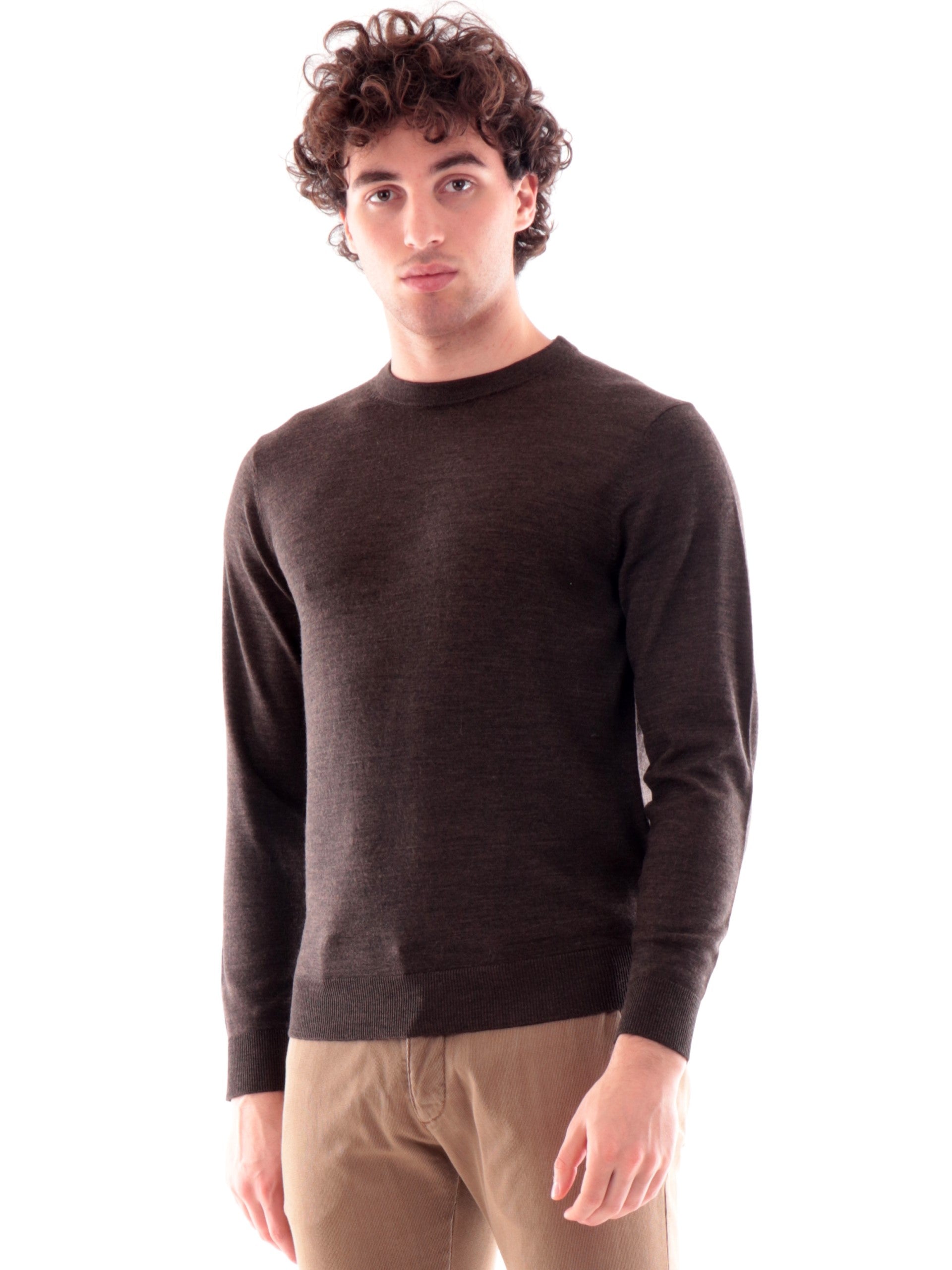 Maglione marrone da uomo Jack Jones a girocollo. Questo maglione marrone Jack Jones da uomo è realizzato 100% lana merino ed è caratterizzato dal girocollo, maniche lunghe, polsini e fondo elasticizzati a costine. Questo maglione jack Jones è perfetto per la stagione invernale
