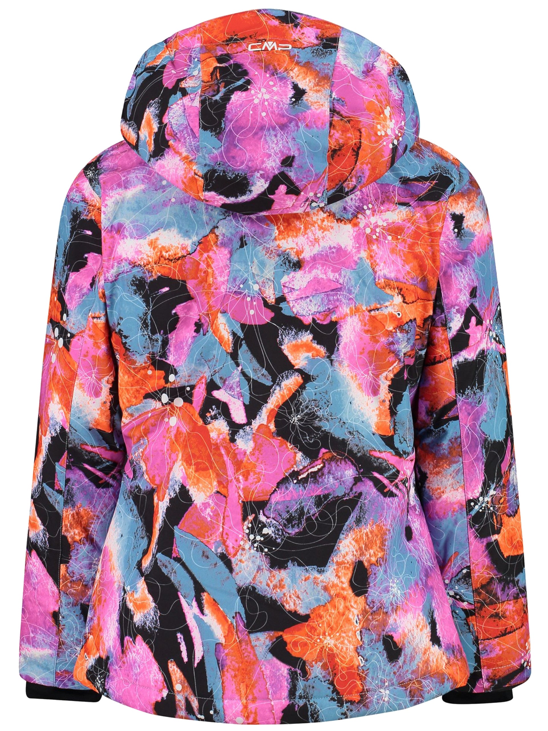 Giacca neve CMP da bambina rosa fantasia floreale realizzata in tessuto resistente , impermeabile e traspirabile (Waterproof: 5000 mm, Breathable: 5000 g/m2). Questa giacca sci CMP ha il cappuccio removibile, lo scaldacollo, la chiusura full zip centrale, due tasche laterali con zip, il fondo regolare, i polsini elasticizzati e una tasca con zip sulla manica sinistra. All'interno della giacca CMPtroviamo la ghetta elasticizzata e una tasca .