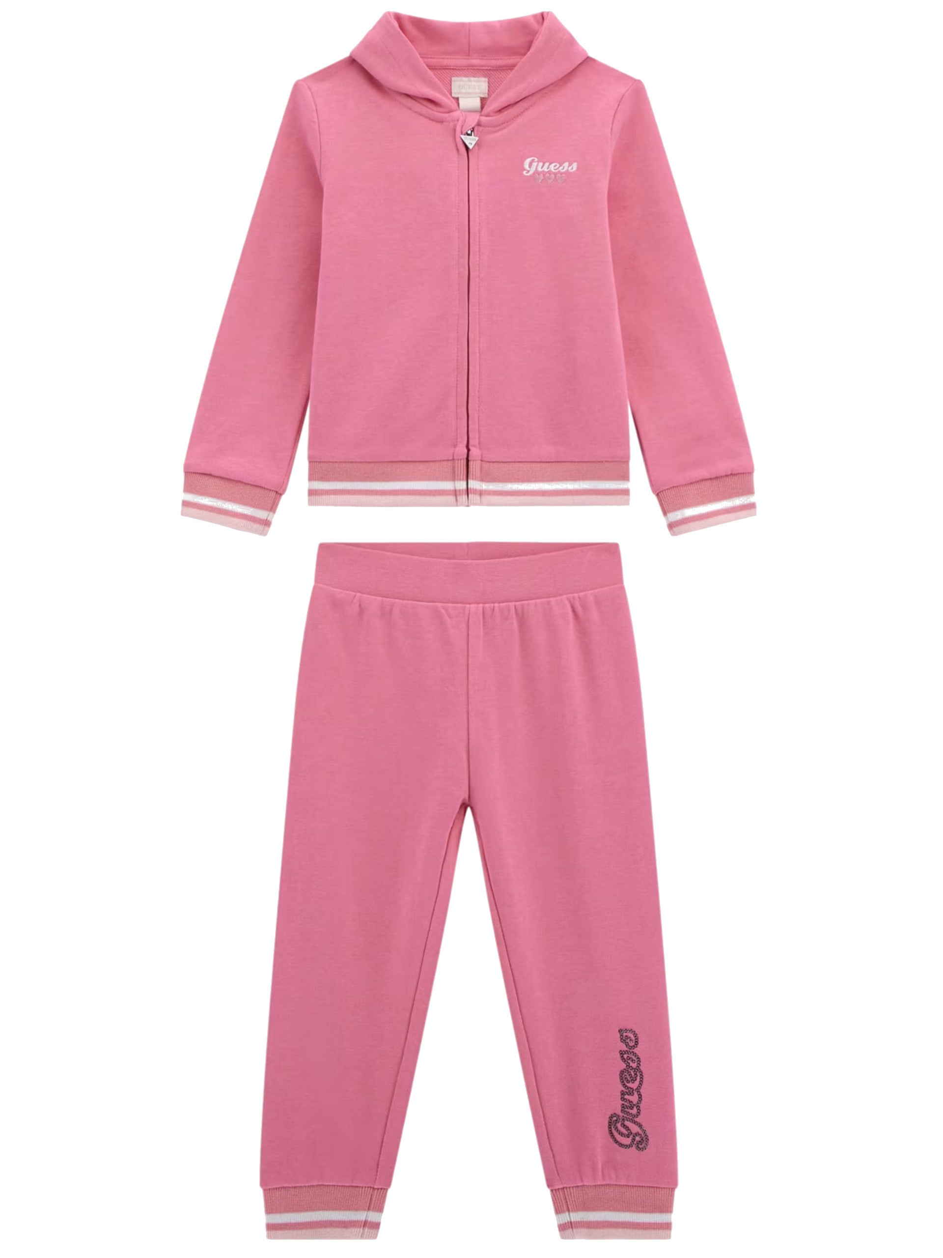 Tuta Guess rosa da bambina full zip logo con paillettes K5YG00KA6R4