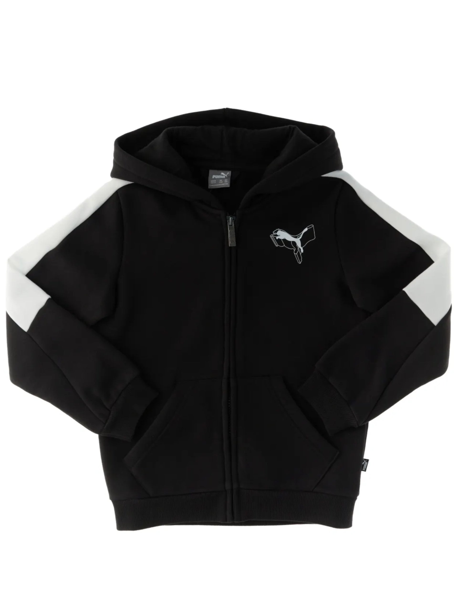 Felpa Puma nera da bambino full zip, con cappuccio, tasche laterali e logo sul cuore 684800
